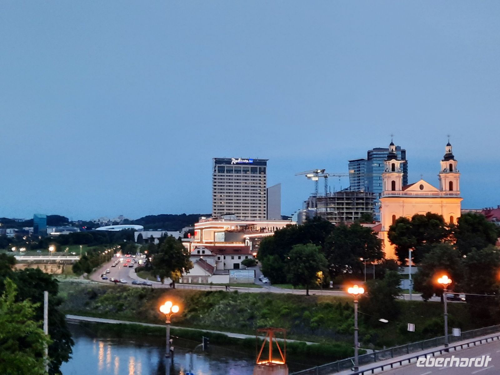 Nach fast 3 Jahren bereiste die erste Eberhardt-Gruppe endlich wieder das Baltikum. Am Abend flog die Gruppe von Frankfurt in die litauische Hauptstadt Vilnius. Noch schnell die Uhren 1 h vorgestellt und schon war der Sonntag angebrochen. Am Flughafen erwartete uns Lilija, unsere örtliche Reiseleiterin und Johan, unser Busfahrer. Durch die nächtlichen Straßen fuhren wir zu unserem Hotel, direkt im Zentrum von Vilnius. Es folgte eine kurze Nacht.