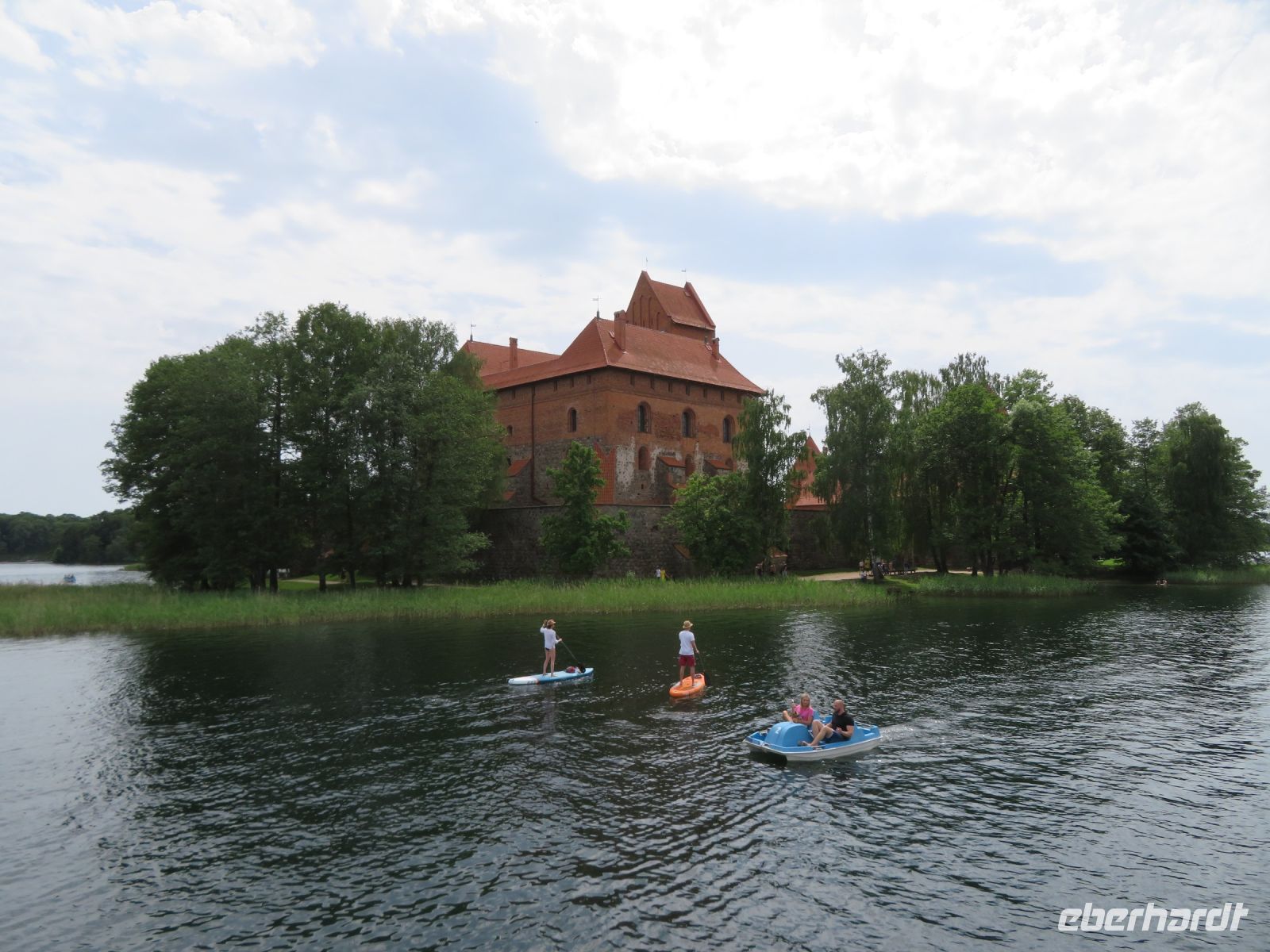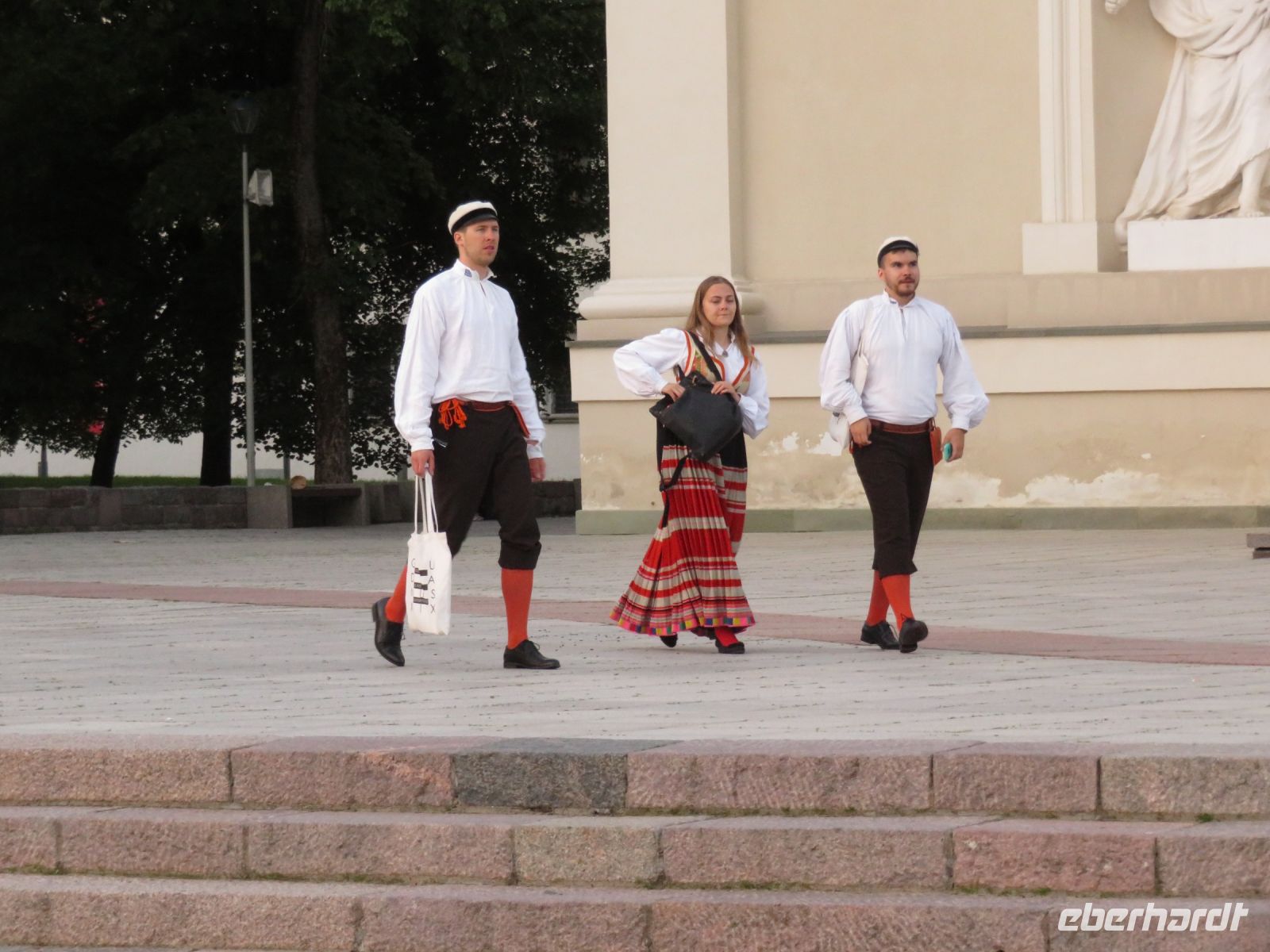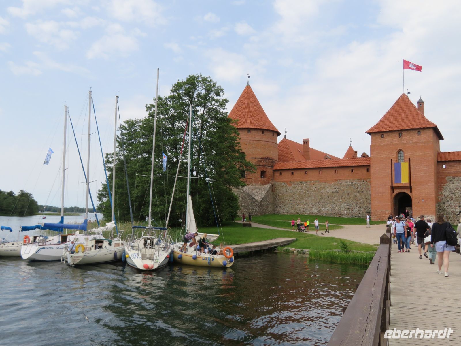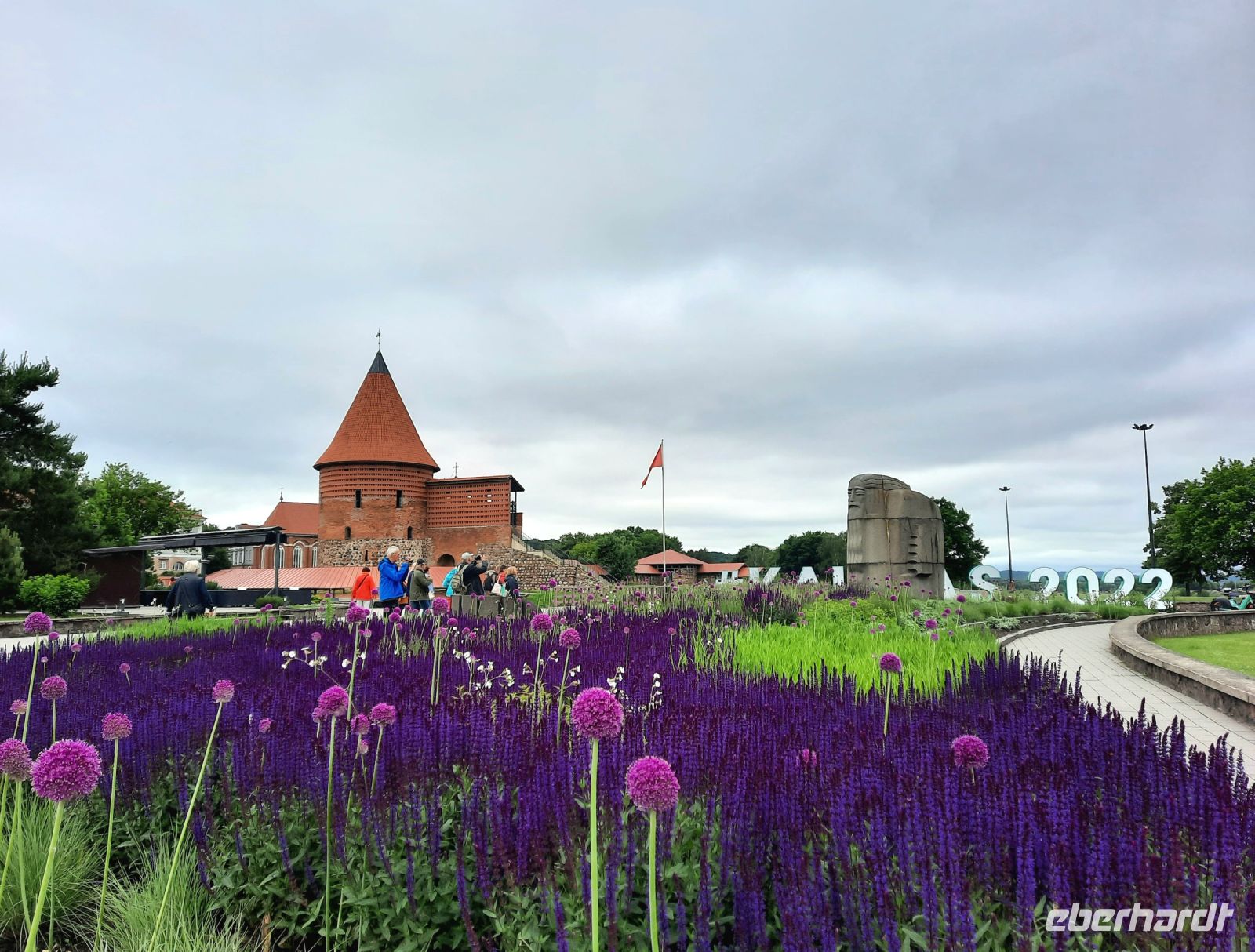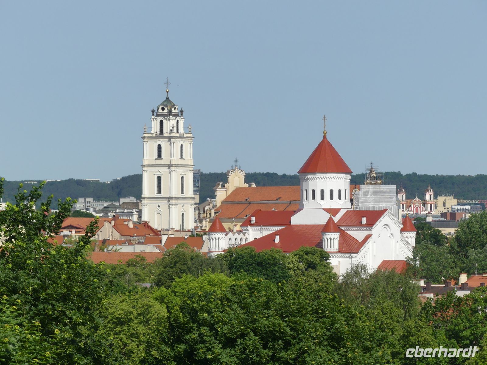 Am Sonntagmorgen trafen wir uns zum Frühstück. Nach fast 2 Jahren ohne Gäste war das Hotelpersonal mit so vielen Gästen am Morgen sichtlich überrascht, wie auch der Kaffeeautomat. Dennoch bekamen alle noch ihren Kaffee (den der ist lebenswichtig;-) und wir konnten unsere Entdeckungen in Vilnius beginnen. Lilija begeisterte uns sofort mit ihrem unerschöpflichen Wissen: Seit 1323 ist Vilnius Hauptstadt des Großfürstentums Litauen. Der Legende nach wurde die Stadt aus einem Traum des Großfürsten Gediminas geboren, als er nach einer Jagd in den Wäldern nächtigte. Gediminas sah im Traum einen eisernen Wolf, der unbezwingbar war - also der richtige Platz, um hier eine Burg zu erbauen. Vilnius entwickelte sich zu einem blühenden Handelsplatz und war heiß begehrt. So wurde die Stadt vom Deutschen Orden belagert, von Napoleon besetzt und Ende des 19. Jahrhunderts dann russisch. Heute ist Vilnius die größte Stadt Litauens. Mehr als die Häfte sind Litauer und der restliche Teil setzt sich aus Polen, Russen und Weißrussen zusammen. Hier am Zusammenfluss von Vilnia und Neris gibt es über 40 Kirchen. Auch Synagogen und Moscheen prägten einst das Stadtbild, einer sehr liberalen Stadt. Vor dem 2. Weltkrieg waren 1/3 der Bewohner Juden. Vilnius bezeichnete man als Jerusalem des Ostens. Wie Rom wurde auch Vilnius auf 7 Hügeln erbaut. Zunächst fuhren wir mit dem Bus zu einem Aussichtspunkt und genossen einen wunderbaren Panoramablick auf die grüne Stadt. Anschließend fuhren wir zum Tor der Morgenröte (das noch erhaltene Tor der ehemaligen Stadtbefestigung), um von dort unseren Rundgang zu Fuß durch die Altstadt fortzusetzen. Die barocke Altstadt gehört zum UNESCO-Weltkulturerbe. Wir besuchten die russisch-orthodoxe Heiliggeistkirche und spazierten durch die Gassen zum Rathausplatz und vorbei an alten Bürgerhäusern zur Universität, die zu den ältesten in Europa gehört. Auch warfen wir einen Blick auf den Präsidentenpalast. Im 18. Jhd. war das Gebäude Bischofspalast, später diente es als Domizil der russischen Zaren, auch Napoleon weilte hier. Die Sowjets nutzten es als Konzertsaal und seit 1997 ist der Palast wieder Residenz des litauischen Staatsoberhauptes, das seit 5 Jahren eine Frau ist. Unser Rundgang endete am Kathedralenplatz. Hier prunkt der 2009 völlig neu gebaute Großfürstenpalast auf dem Gebiet der ehemaligen unteren Burg und davor das Denkmal des Stadtgründers Gediminas auf seinem Pferd. Die weiße Kathedrale St. Stanislaus dominiert auf diesen Platz. Vor langer Zeit stand hier ein Tempel zu Ehren des Donnergottes, 1251 wurde dann die erste Kirche errichtet wurde, die später wiederum für heidnische Kulthandlungen genutzt wurde. Erst nach der Christianisierung entstand die römisch-katholische Kathedrale, die während der Sowjetzeit geschlossen wurde und erst 1988 an die Gemeinde von Vilnius zurück ging. Neben der Kathedrale steht extern und etwas schief der Glockenturm. Bei Sonnenschein genossen wir anschließend unsere individuelle Mittagspause, um uns etwas auszuruhen. Danach spazierten wir, vorbei am Kirchenkomplex mit der St. Annen- und Bernhardiner zum ältesten Stadtviertel von Vilnius: Uzupis wurde schon im 16. Jhd. erwähnt und ist heute eine wahre Künstlerrepublik, sogar mit eigener Verfassung. Durch den wunderschönen, schattigen Bernhardiner Garten spazierten wir zum Bus. Dass Vilnius die größte Hauptstadt der 3 baltischen Länder ist, merkten wir an unseren Füßen. Do waren wir froh, am Nachmittag einen Ausflug mit dem Bus zu unternehmen. Dieser führte uns ins 30 km entfernte Trakai, inmitten einer malerischen Seenlandschaft gelegen. Wir entspannten auf einer kleinen Schifffahrt auf dem Galve-See, wo wir auch die traditionellen Kibinais verkosteten.