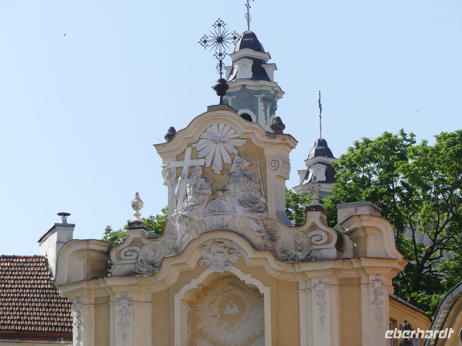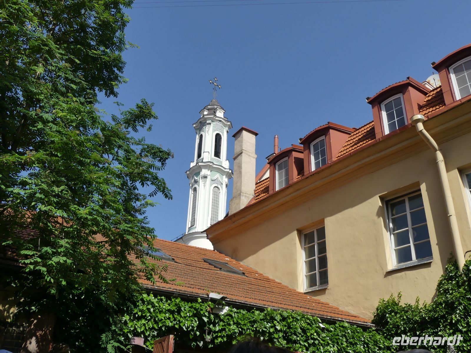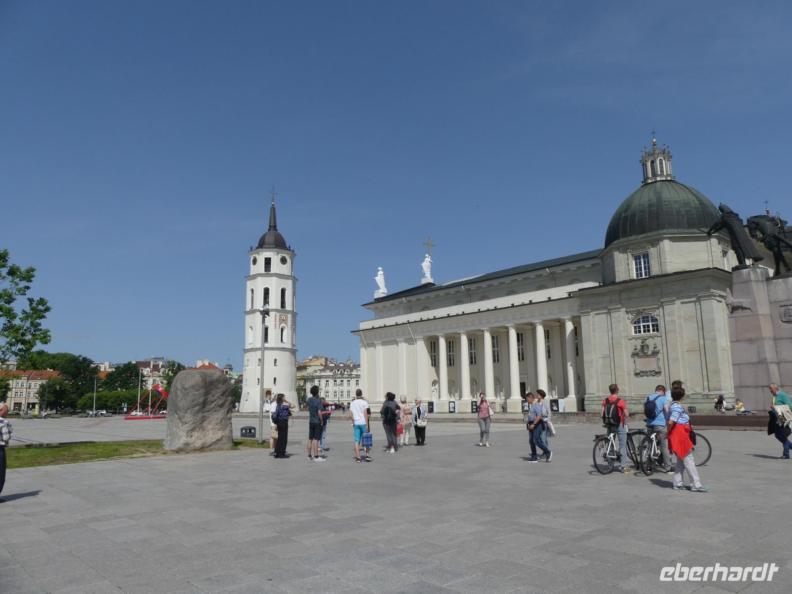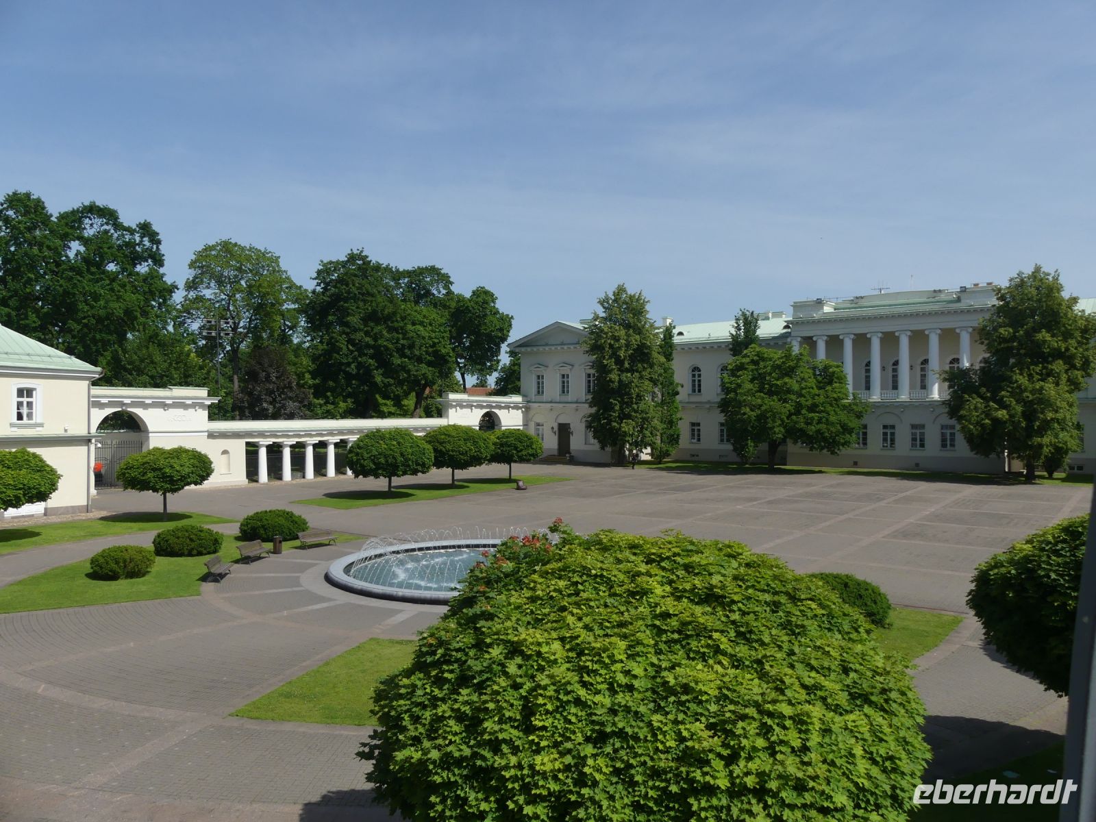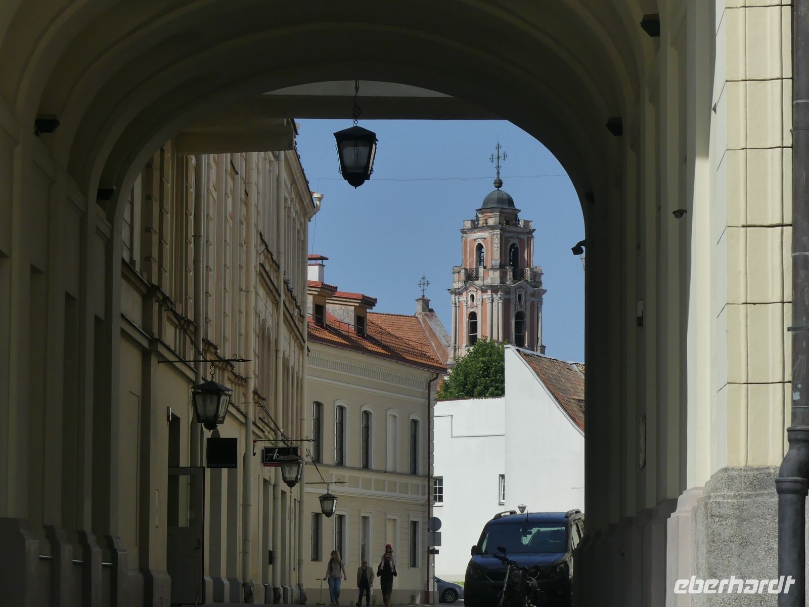 Am Sonntagmorgen trafen wir uns zum Frühstück. Nach fast 2 Jahren ohne Gäste war das Hotelpersonal mit so vielen Gästen am Morgen sichtlich überrascht, wie auch der Kaffeeautomat. Dennoch bekamen alle noch ihren Kaffee (den der ist lebenswichtig;-) und wir konnten unsere Entdeckungen in Vilnius beginnen. Lilija begeisterte uns sofort mit ihrem unerschöpflichen Wissen: Seit 1323 ist Vilnius Hauptstadt des Großfürstentums Litauen. Der Legende nach wurde die Stadt aus einem Traum des Großfürsten Gediminas geboren, als er nach einer Jagd in den Wäldern nächtigte. Gediminas sah im Traum einen eisernen Wolf, der unbezwingbar war - also der richtige Platz, um hier eine Burg zu erbauen. Vilnius entwickelte sich zu einem blühenden Handelsplatz und war heiß begehrt. So wurde die Stadt vom Deutschen Orden belagert, von Napoleon besetzt und Ende des 19. Jahrhunderts dann russisch. Heute ist Vilnius die größte Stadt Litauens. Mehr als die Häfte sind Litauer und der restliche Teil setzt sich aus Polen, Russen und Weißrussen zusammen. Hier am Zusammenfluss von Vilnia und Neris gibt es über 40 Kirchen. Auch Synagogen und Moscheen prägten einst das Stadtbild, einer sehr liberalen Stadt. Vor dem 2. Weltkrieg waren 1/3 der Bewohner Juden. Vilnius bezeichnete man als Jerusalem des Ostens. Wie Rom wurde auch Vilnius auf 7 Hügeln erbaut. Zunächst fuhren wir mit dem Bus zu einem Aussichtspunkt und genossen einen wunderbaren Panoramablick auf die grüne Stadt. Anschließend fuhren wir zum Tor der Morgenröte (das noch erhaltene Tor der ehemaligen Stadtbefestigung), um von dort unseren Rundgang zu Fuß durch die Altstadt fortzusetzen. Die barocke Altstadt gehört zum UNESCO-Weltkulturerbe. Wir besuchten die russisch-orthodoxe Heiliggeistkirche und spazierten durch die Gassen zum Rathausplatz und vorbei an alten Bürgerhäusern zur Universität, die zu den ältesten in Europa gehört. Auch warfen wir einen Blick auf den Präsidentenpalast. Im 18. Jhd. war das Gebäude Bischofspalast, später diente es als Domizil der russischen Zaren, auch Napoleon weilte hier. Die Sowjets nutzten es als Konzertsaal und seit 1997 ist der Palast wieder Residenz des litauischen Staatsoberhauptes, das seit 5 Jahren eine Frau ist. Unser Rundgang endete am Kathedralenplatz. Hier prunkt der 2009 völlig neu gebaute Großfürstenpalast auf dem Gebiet der ehemaligen unteren Burg und davor das Denkmal des Stadtgründers Gediminas auf seinem Pferd. Die weiße Kathedrale St. Stanislaus dominiert auf diesen Platz. Vor langer Zeit stand hier ein Tempel zu Ehren des Donnergottes, 1251 wurde dann die erste Kirche errichtet wurde, die später wiederum für heidnische Kulthandlungen genutzt wurde. Erst nach der Christianisierung entstand die römisch-katholische Kathedrale, die während der Sowjetzeit geschlossen wurde und erst 1988 an die Gemeinde von Vilnius zurück ging. Neben der Kathedrale steht extern und etwas schief der Glockenturm. Bei Sonnenschein genossen wir anschließend unsere individuelle Mittagspause, um uns etwas auszuruhen. Danach spazierten wir, vorbei am Kirchenkomplex mit der St. Annen- und Bernhardiner zum ältesten Stadtviertel von Vilnius: Uzupis wurde schon im 16. Jhd. erwähnt und ist heute eine wahre Künstlerrepublik, sogar mit eigener Verfassung. Durch den wunderschönen, schattigen Bernhardiner Garten spazierten wir zum Bus. Dass Vilnius die größte Hauptstadt der 3 baltischen Länder ist, merkten wir an unseren Füßen. Do waren wir froh, am Nachmittag einen Ausflug mit dem Bus zu unternehmen. Dieser führte uns ins 30 km entfernte Trakai, inmitten einer malerischen Seenlandschaft gelegen. Wir entspannten auf einer kleinen Schifffahrt auf dem Galve-See, wo wir auch die traditionellen Kibinais verkosteten.