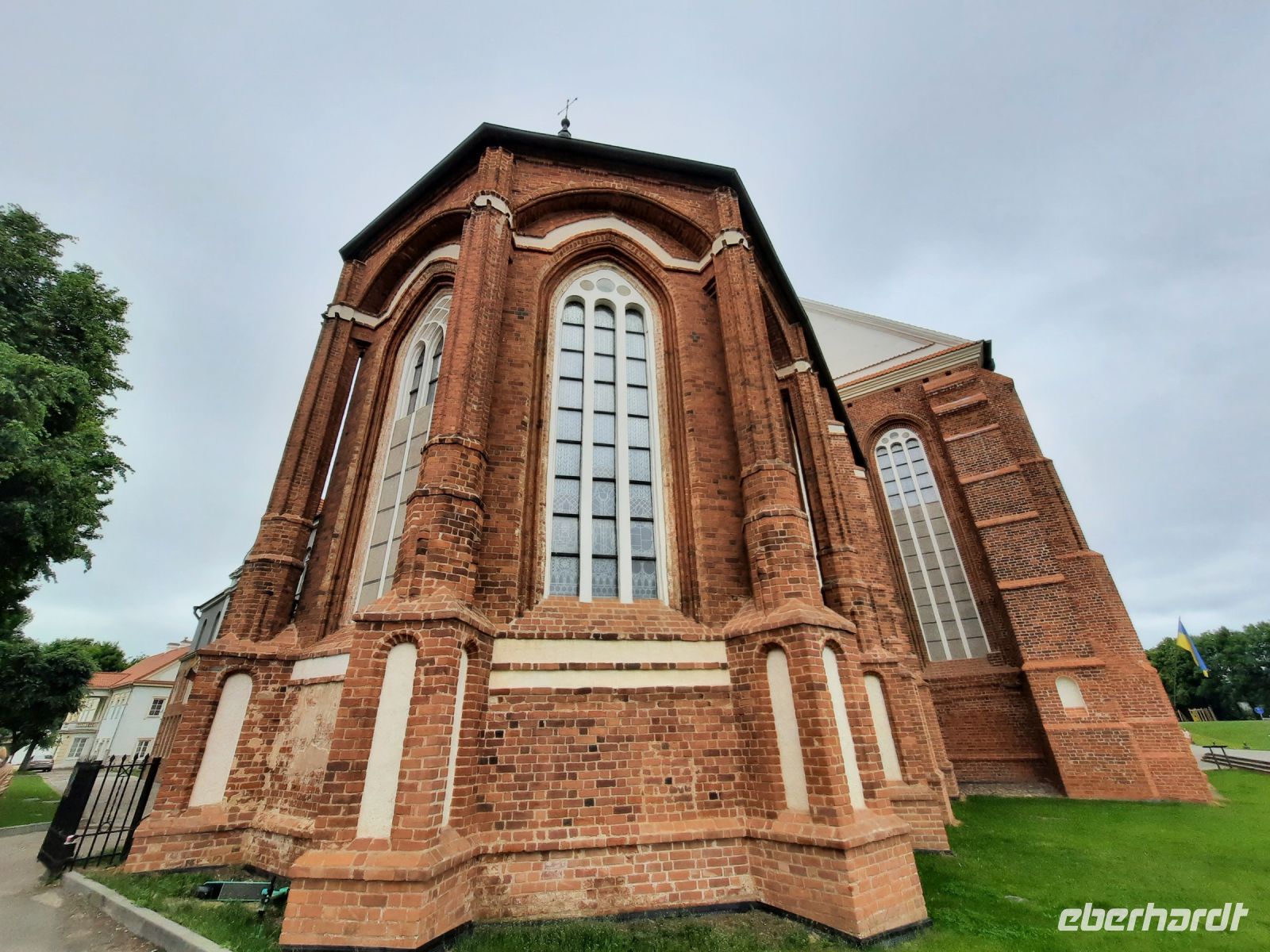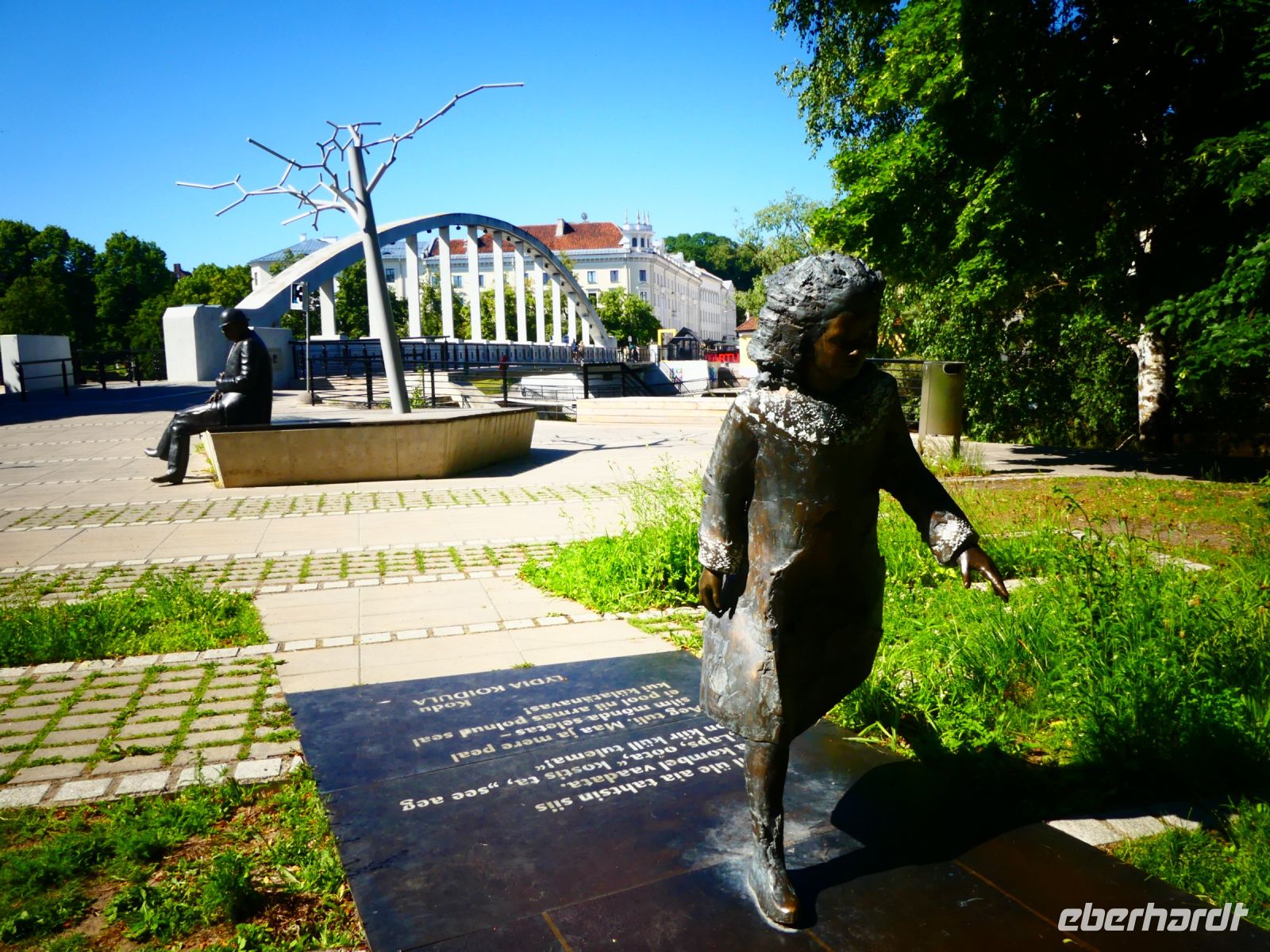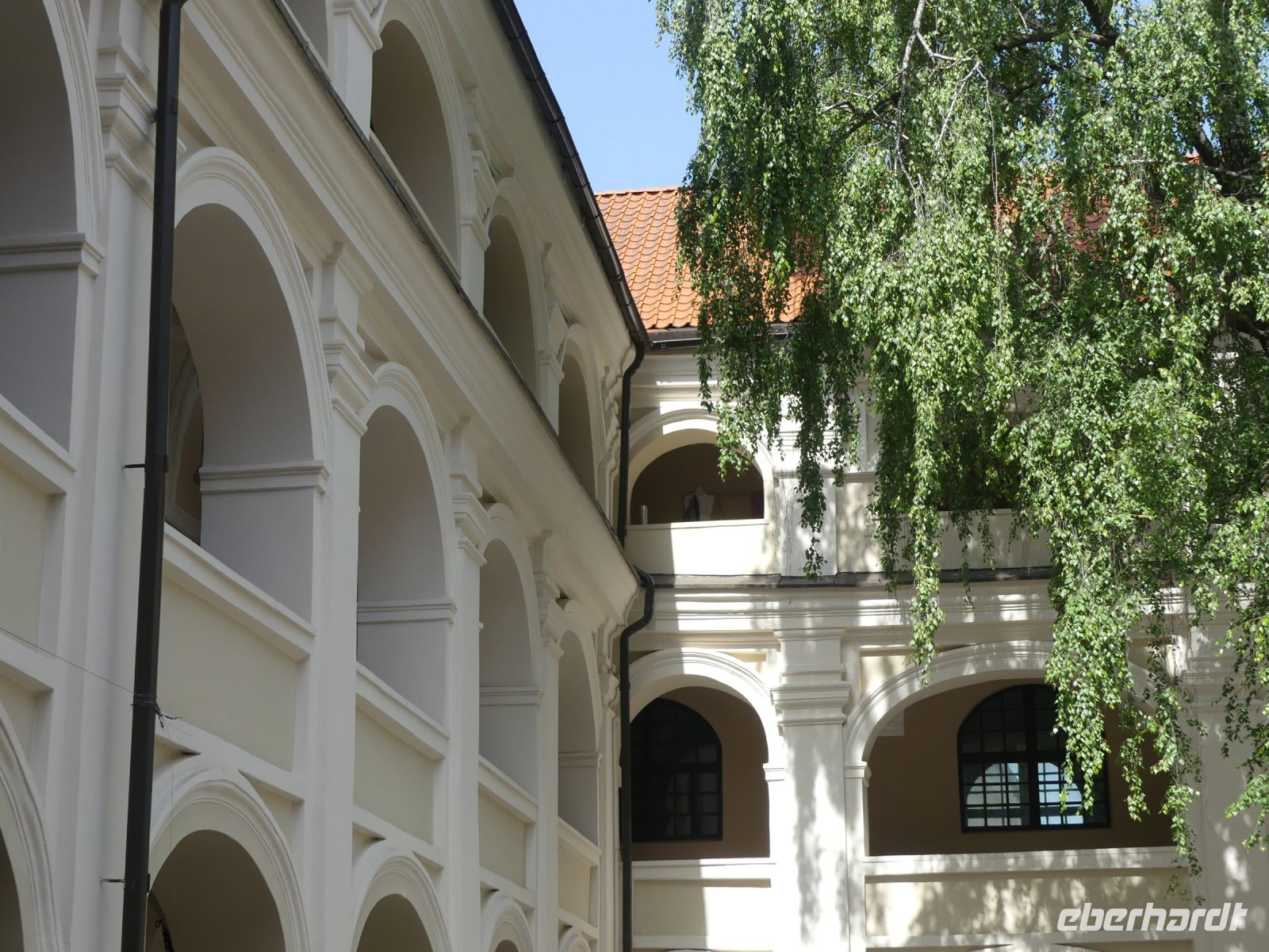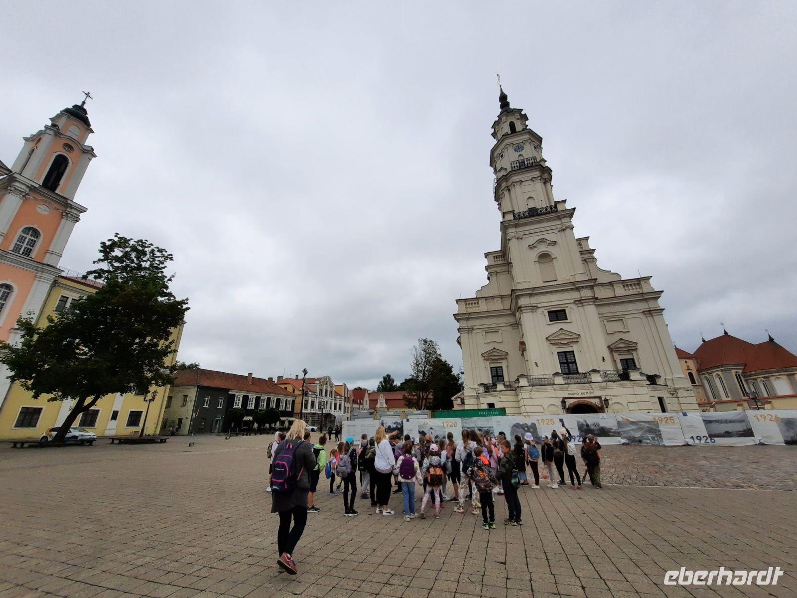 Auch an diesem Morgen hatte der Kaffeeautomat wieder seine Startschwierigkeiten;-). Nach dem Frühstück ging unsere Reise weiter. Zunächst besuchten wir noch die Peter- und Paul-Kirche. Von außen eingerüstet und eher schlicht, überraschte uns der barocke Kirchenraum mit faszinierenden, weißen Stuckverzierungen und Reliefs. Der einflussreiche litauische Adlige Pac ließ diese Kirche erbauen und sich unter der Schwelle begraben. Auf der Grabplatte steht: Hier ruht ein Sünder - Was das wohl zu bedeuten hat? Das nächste Etappenziel war Kaunas, die zweitgrößte Stadt Litauens und mit fast 90 % Litauern, die litauischste Stadt. Ca. 100 km von Vilnius entfernt liegt die Stadt am Zusammenfluß von Memel und Neris. 1408 erhielt Kaunas Magdeburger Stadtrecht, aber erst nach der Niederlage der Kreuzritter erblühte die Stadt. Durch die günstige Lage und den Handel mit Russland und Polen siedelten sich viele Handwerker und Händler an, so dass die Hanse bis Mitte des 16. Jhd. hier einen Kontor unterhielt. Kaunas entwickelte sich in eine aufstrebende Handelsstadt. Kriege gegen Schweden und Russland, Pestepidemie und Napoleons Drang nach Moskau brachten den Niedergang der Stadt. Als Polen 1920 Kaunas besetzte, erlebte die Stadt einen kulturellen Aufschwung. Mit dem Hitler-Stalin-Pakt wurde ein düsteres Kapitel eingeläutet, das 1941 mit der deutschen Besetzung fortgesetzt wurde. In der Sowjetzeit geriet Kaunas in Vergessenheit und wurde vernachlässigt. Beim Rundgang spazierten wir, vorbei an der alten Burg, zur im 15. Jhd. erbauten, gotischen St. Georgs-Kirche mit angeschlossenem Kloster. Während der Sowjetzeit wurde die Kirche geschlossen und als Lagerhalle genutzt. Bis auf die Altäre wurde alles abmontiert, erhalten waren nur die ehemals schönen Wandmalereien. Die Kirche befand sich damals in einem jämmerlichen, traurigen Zustand. Dank der zahlreicher Spenden wurde die Kirche nun Stück für Stück renoviert. Unsere Runde führte uns weiter zum Rathausplatz. Hier steht das Rathaus, welches eher einem Kirchenbau ähnelt, wegen seiner weißen Farbe liebevoll der weiße Schwan genannt wird. Der Rathausplatz wird gesäumt von schönen Gildehäusern und der Fassade der Jesuitenkirche- und kloster, das mit 4 Stockwerken höher gebaut wurde als es das damalige Baugesetz erlaubte. Da aber die Jesuiten anerkannte, gebildete Lehrer waren, wurde es ihnen gestattet, das Gebäude mit mehr als 2 Stockwerken am Rathausplatz zu errichten. Wir bummelten zur backsteinernen Vytautas-Kirche am Ufer der Memel. Schräg gegenüber der Kirche erblickten wir das alte Perkunas-Haus, welches im 15. Jhd. von einem deutschen Kaufmann erbaut wurde. Die Innenbesichtigung der Peter-und-Paul-Kirche, Litauens größtes gotisches Bauwerk gehörte auch zum Besichtigungsprogramm. Auf dem Boulevard der Neustadt pausierten wir, bevor wir nach Klaipeda weiterfuhren. Am Nachmittag erreichten wir Klaipeda (Memel). Klaipeda hat als einzigste Stadt Litauens einen Seehafen. 1254 erhielt Klaipeda Stadtrecht. Lange wehrten sich die heidnischen Volksstämme gegen die Fremdherrschaft. 1422 übernahm der deutsche Ritterorden die Macht und über 500 Jahre lang gehörte das Gebiet zum nördlichen Ostpreussen. 1920 wurde Memel vom Deutschen Reich getrennt (Vertrag von Versailles) und vom Völkerbund verwaltet. Kurze Zeit später erhielt die Region den Status einer Autonomie, die Oberhoheit verblieb aber in Litauen. Dennoch waren die Einwohner auf Kontra mit Litauen. 1944 verkündete Hitler in Memel den Anschluss ans Deutsche Reich und wurde hoch gefeiert. Bis kurz vor Ende des 2. Weltkrieges war Memel weitgehend verschont geblieben, wurde aber in den letzten Kriegsmonaten weitestgehend zerstört. 1948 wurde Memel in Klaipeda umbenannt. Während der Sowjets war Klaipeda Sperrgebiet, da Rüstungszentrum und militär-strategischer Stützpunkt. Noch bevor wir im neuen 4-Sterne-Hotel Victoria eincheckten, unternahmen wir einen Stadtrundgang. Lilija führte uns durch die Gassen der Stadt und entdeckten kleine, versteckte Details an den Fassaden und in den Ecken. Am Ännchen von Tharau Brunnen vor dem alten Theater stimmte unser Eberhardt-Chor das bekannte Lied an.