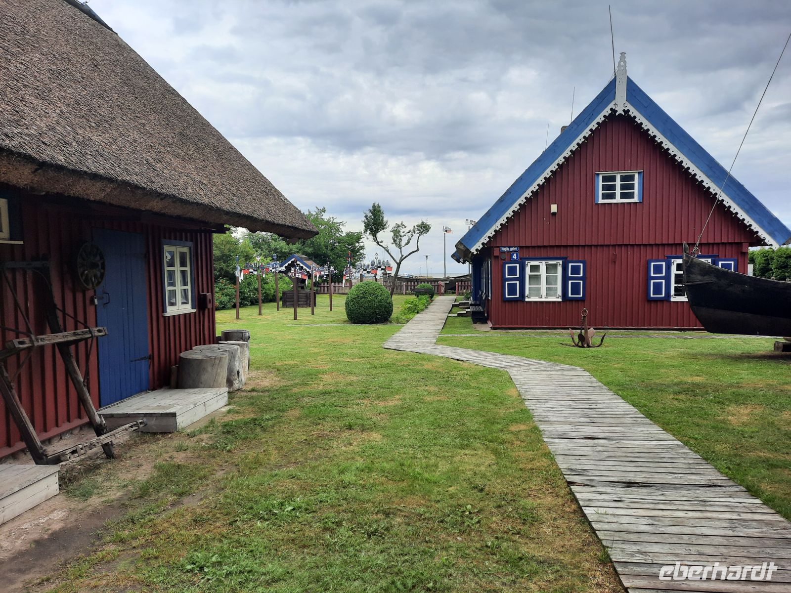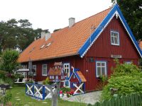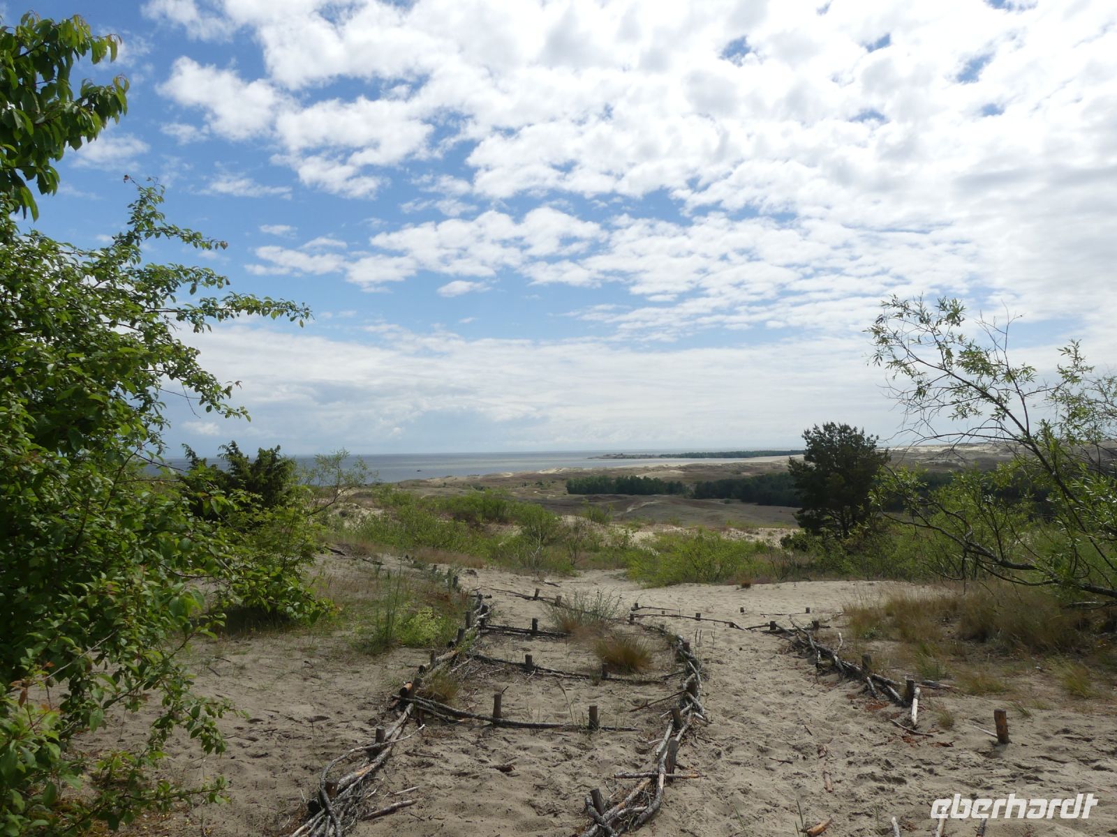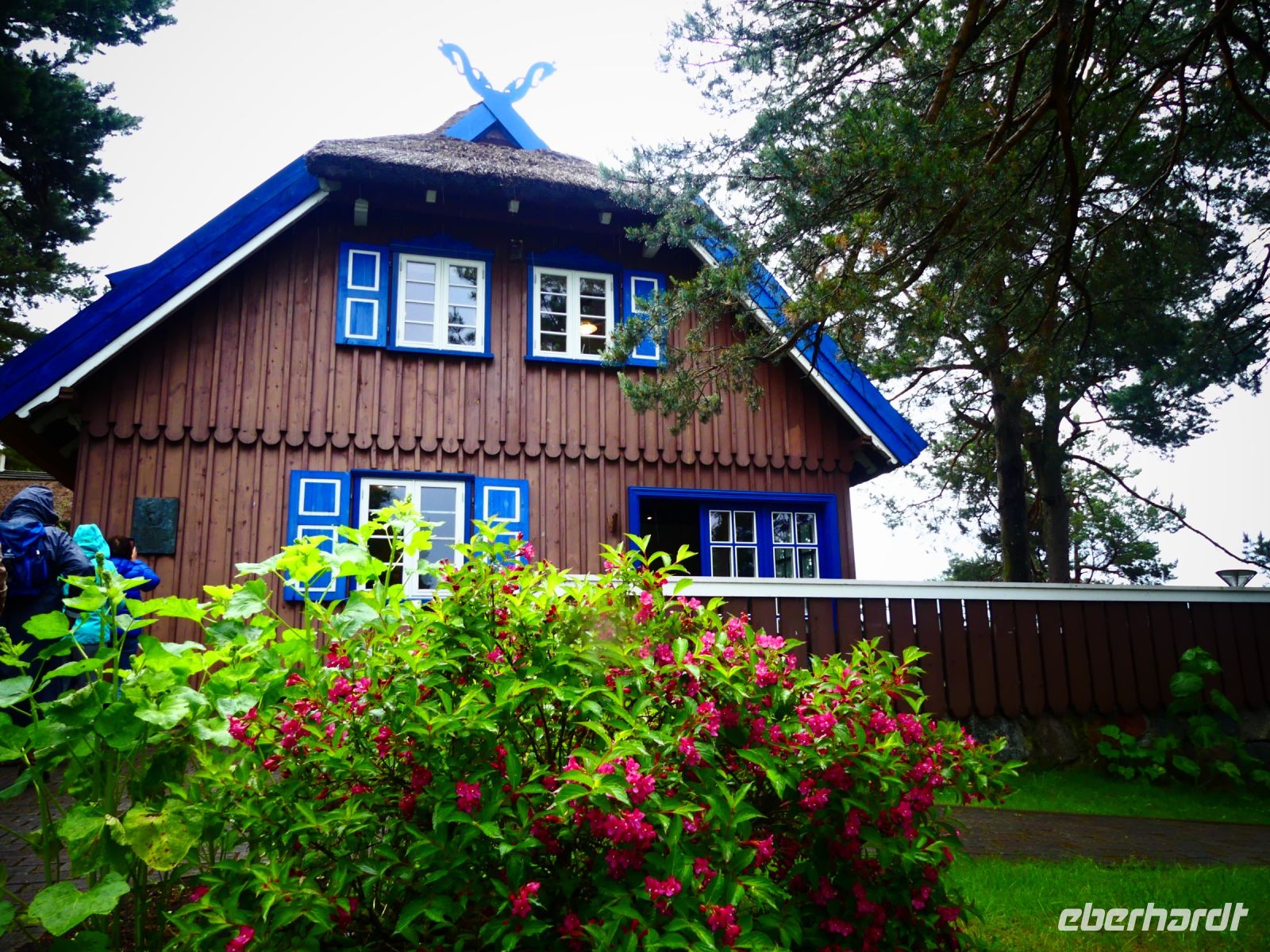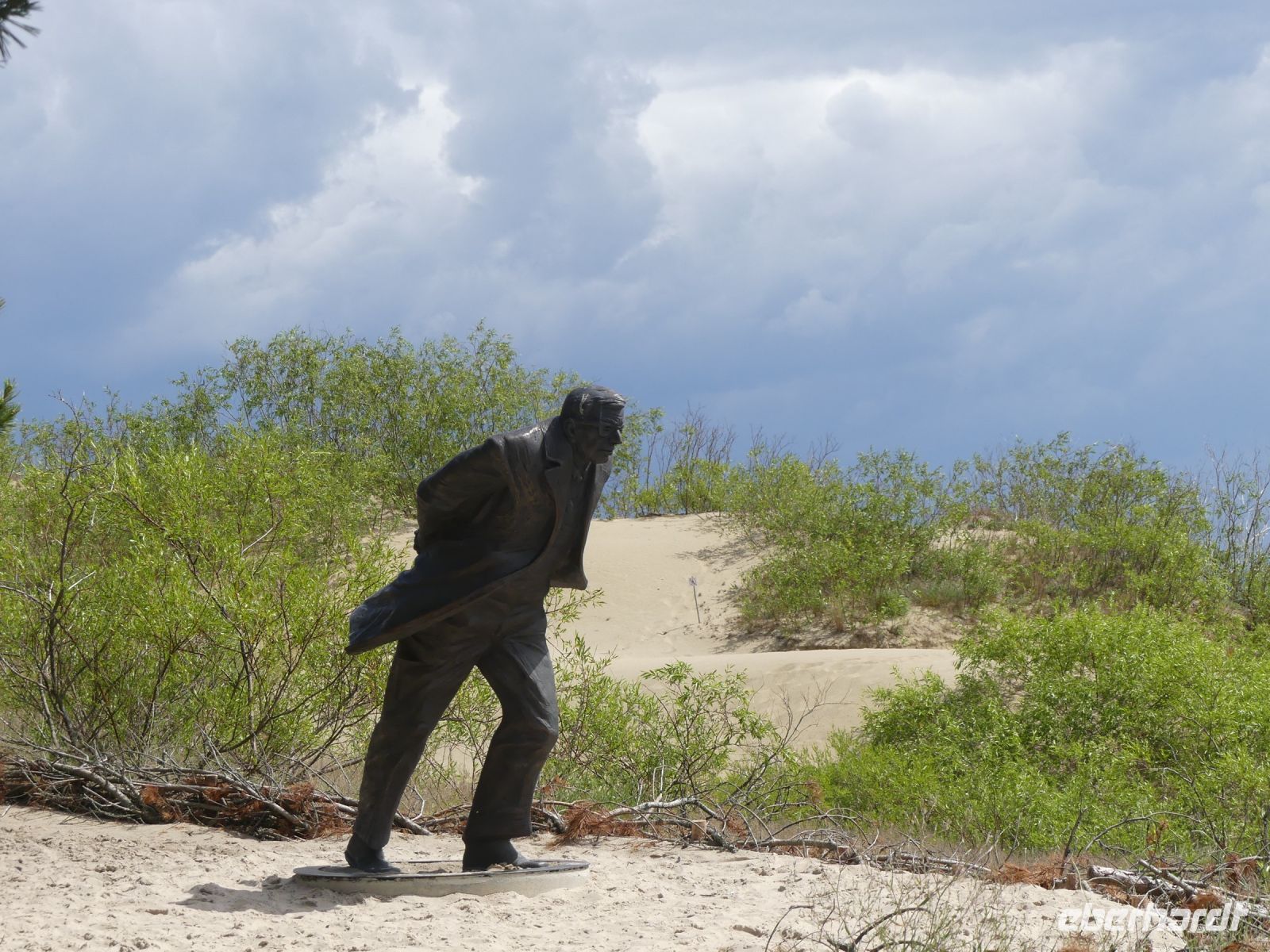 Was war denn heute los? Es regnete! Das sollte aber nur eine kurze Momentaufnahme während unserer Reise sein. Mit einem perfekten Frühstücksbuffet begann unser Tag. Der heutige Ganztagesausflug führte uns heute auf die Kurische Nehrung (Neringa). Darauf freuten sich alle, obwohl sich die Sonne noch dezent im Hintergrund hielt und es regnete. Die Nehrung trennt das Haff (Süßwasser), bis auf die schmale Meerenge bei Klaipeda, von der Ostsee. Somit ist das Haff das größte Binnengewässer Litauens. Die Kurische Nehrung, auch litauische Sahara genannt ist 98 km lang, davon 52 km litauisch, der andere Teil gehört zu Russland. Seit 2002 gehört sie zum Weltnaturerbe der UNESCO. Unweit von Nida (Nidden) befindet sich mit 3,8 km die breiteste Stelle, während die schmalste Stelle bei Lesnoi (russischer Teil) gerade mal 380 m beträgt. Neben der wissenschaftlichen Begründung erzählt auch eine Legende der Riesin Neringa von der Entstehung der Nehrung. Die meisten Ansiedlungen der Nehrung befinden sich auf der geschützten Haffseite. Nach kurzer Fährfahrt unternahmen wir eine kleine Rundfahrt. Vorbei an Juodkrante (Schwarzort), einem der ältesten Orte der Nehrung und kleinen Fischerhäusern fuhren wir nach Nida (Nidden). Zuerst besichtigten wir das Sommerhaus des Literaturnobelpreisträgeres Thomas Mann, den alten Friedhof mit alten Gräbern der Kuren und eine Bernsteingalerie. Entlang der Promenade spazierten wir ins Zentrum, zum Hafen. Hier verbrachten wir unsere Mittagspause. Im einstigen Fischerdörfchen, heute beliebter Ferienort sind viele Holzhäuschen mit den typisch blauen Verzierungen und Holzschnitzereien zu sehen. In einigen bunt blühenden Vorgärten standen die für Region typischen Kurenkähne. Kleine Restaurants und Cafes luden zum Verweilen zur Mittagszeit ein. Mittlerweile schien auch wieder die Sonne. Danach ging es zur hohen Düne. Auf einem gut befestigten Weg erklommen wir die 52 m hohe Düne, auf deren Gipfel sich eine Sonnenuhr befindet. Von oben eröffnete sich uns ein fantastischer Blick über die sandige und mit Kiefern bewaldete Nehrung bis auf die russische Seite, den rot-weißen Leuchtturm von Nida und auf das Haff. Natürlich durfte bei unserem Ausflug auch ein Besuch des Ostseestrandes, wofür ja die Kurische Nehrung bekannt ist, nicht fehlen. Als Abschluss des Tages genossen wir den herrlichen weißen Sandstrand und das Rauschen der Ostsee.