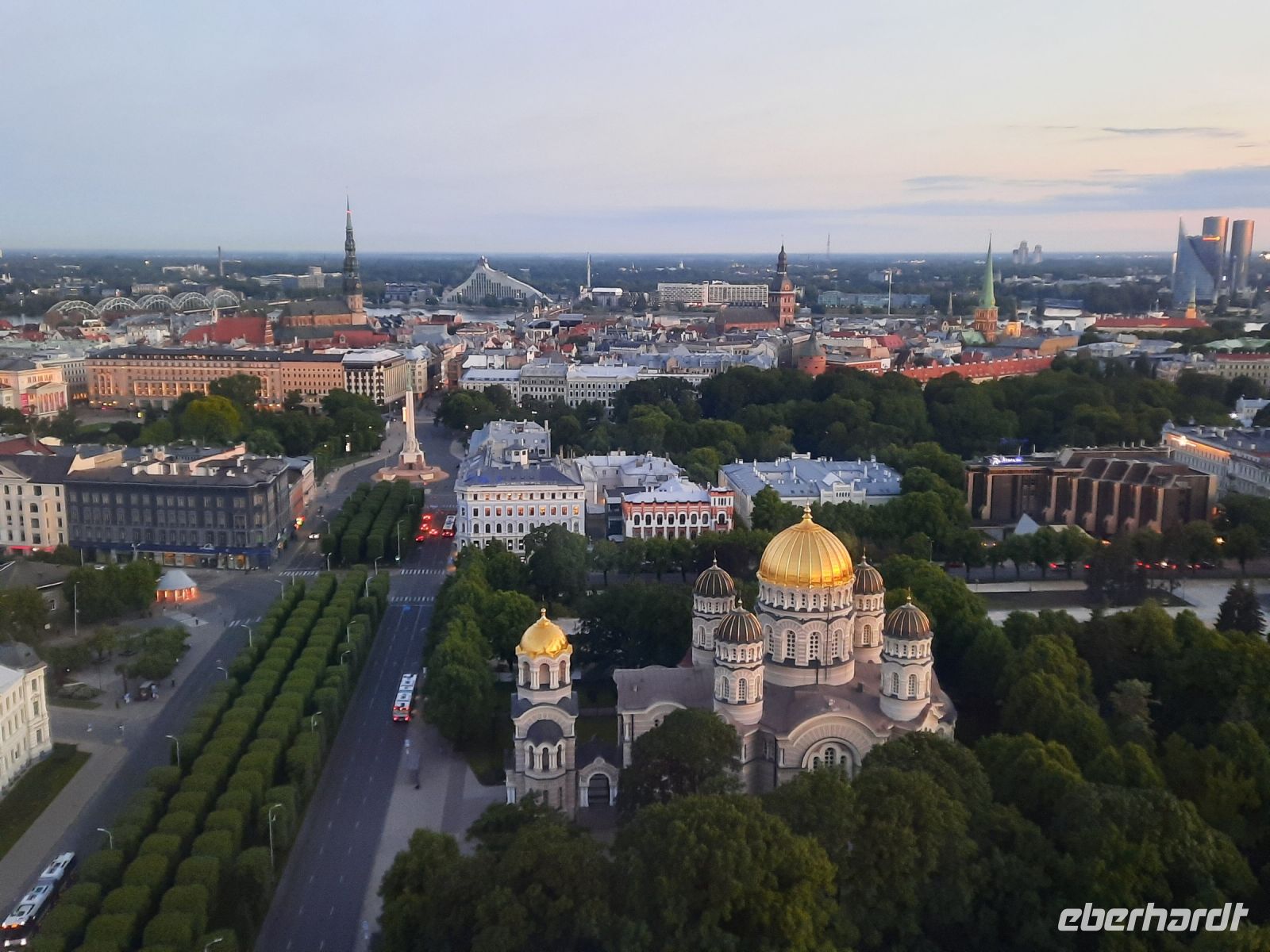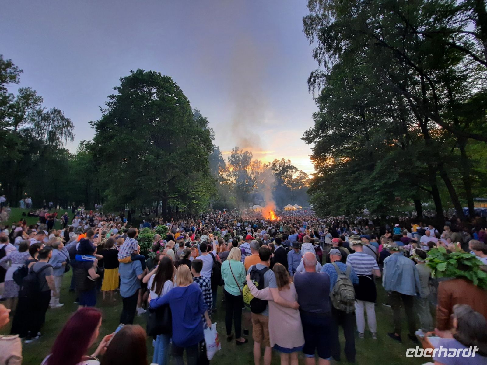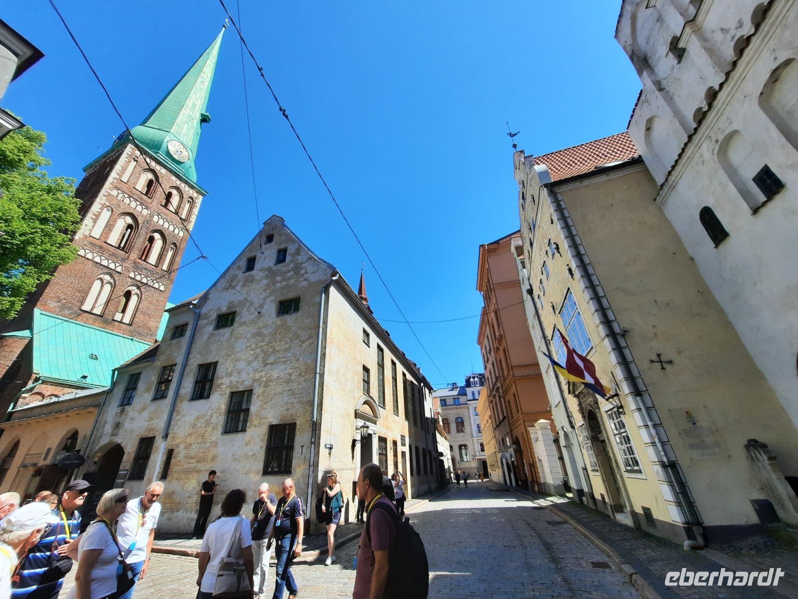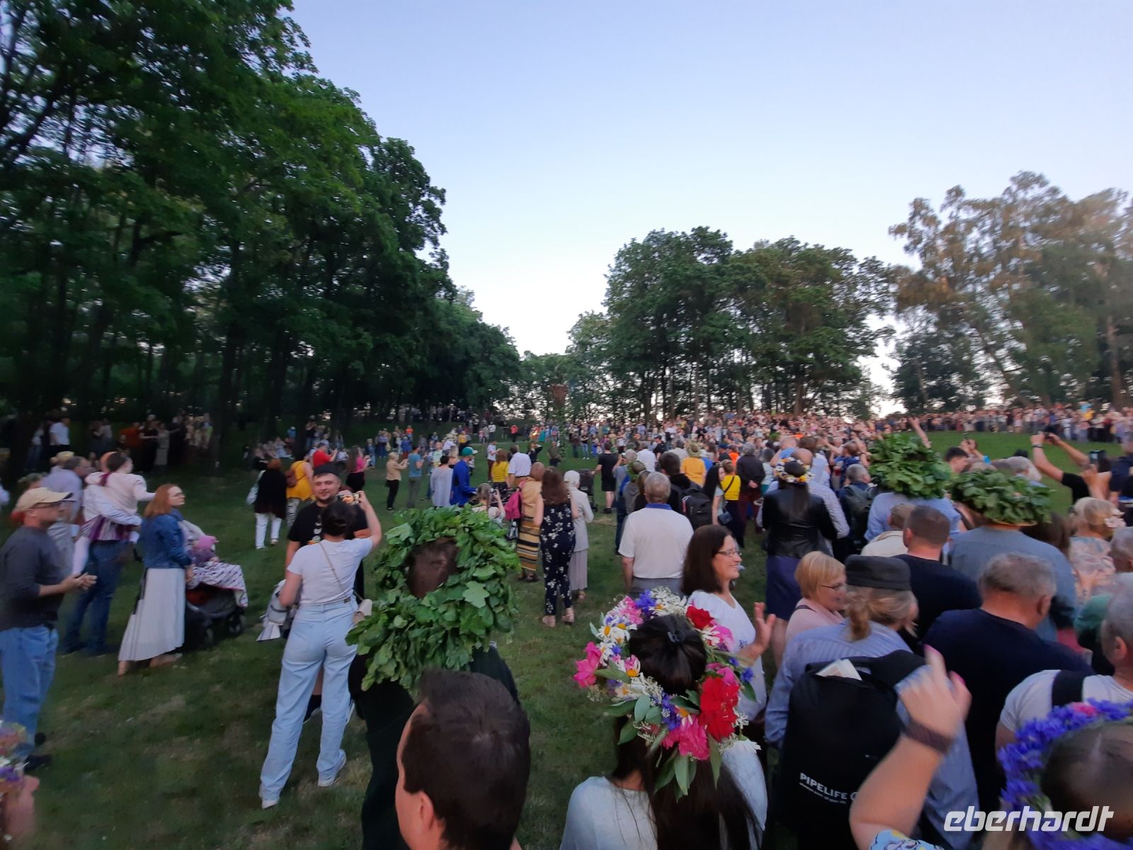 Am Vormittag begaben wir uns auf eine ausführliche Erkundungstour durch Riga, deren Altstadt ebenfalls zum UNESCO-Weltkulturerbe gehört. Riga schreibt eine interessante Geschichte: Bereits Anfang des 12. Jhd. landeten deutsche Schiffe an der Daugava-Mündung und es siedelten sich deutsche Kaufleute an und gründeten eine Handelssiedlung. Albert, später Bischof von Riga, baute mit den Kreuzrittern (unterstanden dem Papst) eine Burg und rief den Schwertbrüderorden (unterstand nur dem Bischof) ins Leben. Mitte des 13. Jhd. unterwarfen sich die Schwertbrüder dem deutschen Orden und nannten sich nun Livländischer Orden. Mehr dazu erfuhren wir später beim Besuch der Burg Turaida. Riga war nicht nur Hauptstadt von Livland und Sitz der Erzbischöfe, sondern entwickelte sich zu einer bedeutenden Hansestadt.Der Untergang des Ordensstaates begann mit dem Livländischen Krieg, der mit der Aufteilung an Polen, Schweden und Dänemark endete. Keine 50 Jahre später eroberten die Schweden das Gebiet von Polen und es begann die gute schwedische Zeit, die aber nicht lang andauerte. Im großen Nordischen Krieg unterlagen die Schweden und Riga fiel an das Zarenreich. Die russische Herrschaft bestand fast 200 Jahre, obwohl deutsch lange offizielle Amtssprache blieb (erst 1891 russisch), denn um 1900 waren mehr als 50 % der Einwohner Deutsch-Balten. Soweit zur älteren Geschichte, die jüngere ist uns noch bekannt. Heute ist Riga das Zentrum Lettlands und schmückt sich zu Recht mit Beinamen wie Perle der Ostsee oder Paris des Ostens. Zuerst wollten wir den faszinierenden Jugendstil begegnen. Zu Fuß erkundeten wir Elizabetes Iela und ihre Seitenstraßen. Hier befindet sich die höchste Konzentration von Jugendstil-Gebäuden, die zum größten Teil wunderbar saniert sind. Viele stammen vom Architekten Michail Eisenstein (Vater des sowjetischen Regisseurs Sergej Eisenstein). Wir erfuhren viel über die Entwicklung des Jugendstils in Riga im 19. und 20. Jhd. und konnten uns an den wunderschönen Fassaden gar nicht satt sehen. Jetzt verstanden wir, warum Riga neben Paris und Wien zu den schönsten Jugendstilmetropolen gehört. Anschließend fuhren wir mit dem Bus zu den Rigaer Markthallen, wo wir uns ins bunte Treiben im Bauch von Riga stürzten und der ein oder andere einen Blumenkranz kaufte - ein wichtiges Beiwerk für die anstehende Johannisnacht. Danach erkundeten wir die facettenreiche Altstadt. Am Livenplatz bestaunten wir die alten Gilde- und mittelalterlichen Wohnhäuser sowie das Katzenhaus. In der Mitte des Rathausplatzes steht die Statue von Roland und blickt auf das Rigaer Rathaus. Gegenüber bestaunten wir die prunkvolle Fassade des Schwarzhäupterhauses. bei der nahen Petri-Kirche entdeckten wir die Bremer Stadtmusikanten. Auf dem belebten Domplatz prankt der Dom St. Marien, der größte Kirchenbau des Baltikums. 211 wurde der erste Grundstein gesetzt. Nicht verwunderlich, dass am Dom viele Stile (von Romantik bis hin zum Barock) zu finden sind. Fast alle Gäste nutzten die Möglichkeit, dass täglich um 12 Uhr stattfindende Orgelkonzert im Dom zu besuchen. Nach dieser besinnlichen Auszeit setzten wir den Stadtrundgang fort, denn es gab noch einiges zu entdecken. Wir spazierten die alte Stadtmauer entlang. Unter dem Schwedentor, dem einzigen, noch erhaltenen Stadttor verweilten wir bei einem musikalischen Ständchen. Wir blickten auf das mittelalterliche Gebäudeensemble der 3 Brüder. Anschließend schlängelten wir uns durch die schmalste Gasse, die den Namen Lärmstraße trägt, zur Jacobikirche. Am Nachmittag genossen alle Gäste freie Zeit. Das Abendessen wurde uns im Restaurant Melnais Kiploks (Schwarzer Knoblauch) in der Altstadt serviert. Einige Gäste feierten mit den Litauern die Johannisnacht in einem Park auf der anderen Seite der Daugava. Traditionell mit einer Prozession wurde das Johannisfeuer entzündet und danach ausgelassen gesungen und getanzt.
