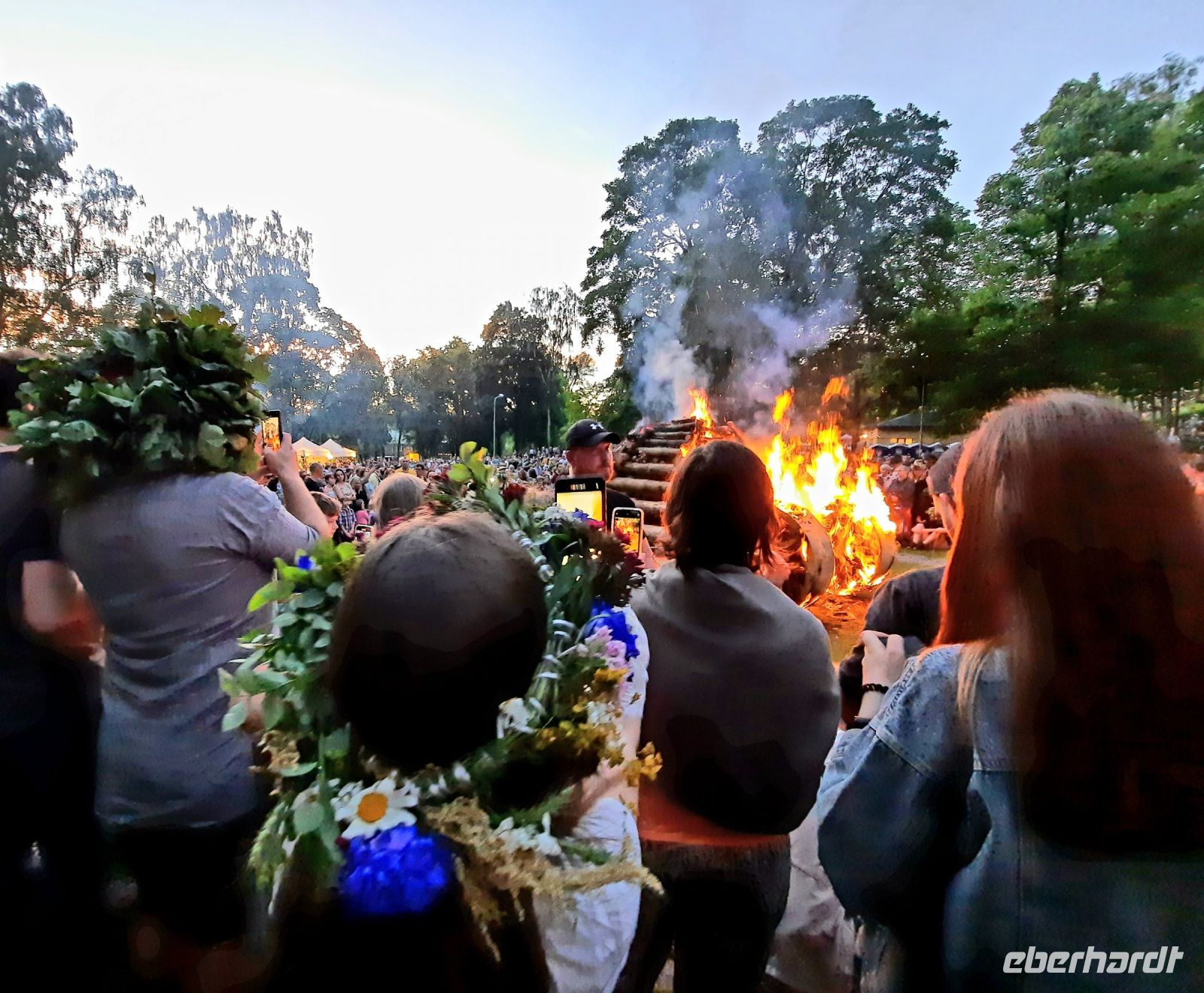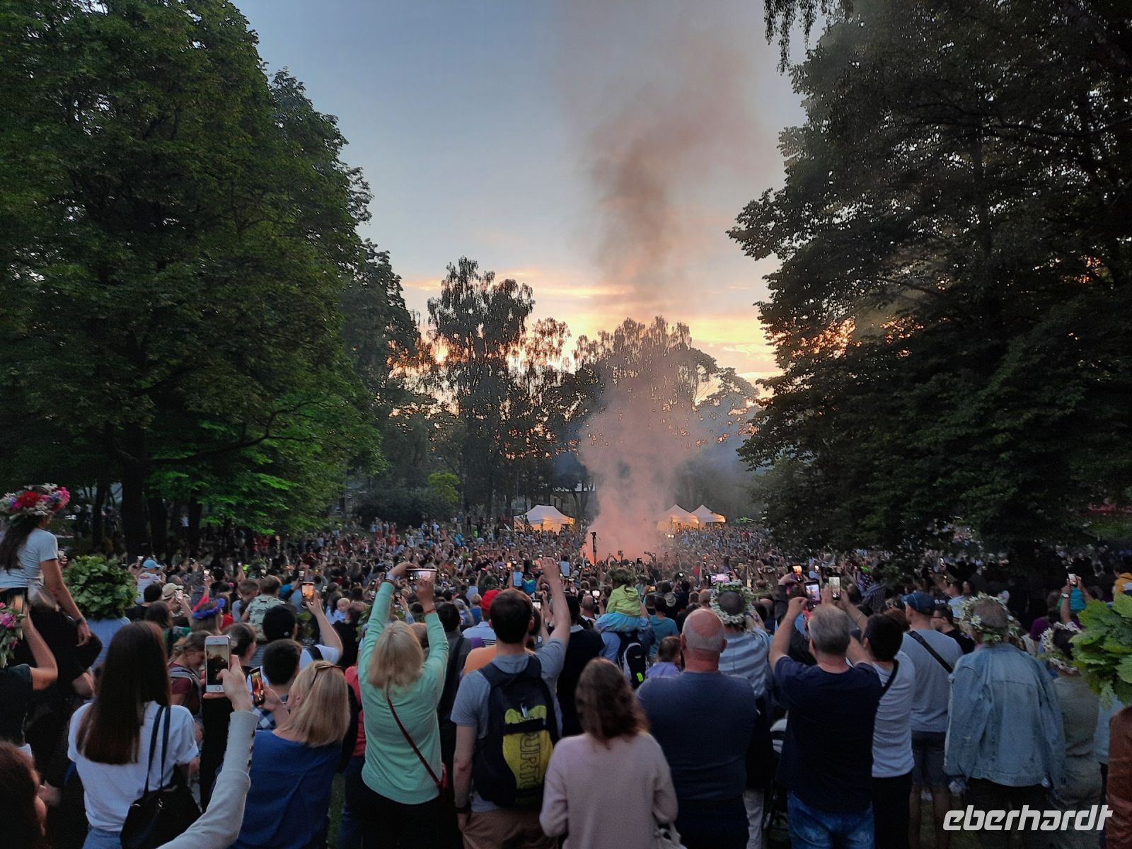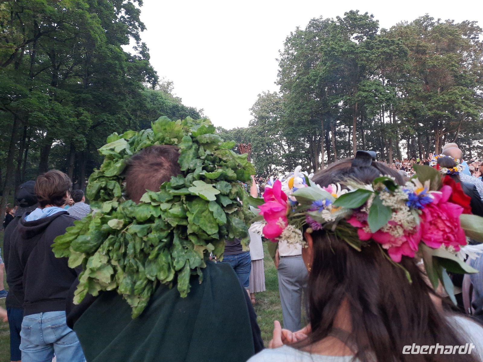 Am Vormittag begaben wir uns auf eine ausführliche Erkundungstour durch Riga, deren Altstadt ebenfalls zum UNESCO-Weltkulturerbe gehört. Riga schreibt eine interessante Geschichte: Bereits Anfang des 12. Jhd. landeten deutsche Schiffe an der Daugava-Mündung und es siedelten sich deutsche Kaufleute an und gründeten eine Handelssiedlung. Albert, später Bischof von Riga, baute mit den Kreuzrittern (unterstanden dem Papst) eine Burg und rief den Schwertbrüderorden (unterstand nur dem Bischof) ins Leben. Mitte des 13. Jhd. unterwarfen sich die Schwertbrüder dem deutschen Orden und nannten sich nun Livländischer Orden. Mehr dazu erfuhren wir später beim Besuch der Burg Turaida. Riga war nicht nur Hauptstadt von Livland und Sitz der Erzbischöfe, sondern entwickelte sich zu einer bedeutenden Hansestadt.Der Untergang des Ordensstaates begann mit dem Livländischen Krieg, der mit der Aufteilung an Polen, Schweden und Dänemark endete. Keine 50 Jahre später eroberten die Schweden das Gebiet von Polen und es begann die gute schwedische Zeit, die aber nicht lang andauerte. Im großen Nordischen Krieg unterlagen die Schweden und Riga fiel an das Zarenreich. Die russische Herrschaft bestand fast 200 Jahre, obwohl deutsch lange offizielle Amtssprache blieb (erst 1891 russisch), denn um 1900 waren mehr als 50 % der Einwohner Deutsch-Balten. Soweit zur älteren Geschichte, die jüngere ist uns noch bekannt. Heute ist Riga das Zentrum Lettlands und schmückt sich zu Recht mit Beinamen wie Perle der Ostsee oder Paris des Ostens. Zuerst wollten wir den faszinierenden Jugendstil begegnen. Zu Fuß erkundeten wir Elizabetes Iela und ihre Seitenstraßen. Hier befindet sich die höchste Konzentration von Jugendstil-Gebäuden, die zum größten Teil wunderbar saniert sind. Viele stammen vom Architekten Michail Eisenstein (Vater des sowjetischen Regisseurs Sergej Eisenstein). Wir erfuhren viel über die Entwicklung des Jugendstils in Riga im 19. und 20. Jhd. und konnten uns an den wunderschönen Fassaden gar nicht satt sehen. Jetzt verstanden wir, warum Riga neben Paris und Wien zu den schönsten Jugendstilmetropolen gehört. Anschließend fuhren wir mit dem Bus zu den Rigaer Markthallen, wo wir uns ins bunte Treiben im Bauch von Riga stürzten und der ein oder andere einen Blumenkranz kaufte - ein wichtiges Beiwerk für die anstehende Johannisnacht. Danach erkundeten wir die facettenreiche Altstadt. Am Livenplatz bestaunten wir die alten Gilde- und mittelalterlichen Wohnhäuser sowie das Katzenhaus. In der Mitte des Rathausplatzes steht die Statue von Roland und blickt auf das Rigaer Rathaus. Gegenüber bestaunten wir die prunkvolle Fassade des Schwarzhäupterhauses. bei der nahen Petri-Kirche entdeckten wir die Bremer Stadtmusikanten. Auf dem belebten Domplatz prankt der Dom St. Marien, der größte Kirchenbau des Baltikums. 211 wurde der erste Grundstein gesetzt. Nicht verwunderlich, dass am Dom viele Stile (von Romantik bis hin zum Barock) zu finden sind. Fast alle Gäste nutzten die Möglichkeit, dass täglich um 12 Uhr stattfindende Orgelkonzert im Dom zu besuchen. Nach dieser besinnlichen Auszeit setzten wir den Stadtrundgang fort, denn es gab noch einiges zu entdecken. Wir spazierten die alte Stadtmauer entlang. Unter dem Schwedentor, dem einzigen, noch erhaltenen Stadttor verweilten wir bei einem musikalischen Ständchen. Wir blickten auf das mittelalterliche Gebäudeensemble der 3 Brüder. Anschließend schlängelten wir uns durch die schmalste Gasse, die den Namen Lärmstraße trägt, zur Jacobikirche. Am Nachmittag genossen alle Gäste freie Zeit. Das Abendessen wurde uns im Restaurant Melnais Kiploks (Schwarzer Knoblauch) in der Altstadt serviert. Einige Gäste feierten mit den Litauern die Johannisnacht in einem Park auf der anderen Seite der Daugava. Traditionell mit einer Prozession wurde das Johannisfeuer entzündet und danach ausgelassen gesungen und getanzt.