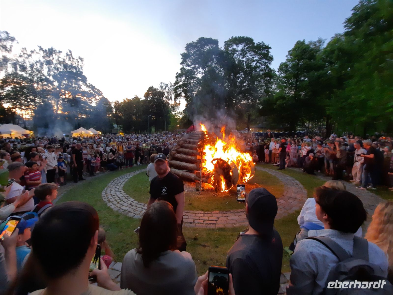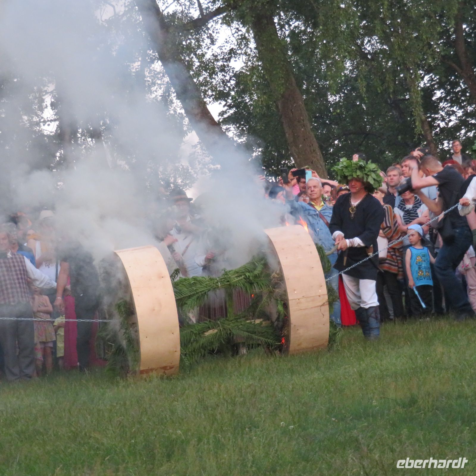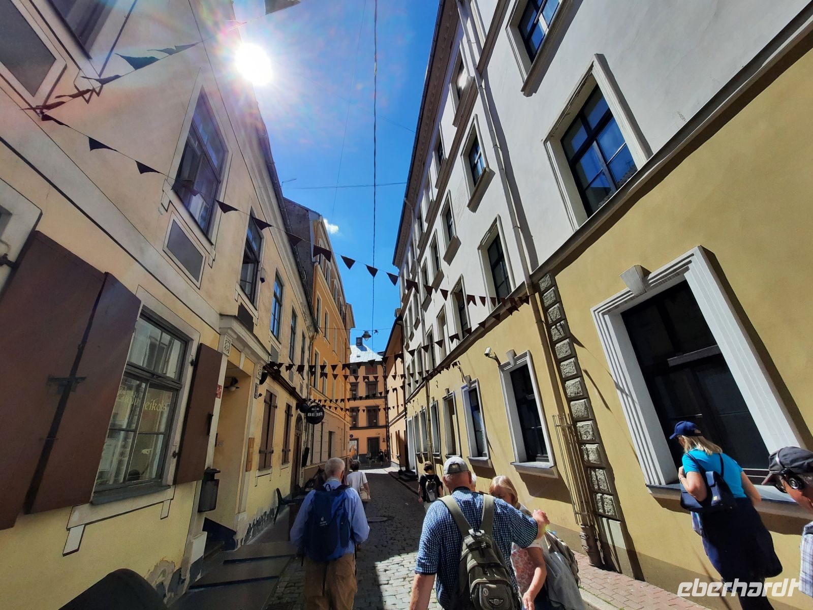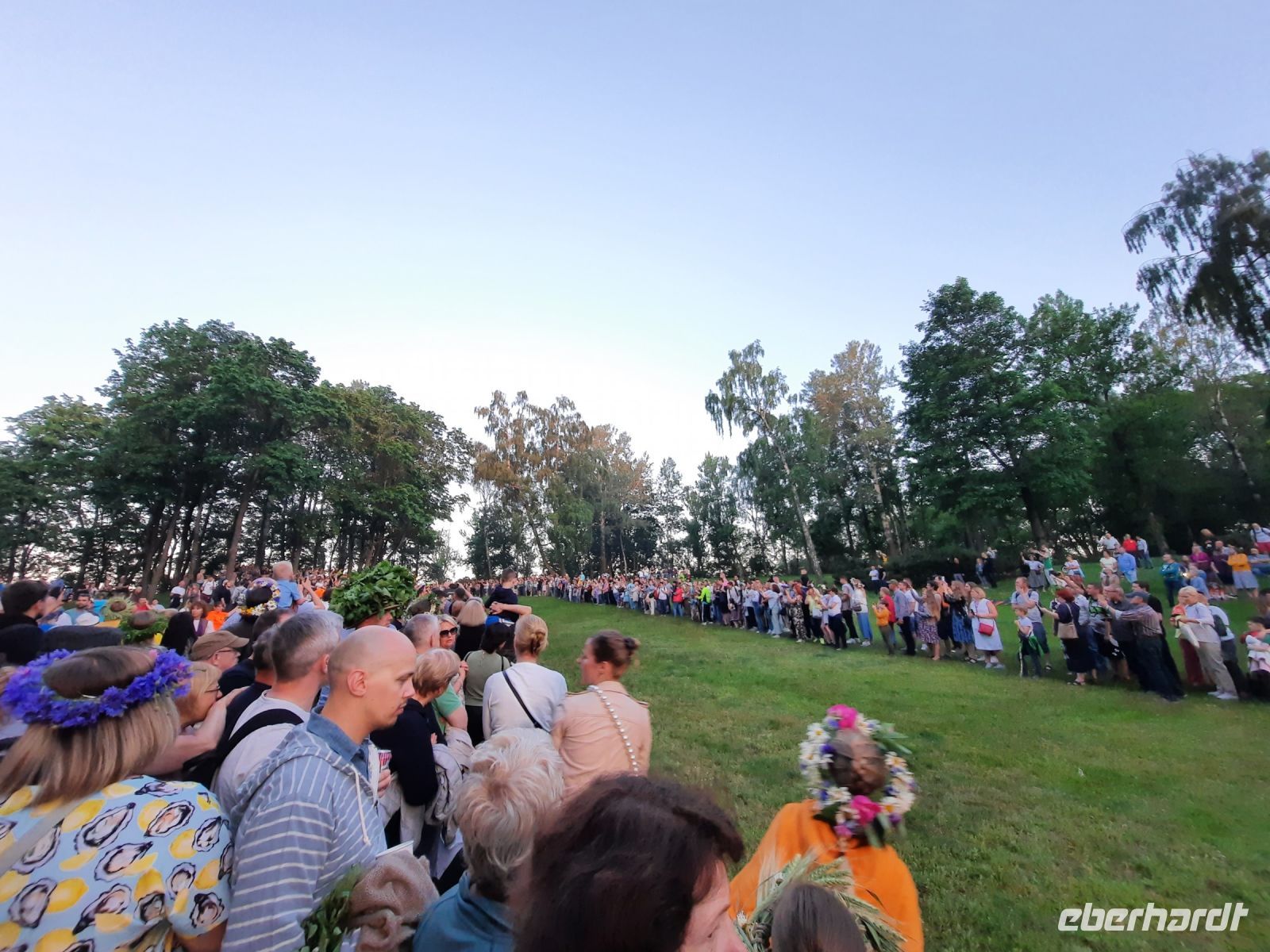 Am Vormittag begaben wir uns auf eine ausführliche Erkundungstour durch Riga, deren Altstadt ebenfalls zum UNESCO-Weltkulturerbe gehört. Riga schreibt eine interessante Geschichte: Bereits Anfang des 12. Jhd. landeten deutsche Schiffe an der Daugava-Mündung und es siedelten sich deutsche Kaufleute an und gründeten eine Handelssiedlung. Albert, später Bischof von Riga, baute mit den Kreuzrittern (unterstanden dem Papst) eine Burg und rief den Schwertbrüderorden (unterstand nur dem Bischof) ins Leben. Mitte des 13. Jhd. unterwarfen sich die Schwertbrüder dem deutschen Orden und nannten sich nun Livländischer Orden. Mehr dazu erfuhren wir später beim Besuch der Burg Turaida. Riga war nicht nur Hauptstadt von Livland und Sitz der Erzbischöfe, sondern entwickelte sich zu einer bedeutenden Hansestadt.Der Untergang des Ordensstaates begann mit dem Livländischen Krieg, der mit der Aufteilung an Polen, Schweden und Dänemark endete. Keine 50 Jahre später eroberten die Schweden das Gebiet von Polen und es begann die gute schwedische Zeit, die aber nicht lang andauerte. Im großen Nordischen Krieg unterlagen die Schweden und Riga fiel an das Zarenreich. Die russische Herrschaft bestand fast 200 Jahre, obwohl deutsch lange offizielle Amtssprache blieb (erst 1891 russisch), denn um 1900 waren mehr als 50 % der Einwohner Deutsch-Balten. Soweit zur älteren Geschichte, die jüngere ist uns noch bekannt. Heute ist Riga das Zentrum Lettlands und schmückt sich zu Recht mit Beinamen wie Perle der Ostsee oder Paris des Ostens. Zuerst wollten wir den faszinierenden Jugendstil begegnen. Zu Fuß erkundeten wir Elizabetes Iela und ihre Seitenstraßen. Hier befindet sich die höchste Konzentration von Jugendstil-Gebäuden, die zum größten Teil wunderbar saniert sind. Viele stammen vom Architekten Michail Eisenstein (Vater des sowjetischen Regisseurs Sergej Eisenstein). Wir erfuhren viel über die Entwicklung des Jugendstils in Riga im 19. und 20. Jhd. und konnten uns an den wunderschönen Fassaden gar nicht satt sehen. Jetzt verstanden wir, warum Riga neben Paris und Wien zu den schönsten Jugendstilmetropolen gehört. Anschließend fuhren wir mit dem Bus zu den Rigaer Markthallen, wo wir uns ins bunte Treiben im Bauch von Riga stürzten und der ein oder andere einen Blumenkranz kaufte - ein wichtiges Beiwerk für die anstehende Johannisnacht. Danach erkundeten wir die facettenreiche Altstadt. Am Livenplatz bestaunten wir die alten Gilde- und mittelalterlichen Wohnhäuser sowie das Katzenhaus. In der Mitte des Rathausplatzes steht die Statue von Roland und blickt auf das Rigaer Rathaus. Gegenüber bestaunten wir die prunkvolle Fassade des Schwarzhäupterhauses. bei der nahen Petri-Kirche entdeckten wir die Bremer Stadtmusikanten. Auf dem belebten Domplatz prankt der Dom St. Marien, der größte Kirchenbau des Baltikums. 211 wurde der erste Grundstein gesetzt. Nicht verwunderlich, dass am Dom viele Stile (von Romantik bis hin zum Barock) zu finden sind. Fast alle Gäste nutzten die Möglichkeit, dass täglich um 12 Uhr stattfindende Orgelkonzert im Dom zu besuchen. Nach dieser besinnlichen Auszeit setzten wir den Stadtrundgang fort, denn es gab noch einiges zu entdecken. Wir spazierten die alte Stadtmauer entlang. Unter dem Schwedentor, dem einzigen, noch erhaltenen Stadttor verweilten wir bei einem musikalischen Ständchen. Wir blickten auf das mittelalterliche Gebäudeensemble der 3 Brüder. Anschließend schlängelten wir uns durch die schmalste Gasse, die den Namen Lärmstraße trägt, zur Jacobikirche. Am Nachmittag genossen alle Gäste freie Zeit. Das Abendessen wurde uns im Restaurant Melnais Kiploks (Schwarzer Knoblauch) in der Altstadt serviert. Einige Gäste feierten mit den Litauern die Johannisnacht in einem Park auf der anderen Seite der Daugava. Traditionell mit einer Prozession wurde das Johannisfeuer entzündet und danach ausgelassen gesungen und getanzt.