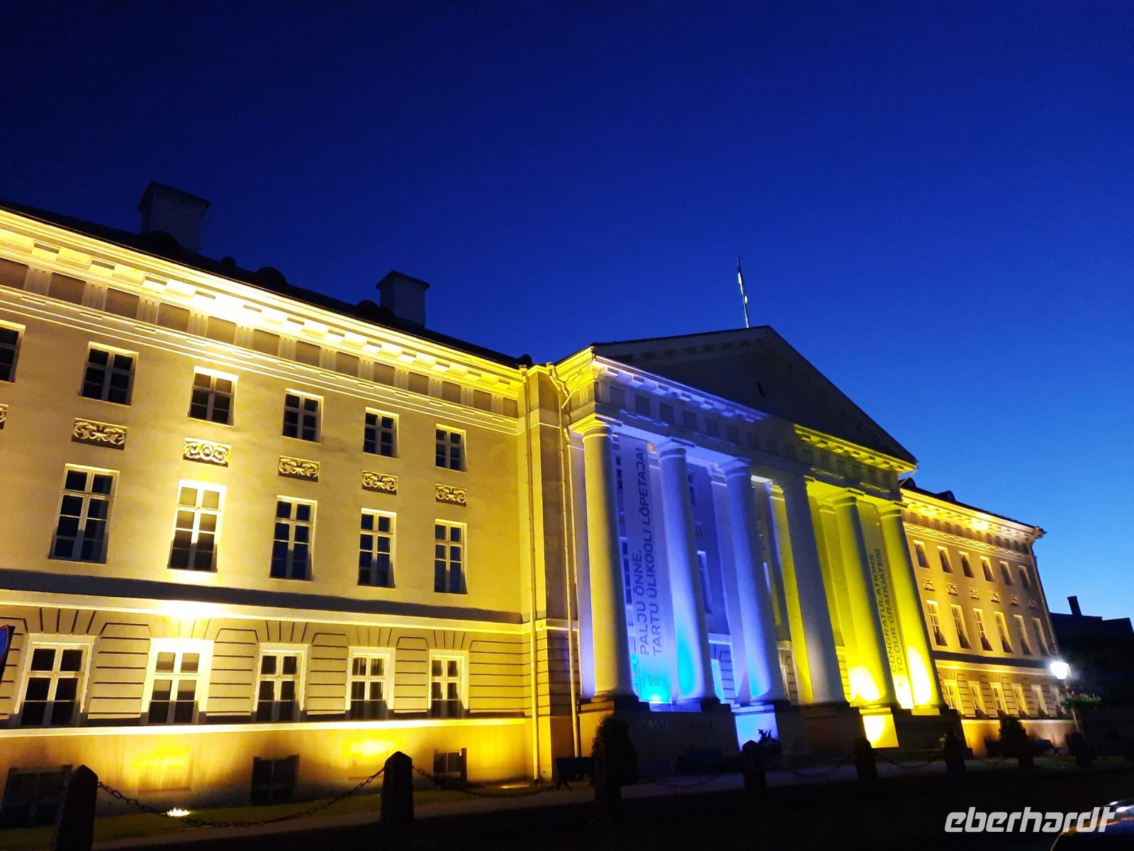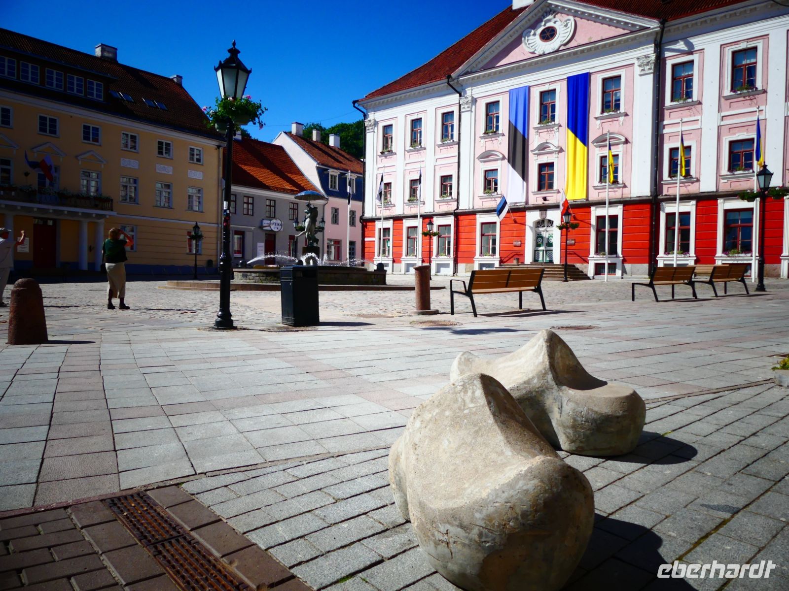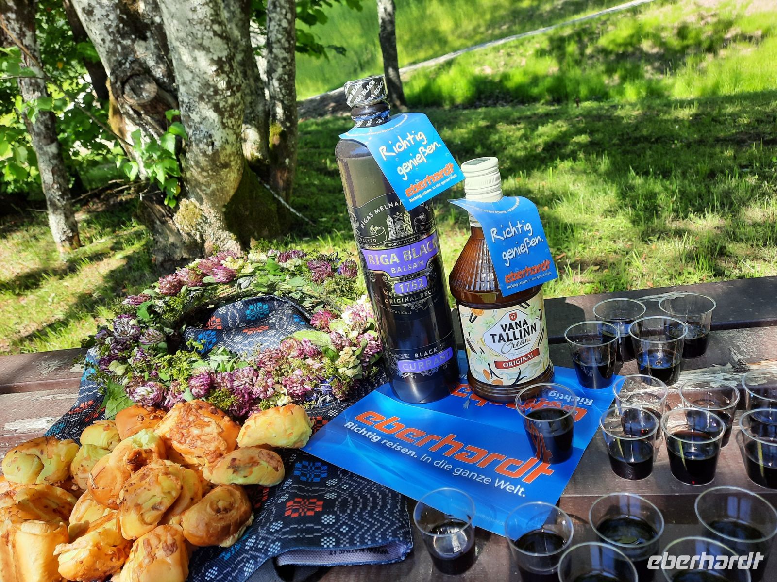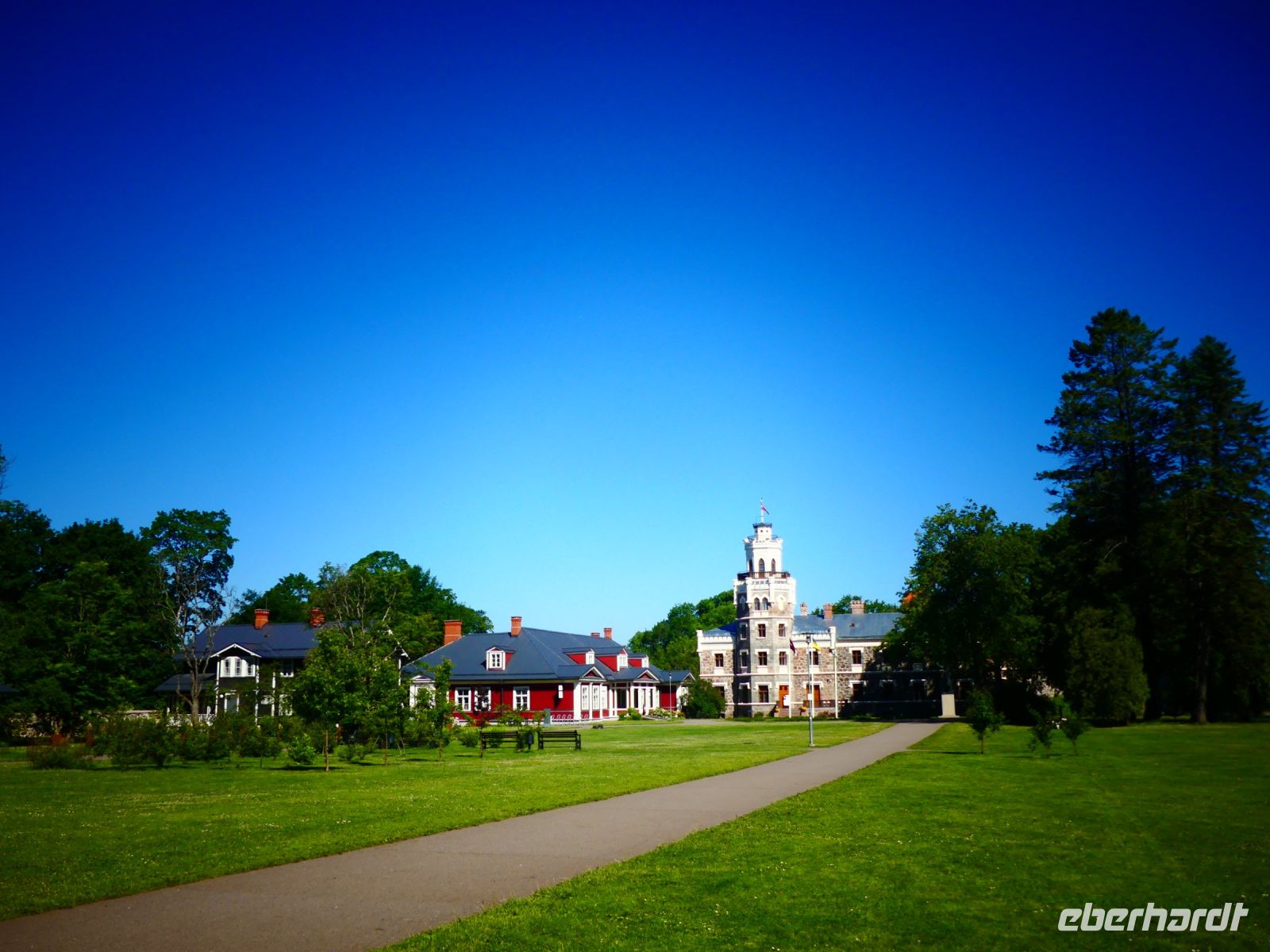 Das erste Ziel war der Gauja Nationalpark, ca. 50 km von Riga entfernt. Sigulda (Segewold) ist ein beliebter Erholungsort und Wanderparadies, durch seine Rennschlittenbahn (auf Stelzen) auch bekannt als Wintersportort. Diese konnten wir von außen besichtigen. Wir spazierten durch den Schlosspark und die alte Burganlage von Sigulda, wo das Johannisfeuer noch zündelte. Durch die dicht bewaldete, hüglige Region schlängelt sich der Fluss Gauja. Eine kurzer Spaziergang führte die Gruppe zur Gutmannhöhle. In der 10 m hohen Sandsteinhöhle entspringt eine wundersame Quelle. Anschließend überraschte Eberhardt-Reisebegleitung Annett mit einem baltischen Picknick und Verkostung lokaler Getränke. Unweit befindet sich die Burg Turaida. Auf dem Spaziergang durch den Komplex besichtigten wir den Skulpturenpark, die kleine Kirche (eine der ältesten Holzkirchen Lettlands), das Grab der Rose von Turaida und die alte, rekonstruierte Bischofsburg Turaida aus dem Jahre 1214. Einige Gäste erklommen den 30 m hohen Burgfried (Turm) und wurden mit einem fantastischen Blick über den Nationalpark belohnt. Auf unseren Weg nach Estland sahen wir viele besetzte Storchennester, die teilweise auch schon Nachwuchs versorgten. Nach einer Mittagspause in der Hexen-Raststätte rollten wir nach Estland. Unser Ziel war die alte Universitätsstadt Tartu. Für 2 Tage residierten wir im traditionsreichen Boutique Hotel Antonius gegenüber der alten Universität.