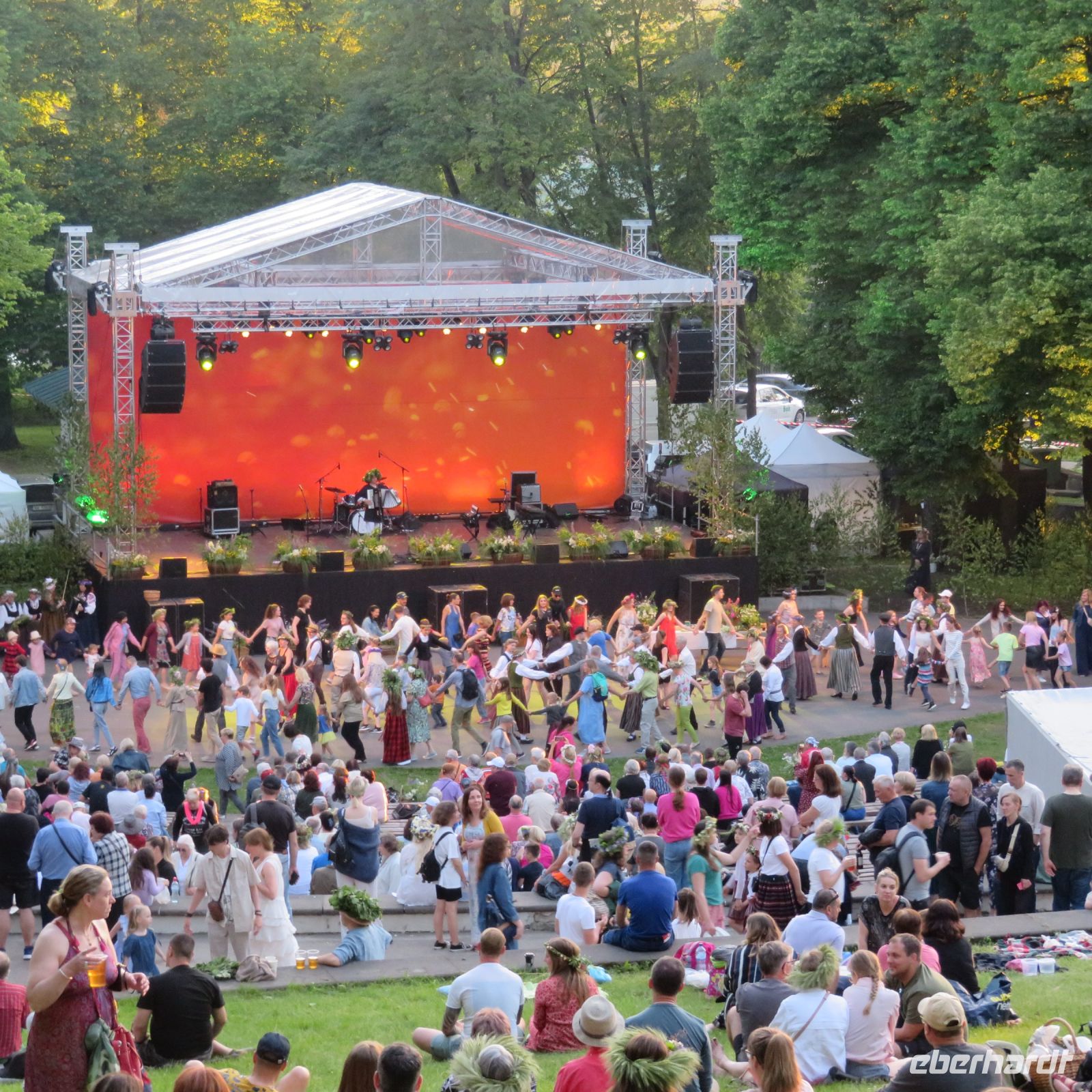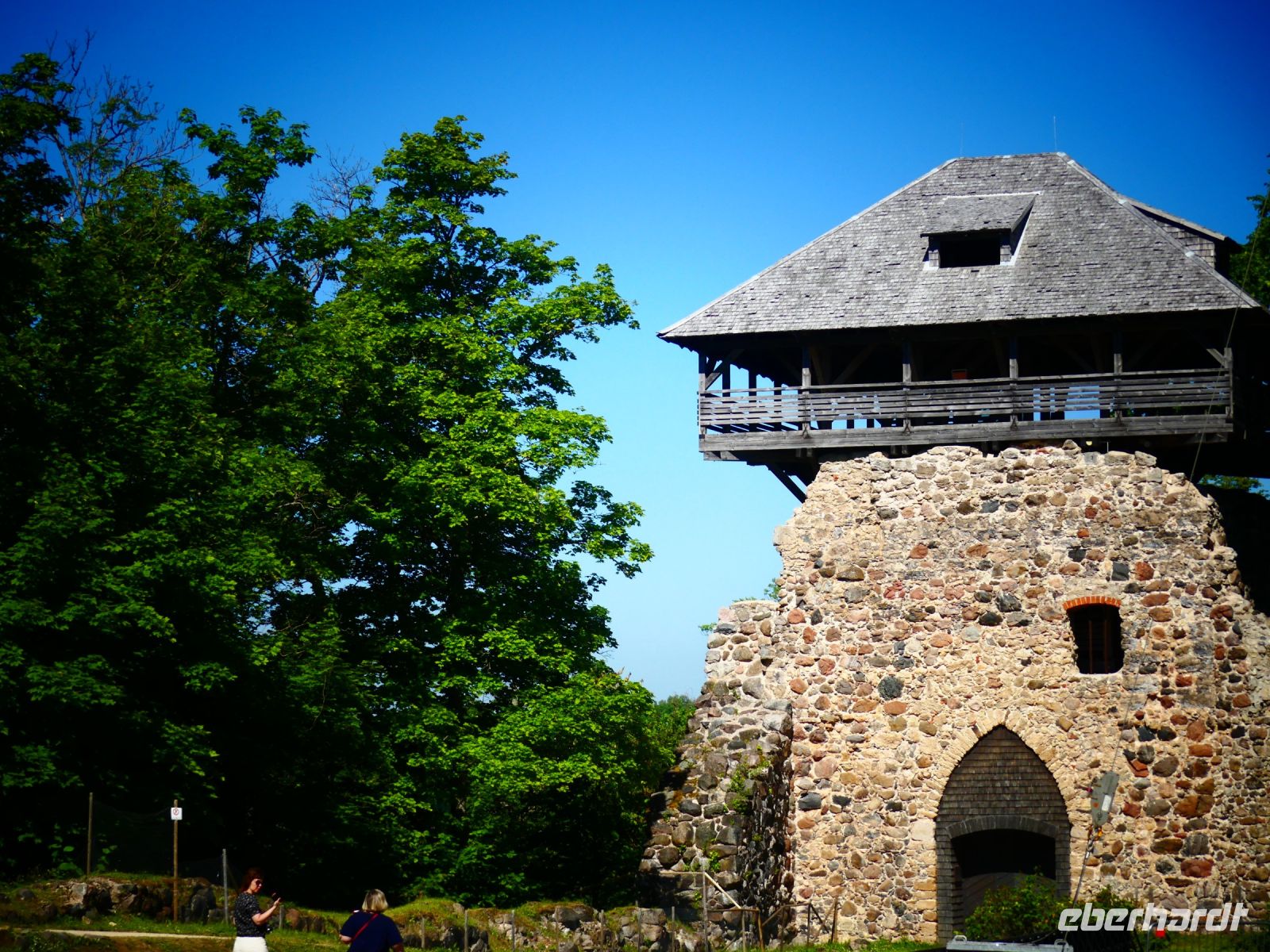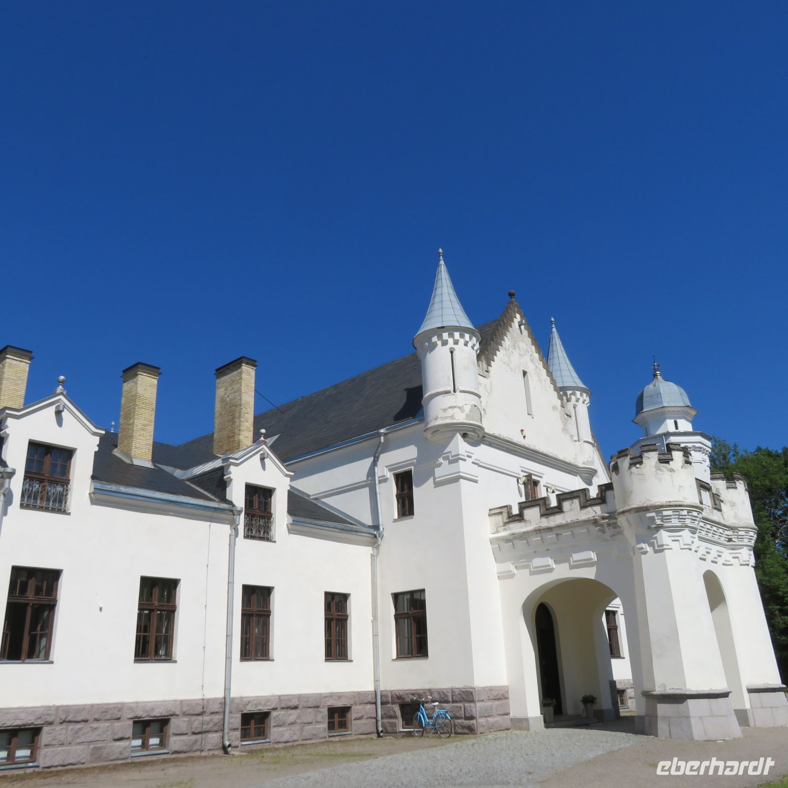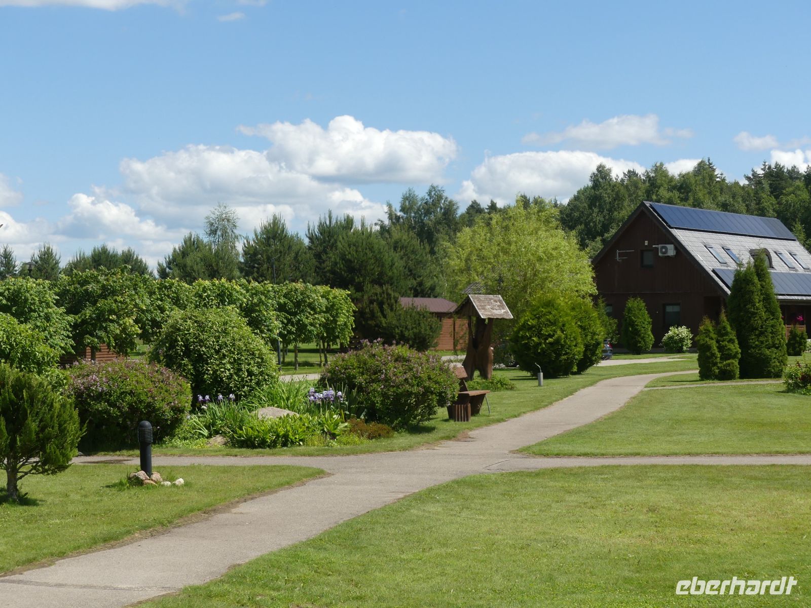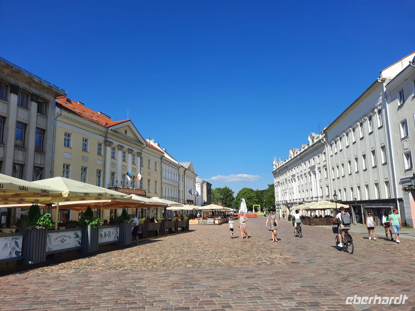 Das erste Ziel war der Gauja Nationalpark, ca. 50 km von Riga entfernt. Sigulda (Segewold) ist ein beliebter Erholungsort und Wanderparadies, durch seine Rennschlittenbahn (auf Stelzen) auch bekannt als Wintersportort. Diese konnten wir von außen besichtigen. Wir spazierten durch den Schlosspark und die alte Burganlage von Sigulda, wo das Johannisfeuer noch zündelte. Durch die dicht bewaldete, hüglige Region schlängelt sich der Fluss Gauja. Eine kurzer Spaziergang führte die Gruppe zur Gutmannhöhle. In der 10 m hohen Sandsteinhöhle entspringt eine wundersame Quelle. Anschließend überraschte Eberhardt-Reisebegleitung Annett mit einem baltischen Picknick und Verkostung lokaler Getränke. Unweit befindet sich die Burg Turaida. Auf dem Spaziergang durch den Komplex besichtigten wir den Skulpturenpark, die kleine Kirche (eine der ältesten Holzkirchen Lettlands), das Grab der Rose von Turaida und die alte, rekonstruierte Bischofsburg Turaida aus dem Jahre 1214. Einige Gäste erklommen den 30 m hohen Burgfried (Turm) und wurden mit einem fantastischen Blick über den Nationalpark belohnt. Auf unseren Weg nach Estland sahen wir viele besetzte Storchennester, die teilweise auch schon Nachwuchs versorgten. Nach einer Mittagspause in der Hexen-Raststätte rollten wir nach Estland. Unser Ziel war die alte Universitätsstadt Tartu. Für 2 Tage residierten wir im traditionsreichen Boutique Hotel Antonius gegenüber der alten Universität.