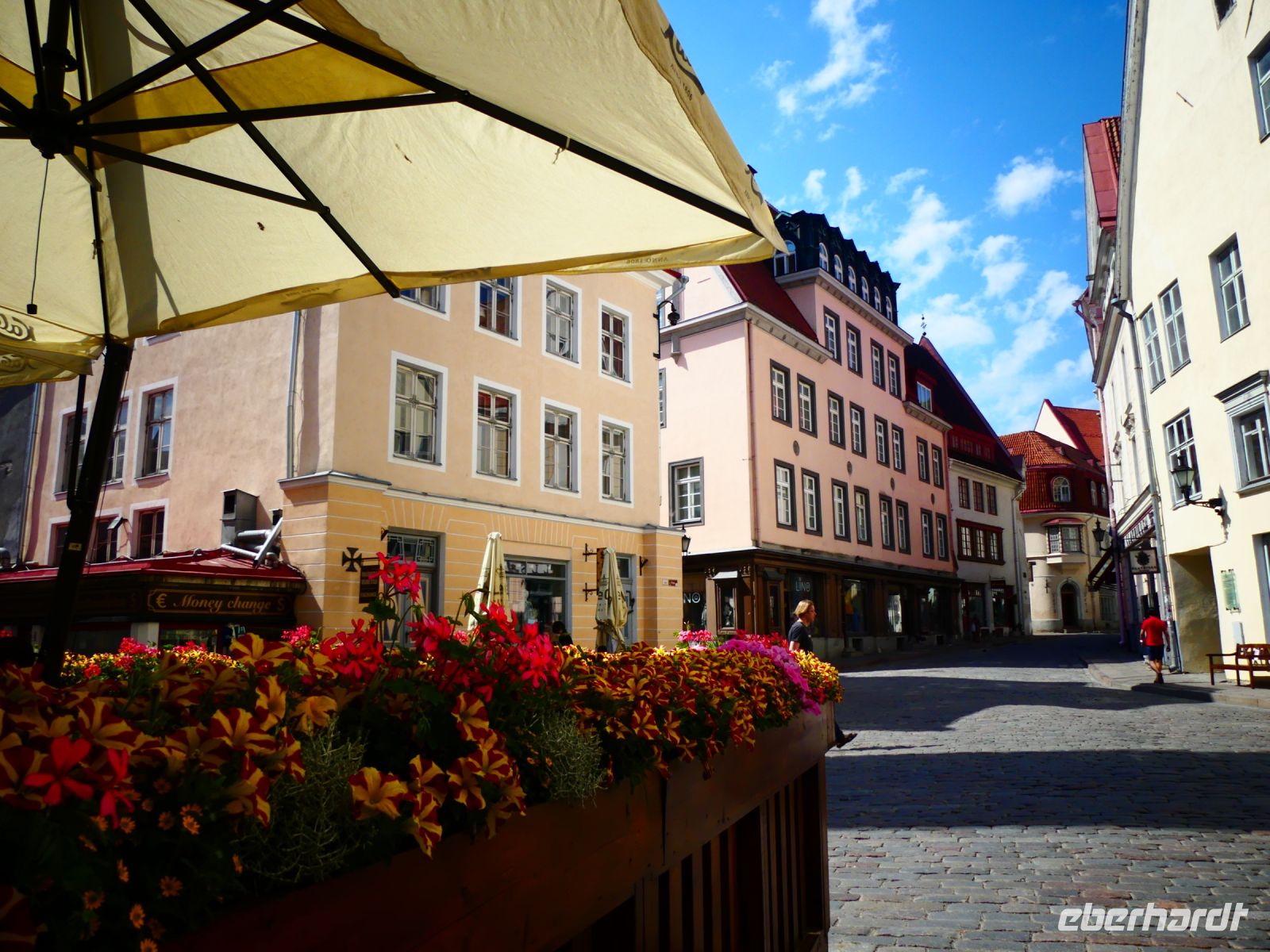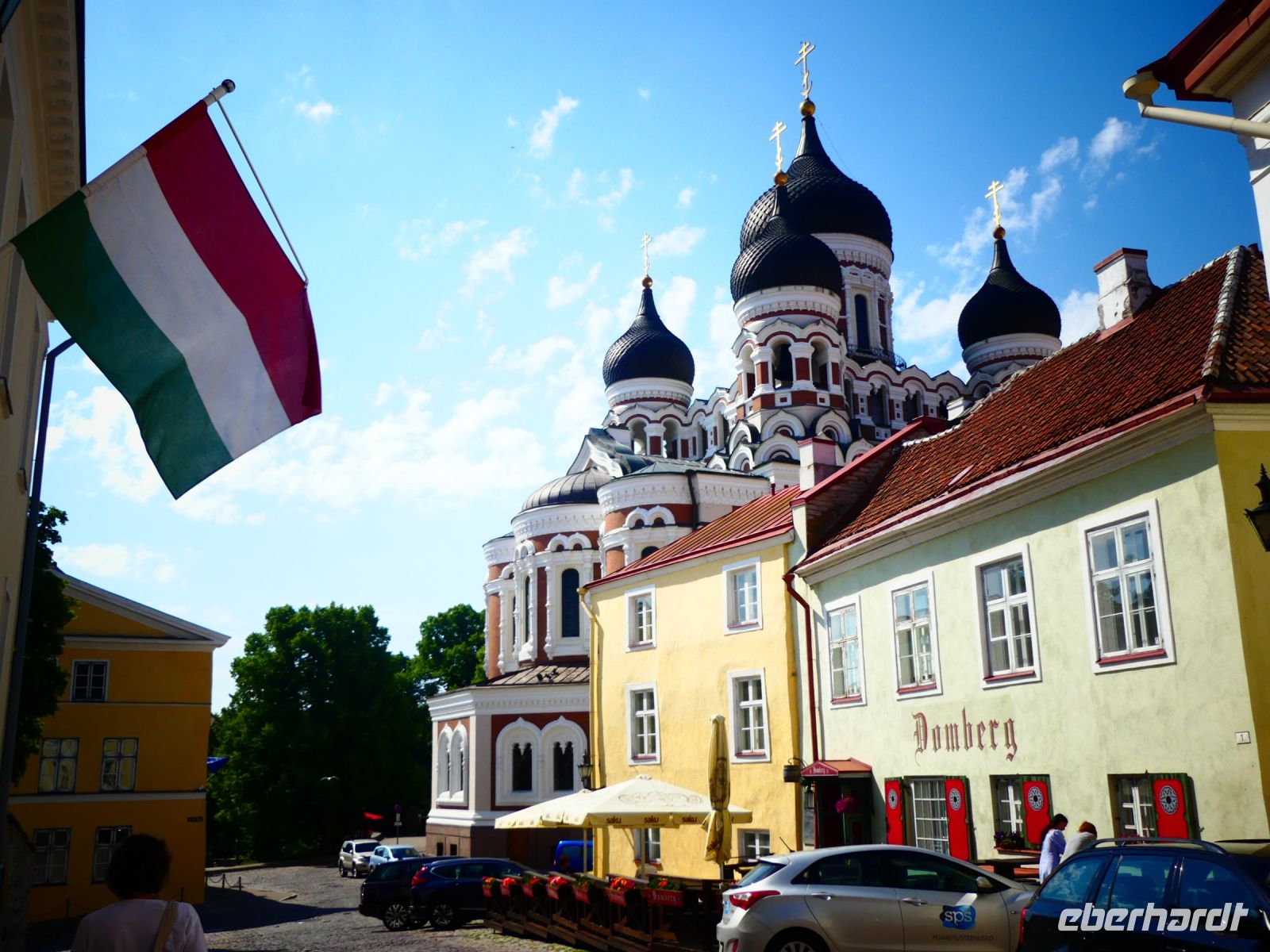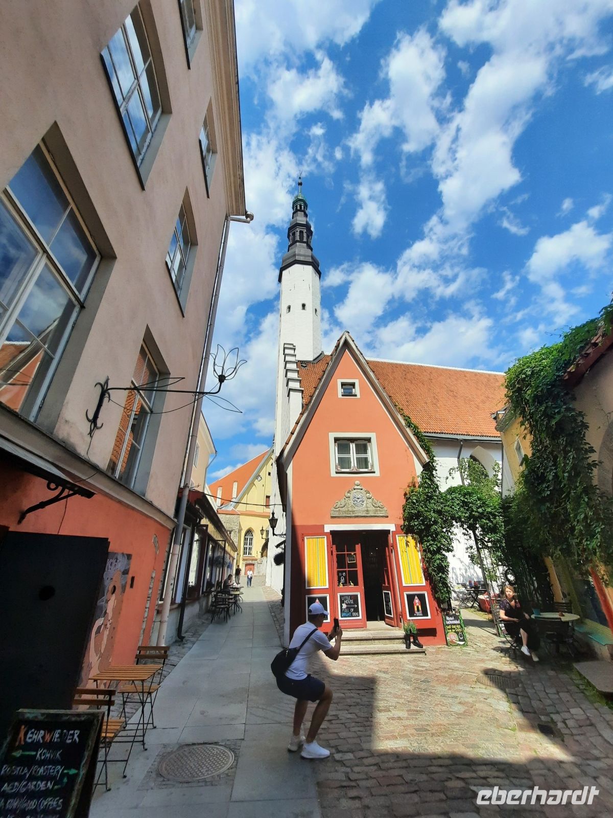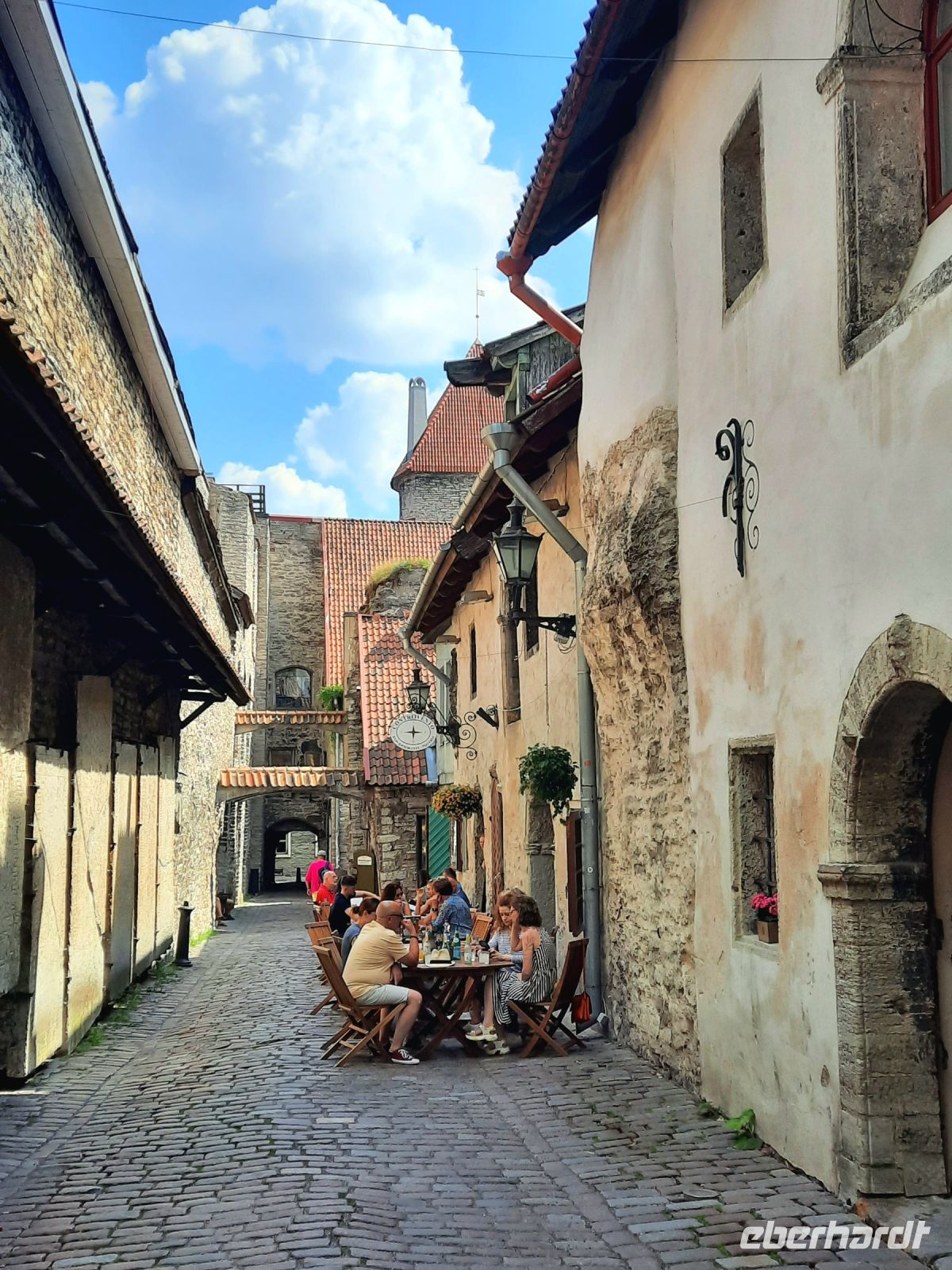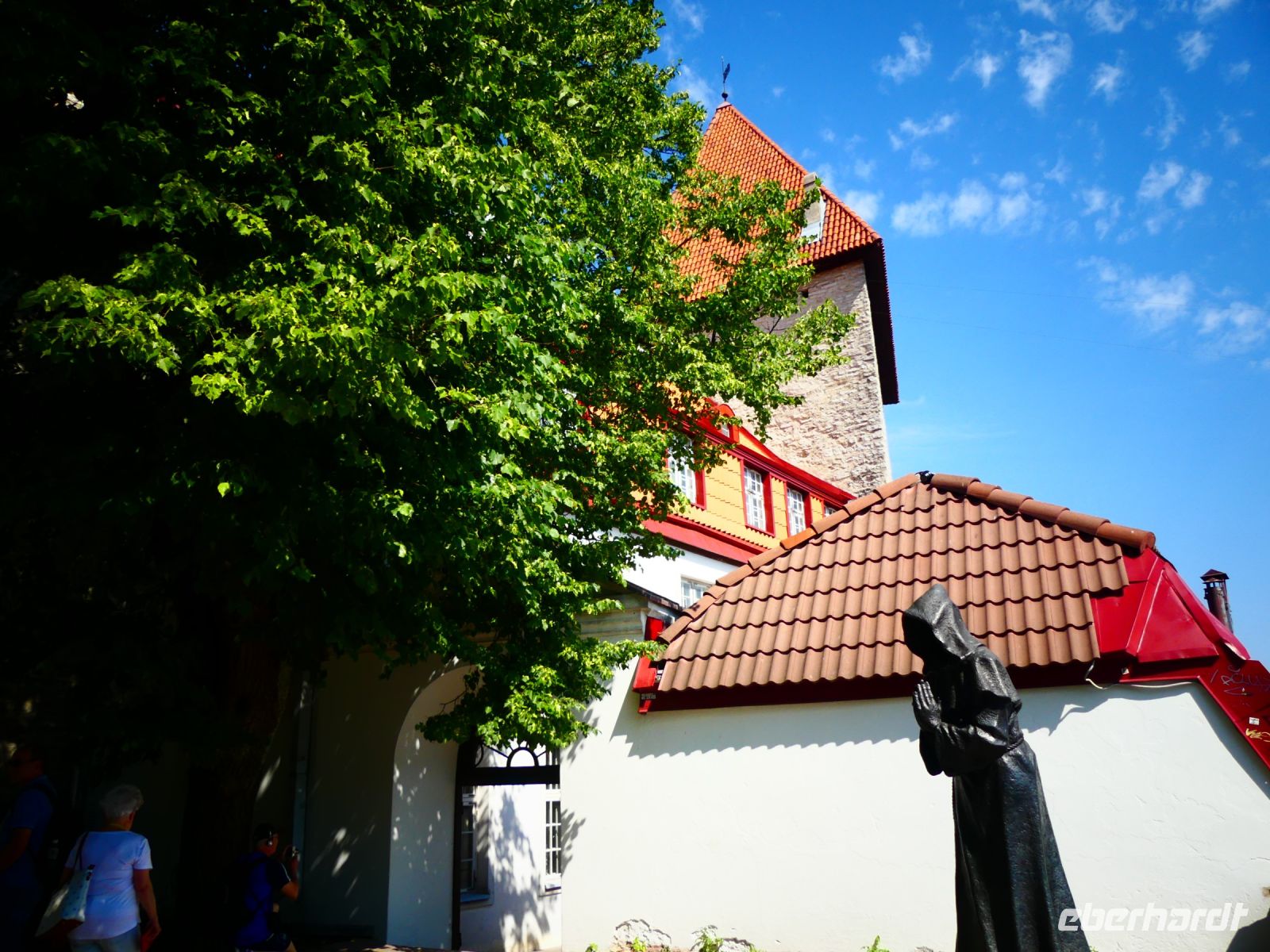 Auf dem Domberg begann unser Rundgang durch Tallinn. Neben dem Domschloss, heute estnisches Parlament ragt der Lange Herrmann hervor. Gegenüber befindet sich die russisch-orthodoxe Alexander-Newski-Kathdrale. Vorbei an der St. Mariengilde und der Domschule (von 1920 bis 1940 deutsches Gymnasium) gelangten wir zum Mariendom, der Hauptkirche der estnischen Lutheraner. Von den Aussichtsterrassen des Domberges genossen wir die wunderbare Ausblicke. Danach spazierten wir auf dem Langen Bein in die Unterstadt hinab. Wir bummelten durch die engen Gassen und Straßen der mittelalterlichen Unterstadt und entdeckten das ein oder andere Kleinod. Die Lange Straße (Pikk) verbindet auch heute noch den Rathausplatz mit dem Hafen. In der Unterstadt sahen wir die Fassade der Großen Gilde, wo sich damals die reichsten Kaufleute der Stadt versammelten. Einige Meter daneben steht ein weiteres sehr schönes Jugendstilhaus. An der Ecke, fast unscheinbar steht die Heiliggeistkirche, in deren Glockenturm die älteste Glocke Estlands läutet. Auf dessen Dach spannt der einstige Hausherr mit Hilfe seines Monokels in die gegenüberliegenden Fenster. Schräg gegenüber liegt das Haus der St. Kanuti-Gilde, an dessen Fassade der heilige Knut (Schutzpatron der Gilde) und Luther zu sehen sind. An der Ecke, fast unscheinbar steht die Heiliggeistkirche, in deren Glockenturm die älteste Glocke Estlands läutet. Daneben führt der schmale Weckengang (früher waren hier viele Backstuben ansässig) zum Rathausplatz. Gleich links ist die alte Ratsapotheke zu sehen, die zu den ältesten in Europa zählt. Mitten auf dem Platz erhebt sich das gotische Rathaus. Auf dem schlanken Turm sitzt der Alte Thomas (Wetterfahne) und aus der Fassade schauen bedrohlich aussehende Drachenköpfe (Speier) heraus. Auf dem Rathausplatz endete unser Rundgang. Alle Gäste freuten sich, den sonnigen Nachmittag für individuelle Erkundungen zu nutzen. In den zahlreichen Cafes und Restaurants machten viele erst einmal eine wohlverdiente Pause, um die unzähligen, neu gewonnenen Eindrücke zu verarbeiten, denn so viel Mittelalter und historisches Pflaster strengt an. In Tallinn lohnt sich immer wieder ein Blick in die Hinterhöfe und Seitengassen, wo sich versteckt, kleine gemütliche Cafes und architektonische Kleinode befinden. Das letzte Abendessen wurde uns im Restaurant Maikrahv (Maigraf) am Altstädter Marktplatz serviert.