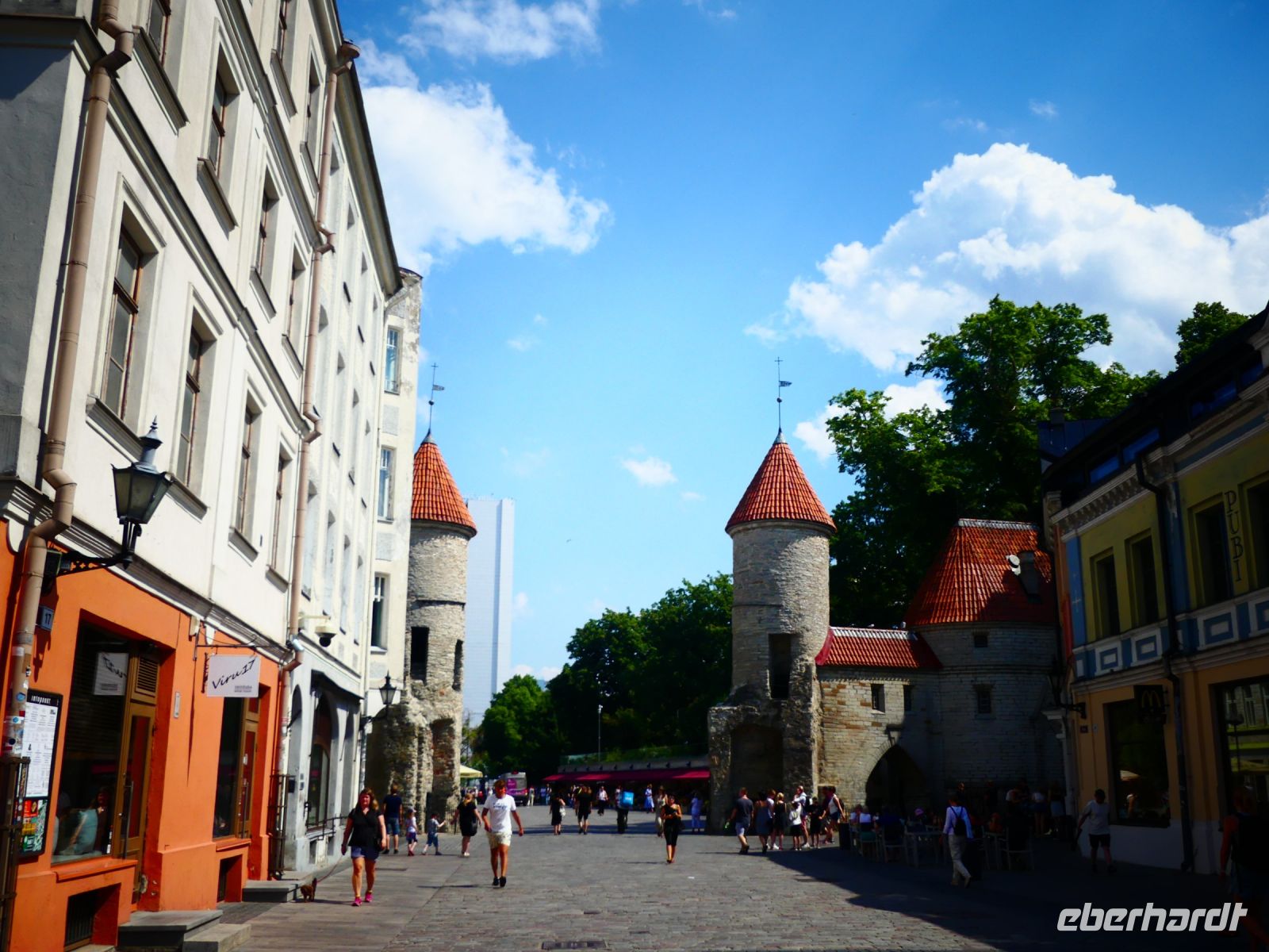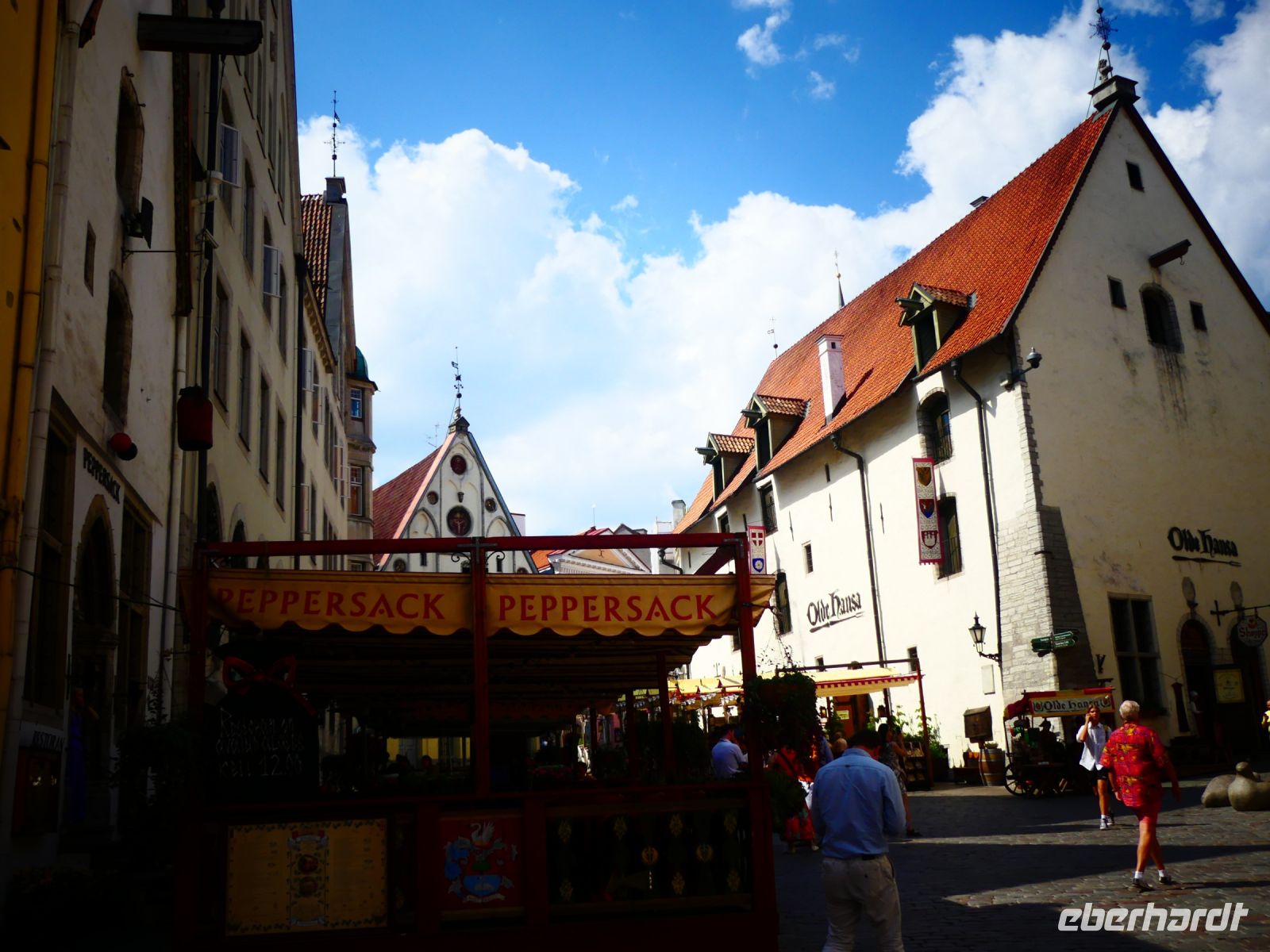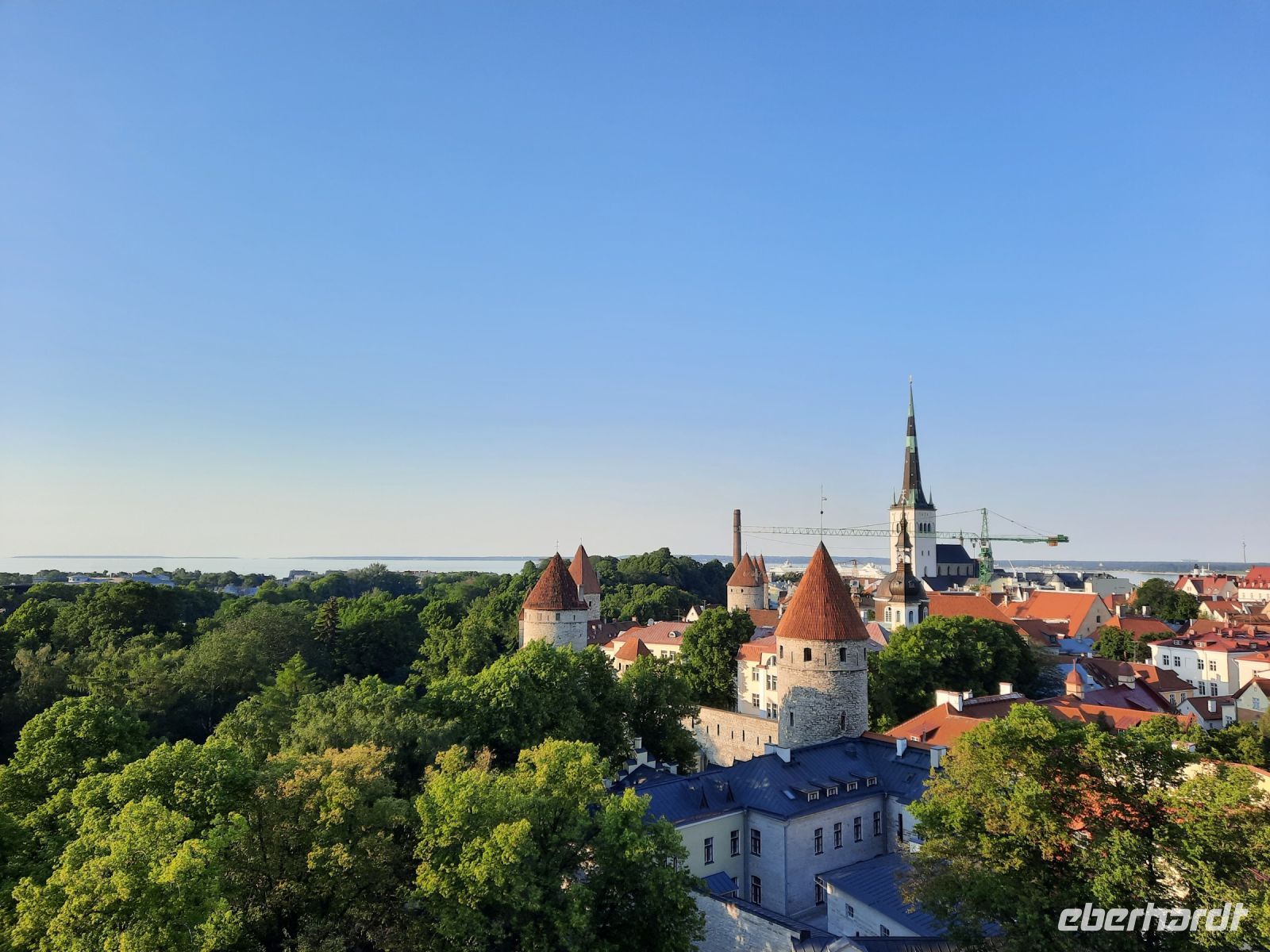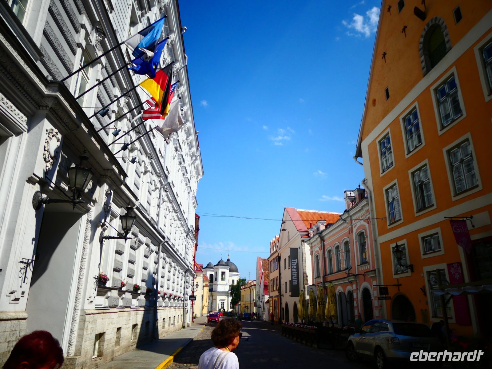 Auf dem Domberg begann unser Rundgang durch Tallinn. Neben dem Domschloss, heute estnisches Parlament ragt der Lange Herrmann hervor. Gegenüber befindet sich die russisch-orthodoxe Alexander-Newski-Kathdrale. Vorbei an der St. Mariengilde und der Domschule (von 1920 bis 1940 deutsches Gymnasium) gelangten wir zum Mariendom, der Hauptkirche der estnischen Lutheraner. Von den Aussichtsterrassen des Domberges genossen wir die wunderbare Ausblicke. Danach spazierten wir auf dem Langen Bein in die Unterstadt hinab. Wir bummelten durch die engen Gassen und Straßen der mittelalterlichen Unterstadt und entdeckten das ein oder andere Kleinod. Die Lange Straße (Pikk) verbindet auch heute noch den Rathausplatz mit dem Hafen. In der Unterstadt sahen wir die Fassade der Großen Gilde, wo sich damals die reichsten Kaufleute der Stadt versammelten. Einige Meter daneben steht ein weiteres sehr schönes Jugendstilhaus. An der Ecke, fast unscheinbar steht die Heiliggeistkirche, in deren Glockenturm die älteste Glocke Estlands läutet. Auf dessen Dach spannt der einstige Hausherr mit Hilfe seines Monokels in die gegenüberliegenden Fenster. Schräg gegenüber liegt das Haus der St. Kanuti-Gilde, an dessen Fassade der heilige Knut (Schutzpatron der Gilde) und Luther zu sehen sind. An der Ecke, fast unscheinbar steht die Heiliggeistkirche, in deren Glockenturm die älteste Glocke Estlands läutet. Daneben führt der schmale Weckengang (früher waren hier viele Backstuben ansässig) zum Rathausplatz. Gleich links ist die alte Ratsapotheke zu sehen, die zu den ältesten in Europa zählt. Mitten auf dem Platz erhebt sich das gotische Rathaus. Auf dem schlanken Turm sitzt der Alte Thomas (Wetterfahne) und aus der Fassade schauen bedrohlich aussehende Drachenköpfe (Speier) heraus. Auf dem Rathausplatz endete unser Rundgang. Alle Gäste freuten sich, den sonnigen Nachmittag für individuelle Erkundungen zu nutzen. In den zahlreichen Cafes und Restaurants machten viele erst einmal eine wohlverdiente Pause, um die unzähligen, neu gewonnenen Eindrücke zu verarbeiten, denn so viel Mittelalter und historisches Pflaster strengt an. In Tallinn lohnt sich immer wieder ein Blick in die Hinterhöfe und Seitengassen, wo sich versteckt, kleine gemütliche Cafes und architektonische Kleinode befinden. Das letzte Abendessen wurde uns im Restaurant Maikrahv (Maigraf) am Altstädter Marktplatz serviert.