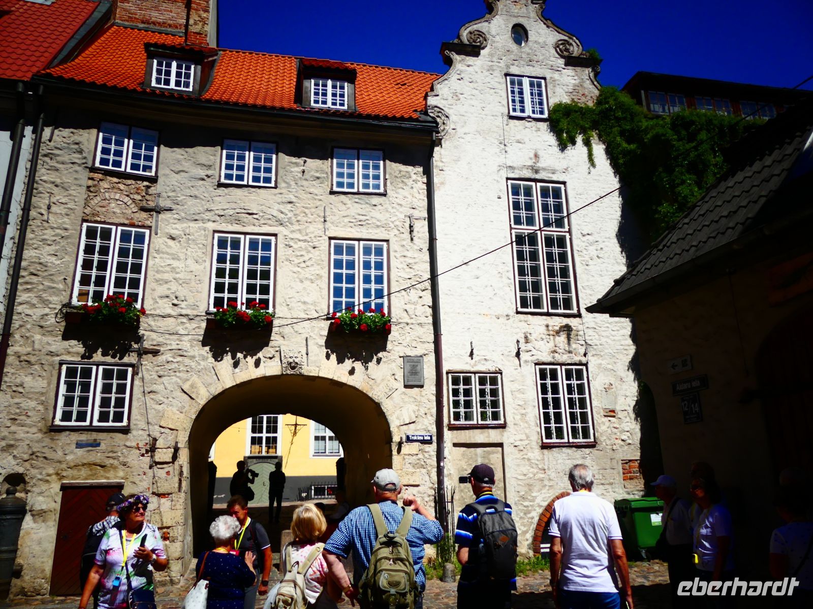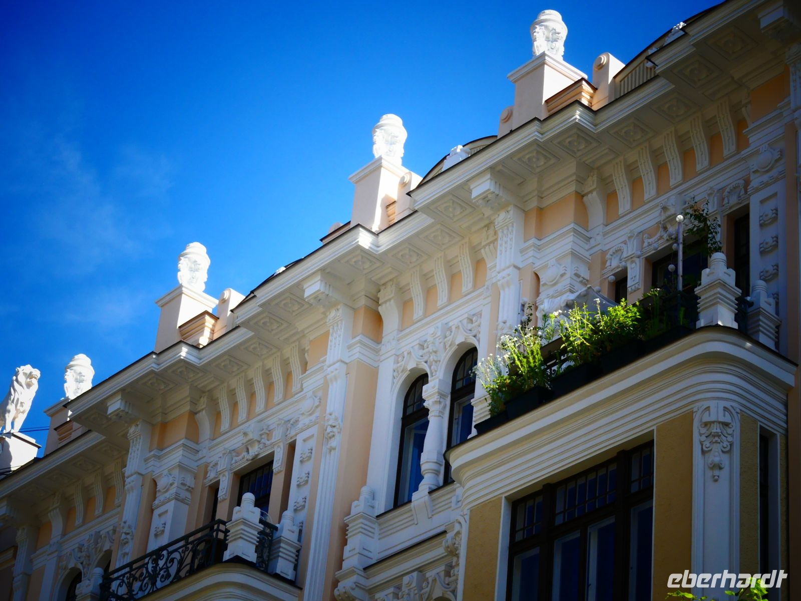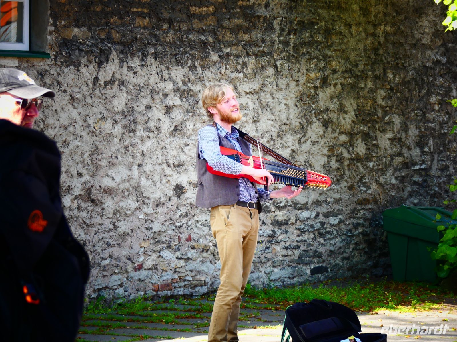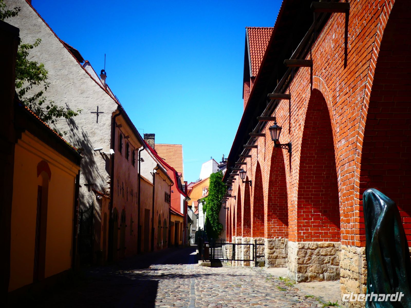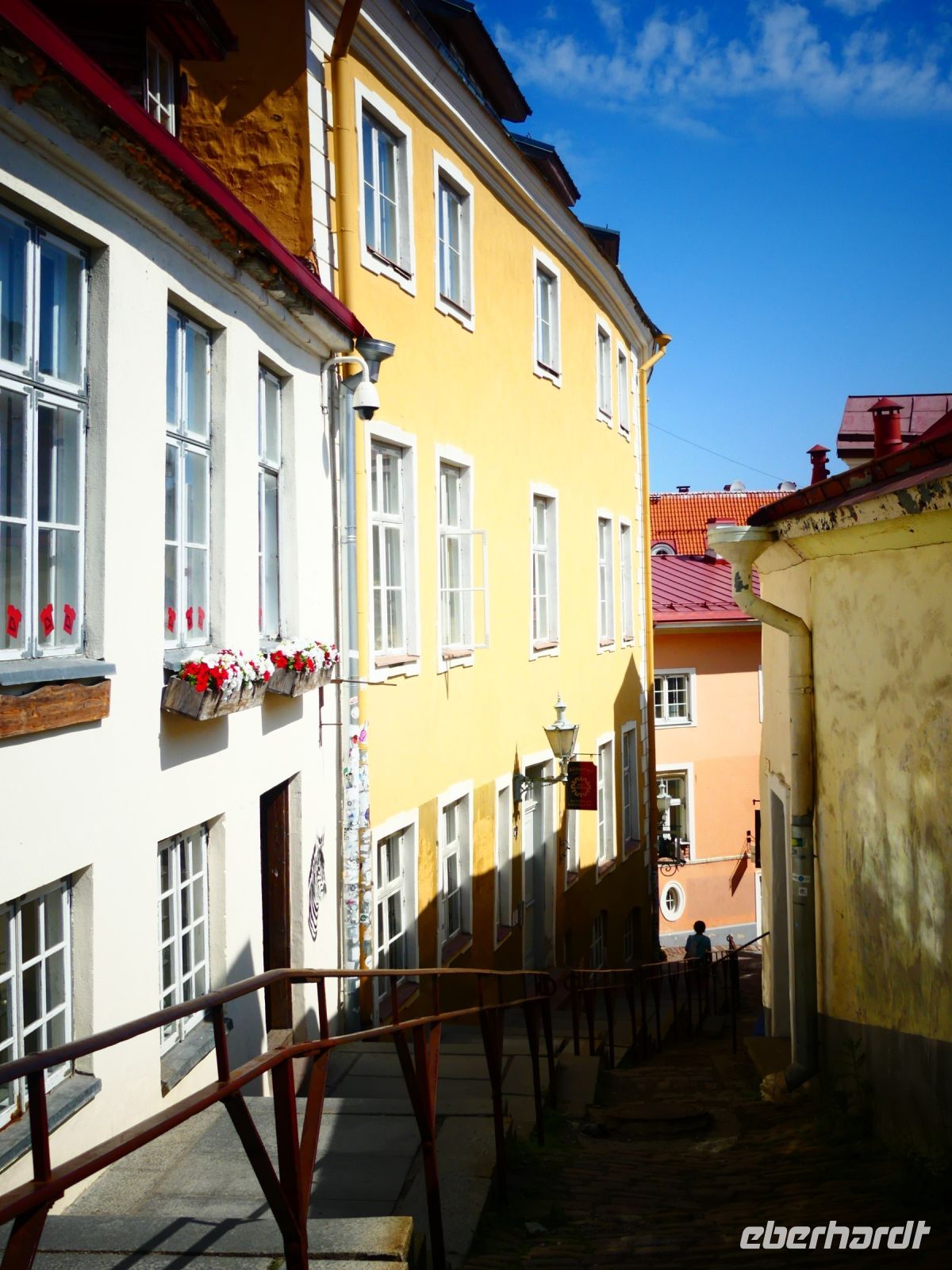 Auf dem Domberg begann unser Rundgang durch Tallinn. Neben dem Domschloss, heute estnisches Parlament ragt der Lange Herrmann hervor. Gegenüber befindet sich die russisch-orthodoxe Alexander-Newski-Kathdrale. Vorbei an der St. Mariengilde und der Domschule (von 1920 bis 1940 deutsches Gymnasium) gelangten wir zum Mariendom, der Hauptkirche der estnischen Lutheraner. Von den Aussichtsterrassen des Domberges genossen wir die wunderbare Ausblicke. Danach spazierten wir auf dem Langen Bein in die Unterstadt hinab. Wir bummelten durch die engen Gassen und Straßen der mittelalterlichen Unterstadt und entdeckten das ein oder andere Kleinod. Die Lange Straße (Pikk) verbindet auch heute noch den Rathausplatz mit dem Hafen. In der Unterstadt sahen wir die Fassade der Großen Gilde, wo sich damals die reichsten Kaufleute der Stadt versammelten. Einige Meter daneben steht ein weiteres sehr schönes Jugendstilhaus. An der Ecke, fast unscheinbar steht die Heiliggeistkirche, in deren Glockenturm die älteste Glocke Estlands läutet. Auf dessen Dach spannt der einstige Hausherr mit Hilfe seines Monokels in die gegenüberliegenden Fenster. Schräg gegenüber liegt das Haus der St. Kanuti-Gilde, an dessen Fassade der heilige Knut (Schutzpatron der Gilde) und Luther zu sehen sind. An der Ecke, fast unscheinbar steht die Heiliggeistkirche, in deren Glockenturm die älteste Glocke Estlands läutet. Daneben führt der schmale Weckengang (früher waren hier viele Backstuben ansässig) zum Rathausplatz. Gleich links ist die alte Ratsapotheke zu sehen, die zu den ältesten in Europa zählt. Mitten auf dem Platz erhebt sich das gotische Rathaus. Auf dem schlanken Turm sitzt der Alte Thomas (Wetterfahne) und aus der Fassade schauen bedrohlich aussehende Drachenköpfe (Speier) heraus. Auf dem Rathausplatz endete unser Rundgang. Alle Gäste freuten sich, den sonnigen Nachmittag für individuelle Erkundungen zu nutzen. In den zahlreichen Cafes und Restaurants machten viele erst einmal eine wohlverdiente Pause, um die unzähligen, neu gewonnenen Eindrücke zu verarbeiten, denn so viel Mittelalter und historisches Pflaster strengt an. In Tallinn lohnt sich immer wieder ein Blick in die Hinterhöfe und Seitengassen, wo sich versteckt, kleine gemütliche Cafes und architektonische Kleinode befinden. Das letzte Abendessen wurde uns im Restaurant Maikrahv (Maigraf) am Altstädter Marktplatz serviert.