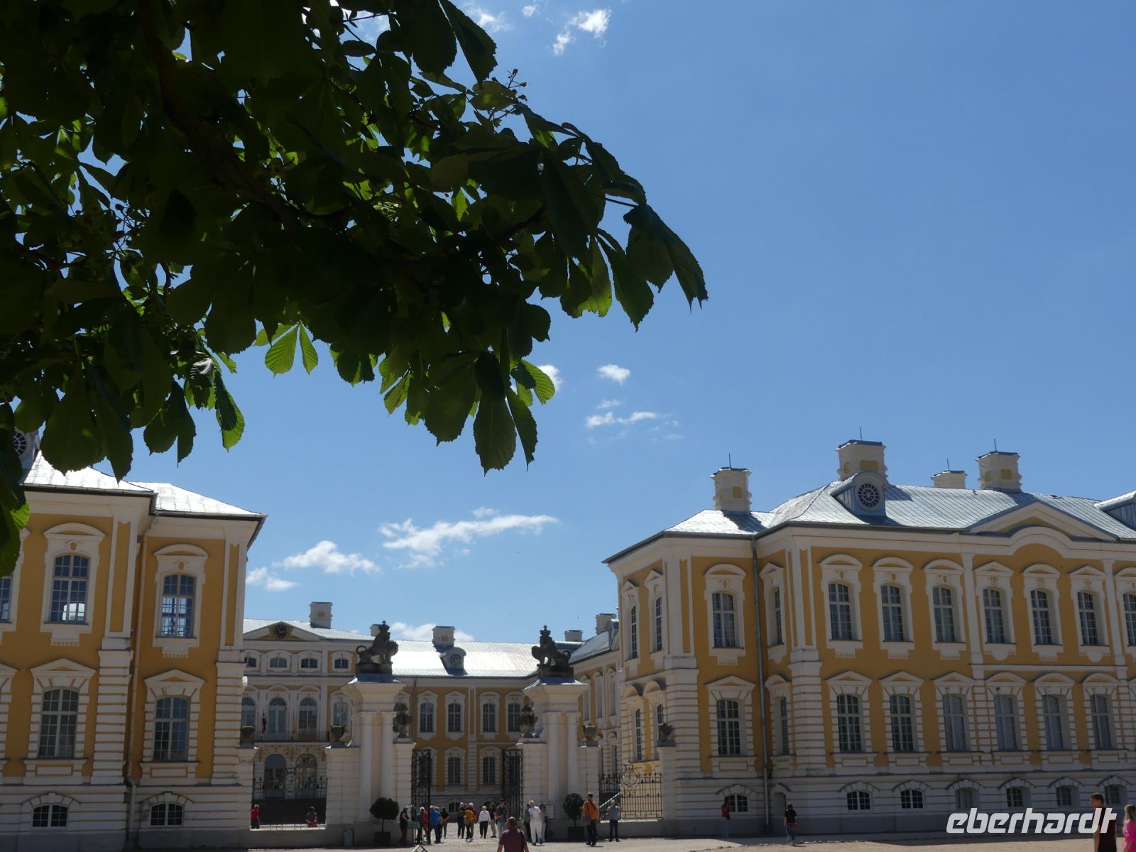 Heute verabschiedeten wir uns von Klaipeda und starteten zur Weiterfahrt nach Lettland. Unterwegs besuchten wir den Berg der Kreuze bei Siauliai (Schaulen) nahe der Grenze zu Lettland. Der Berg der Kreuze (eigentlich sind es nur kleine Hügel) ist der bedeutendste Wallfahrtsort Litauens. Hier reiht sich ein gigantisches Meer von Kreuzen aus Holz, Metall und Plastik aneinander. Der Platz reicht schon lang nicht mehr aus. Dieser Berg steht auch für Unabhängigkeitsstreben der Litauer. In Gedenken an die Opfer des Aufstandes gegen den Zaren im 19. Jhd. wurden die ersten Kreuze aufgestellt. In der Sowjetzeit wurde der Berg niedergewalzt, dennoch standen am nächsten Tag die ersten Kreuze wieder da. Jeden Tag werden es mehr Kreuze, über 6.500 sollen es sein. Wir glauben das mal, nachgezählt haben wir das nicht. Unsere Mittagspause verbrachten wir in einem idyllischen Gasthof. Am Nachmittag waren wir auf den Spuren von Rastrelli unterwegs und besuchten das Barockschloss Rundale (Ruhental). Dort wartete bereits unsere "Schlossherrin", die uns energisch und kraftvoll durch die Schlossanlage führte;-). 1735 wurde auf Wunsch von Zarin Iwanowna der Grundstein für den Bau des Schlosses gelegt. Das 1767 fertiggestellte Schloss mit dem wunderschön angelegten Park und dem Rosengarten sollte als Sommerresidenz für Herzog Ernst Johan Biron dienen. Als Architekt wurde Rastrelli bestimmt, nach dessen Plänen auch das Winterpalais in Sankt Petersburg entstand. Dieser Palast wird auch als lettisches Versailles bezeichnet, ist aber kleiner als das französische Original. Wir erfuhren, dass das Schloss im 1. Weltkrieg fast völlig zerstört, mehrfach geplündert und als Kornspeicher und Schule genutzt wurde. Später wurde es restauriert, die Arbeiten halten bis heute an. Am späten Nachmittag erreichten wir Riga und bezogen unsere Zimmer im modernen Hotel Radisson Blu Latvia im Zentrum der lettischen Hauptstadt. Nach dem leckeren Abenbuffet unternahmen einige Gäste mit Reisebegleitung Annett einen ersten abendlichen Bummel durch die Rigaer Altstadt.