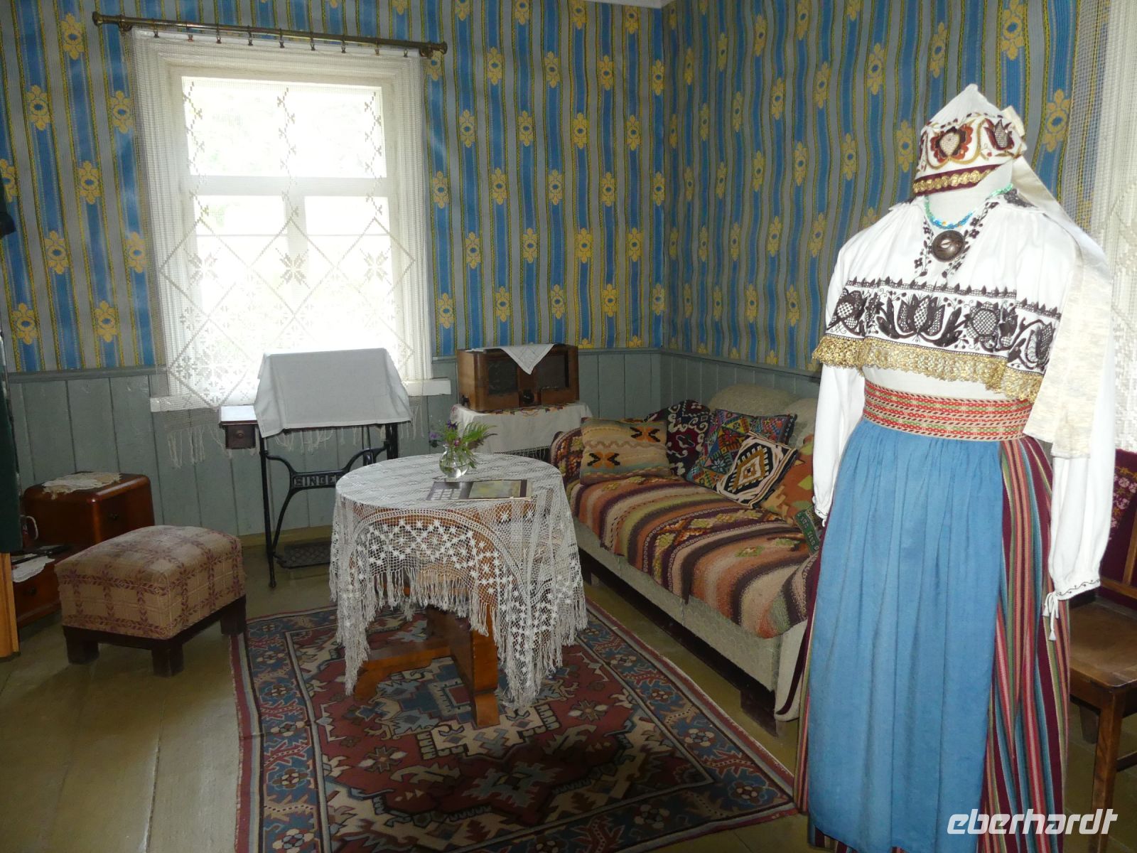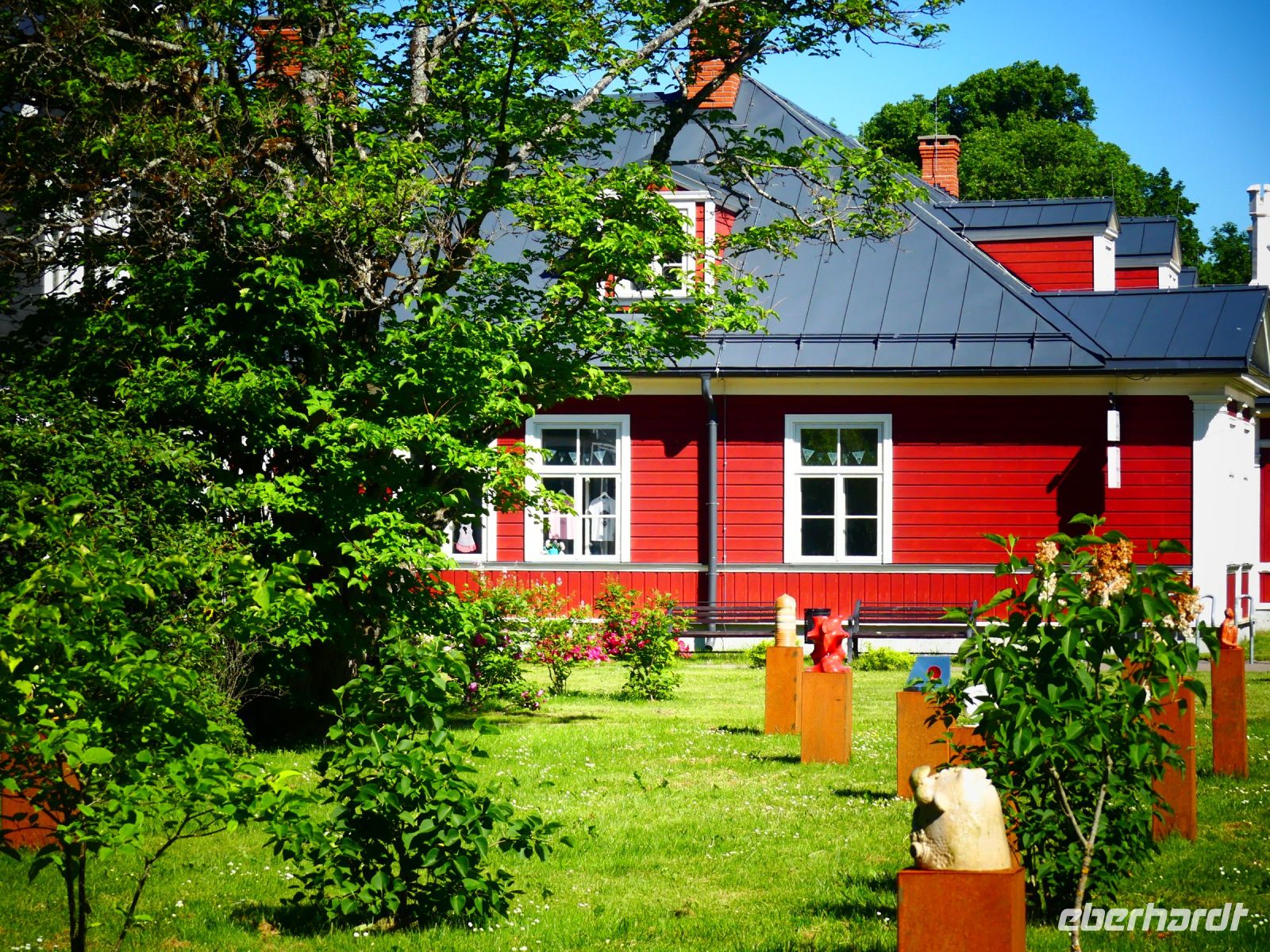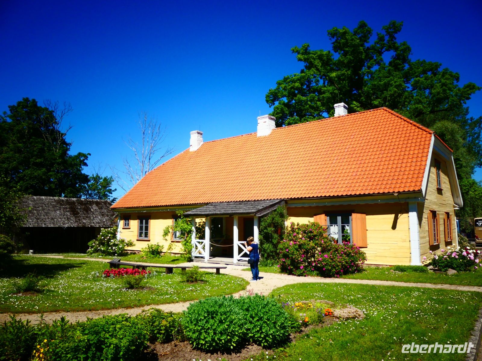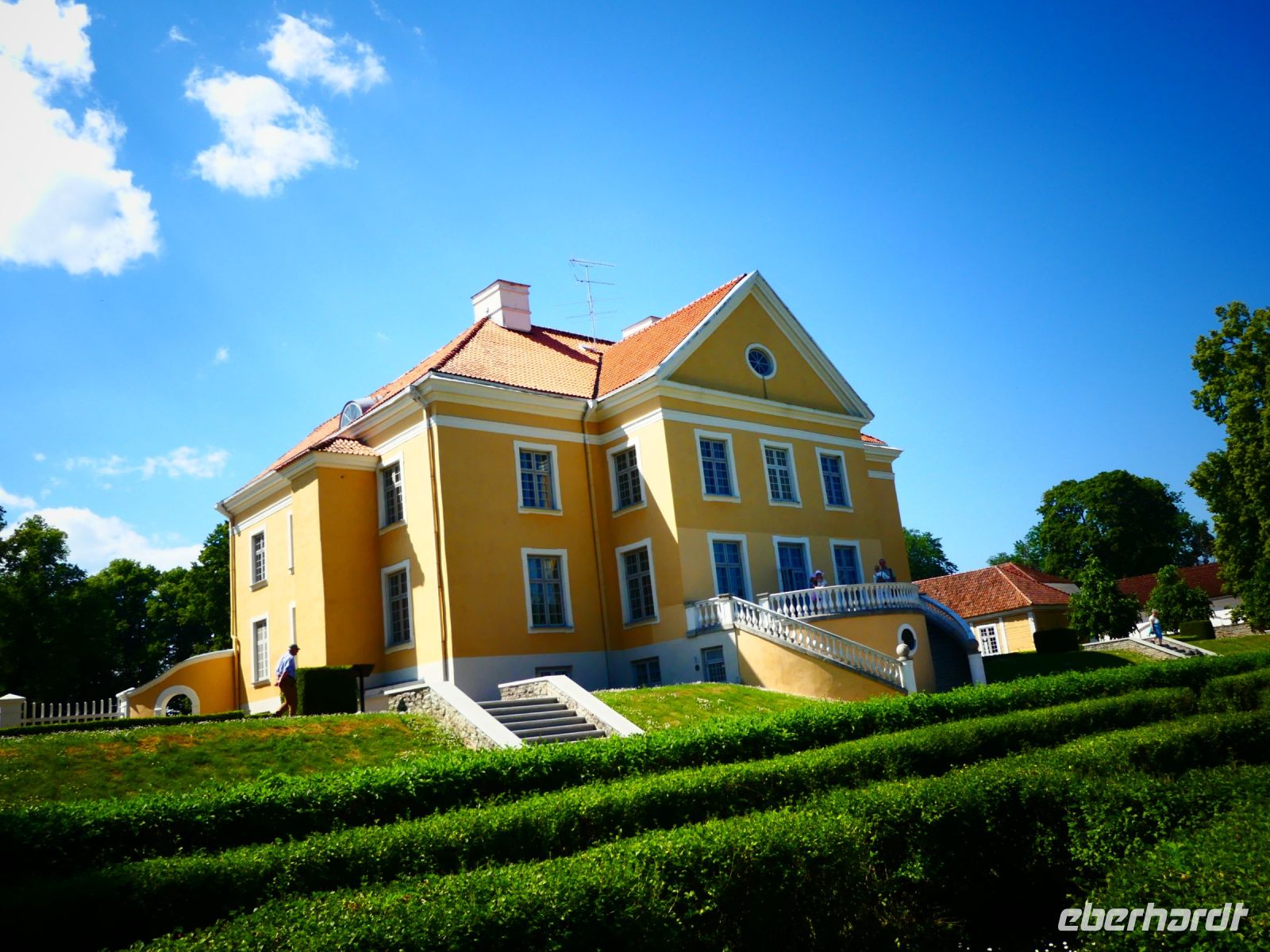 Auf dem Weg nach Tallinn besuchten wir noch den Lahemaa Nationalpark. Der waldreiche Nationalpark mit Sümpfen, Mooren und vielen Wanderwegen befindet sich östlich von Tallinn an der Küste. Im Nationalpark-Zentrum schauten wir einen sehr informativen Film über diese Region. Anschließend besichtigten wir den angrenzenden Gutshof Palmse, welcher über Jahrhunderte der deutsch-baltischen Adelsfamilie von der Pahlen gehörte. Heute wird es als Museum und Hotel genutzt. Wir besichtigten das Herrenhaus, wo in den stilvoll eingerichteten Räumen altes Mobiliar, Fotos und Gemälde aus längst vergangenen Zeiten und eine nostalgische Stereoanlage zu sehen und zu hören sind. Im Ankleidezimmer konnte, wer wollte, der damalige Kleiderstil am eigenen Leibe ausprobiert werden. Ein individueller Spaziergang durch das gepflegte Anwesen mit seiner großzügigen Parkanlage, Teich mit Badehaus und Orangerie rundete den Besuch ab. Bei einem Fotostopp konten wir noch das Gutsanwesen Sagadi anschauen. Im kleinen Fischerdörfchen Altja unternahmen wir einen Spaziergang zur Küste an. Vorbei an wunderschönen Holzkaten mit blumigen Vorgärten liefen wir bis zur wildromantischen Küste. Wir sahen die alten Bootsschuppen und viele große und kleine Steine - Estland ist wirklich steinreich! Am Nachmittag erreichten wir die estnische Metropole Tallinn am finnischen Meerbusen. Nach dem Abendessen im Hotel bummelten einige Gäste mit Annett durch die Gassen der Altstadt.