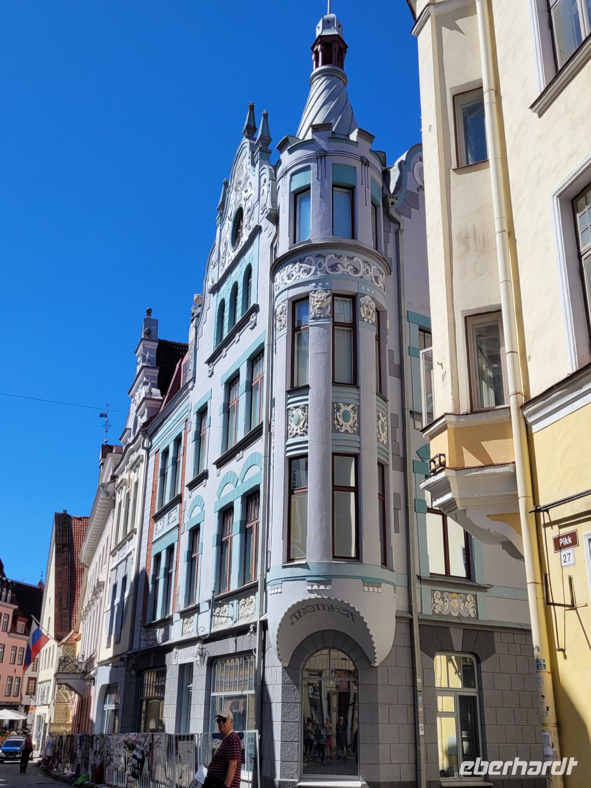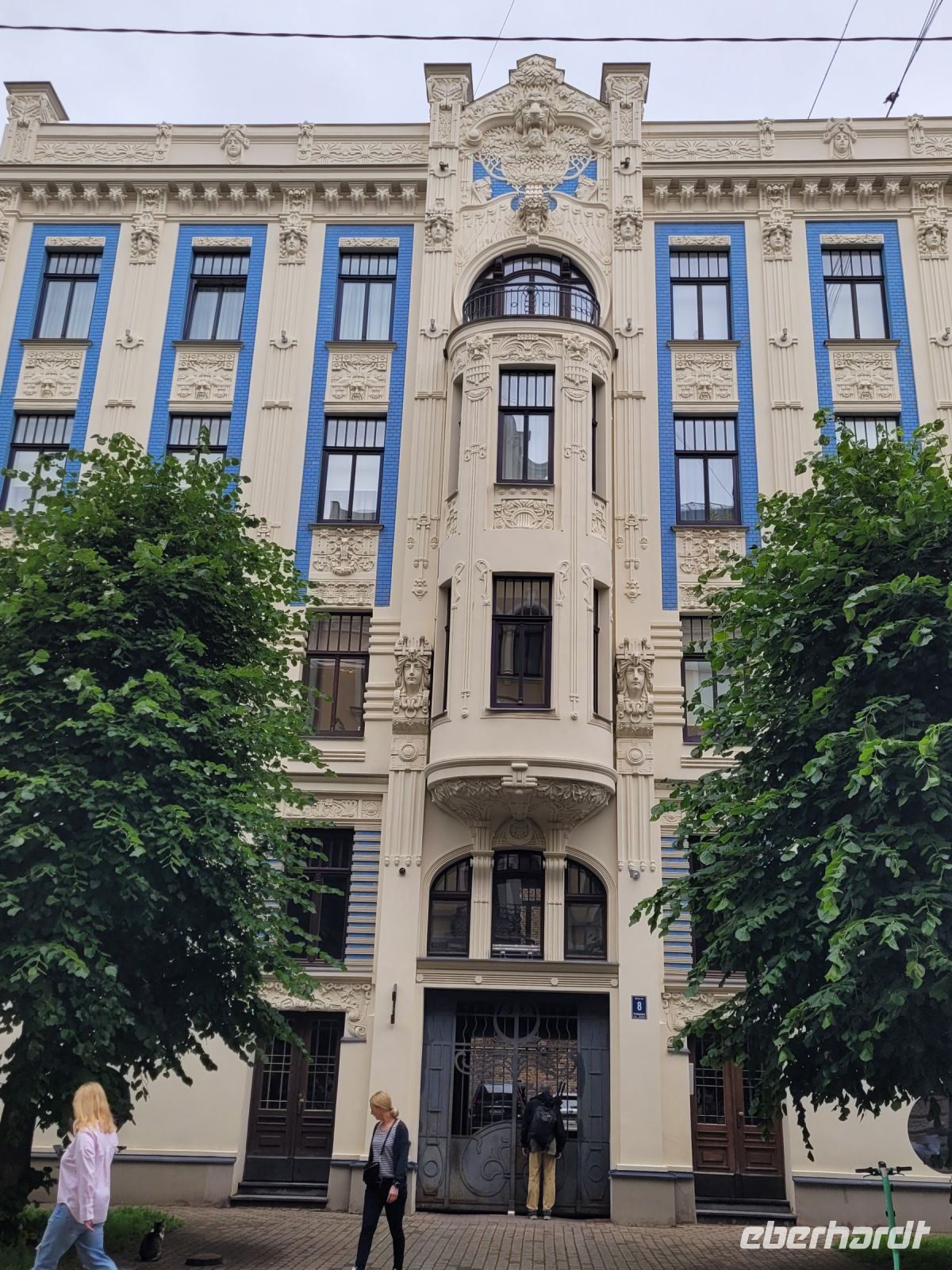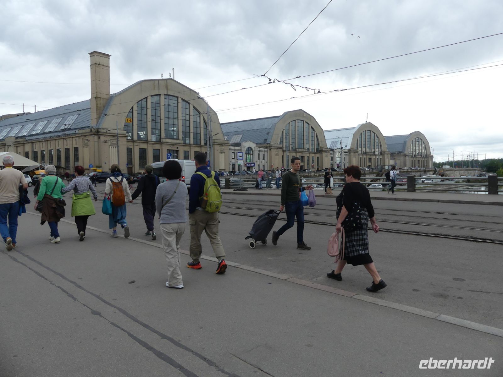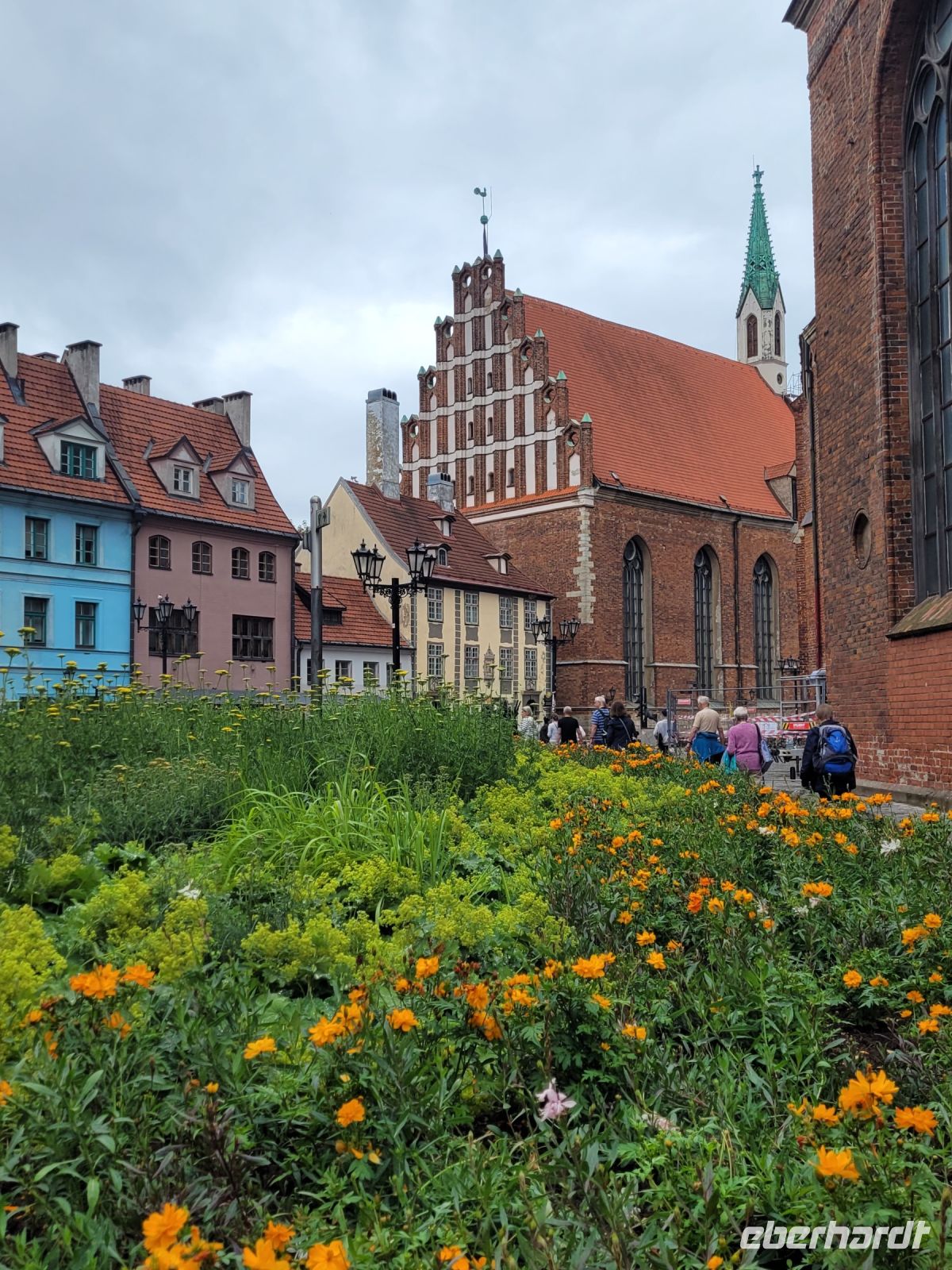 Bei unserem Spaziergang durch „Paris des Nordens" an der Okawa gelegen, ist der Himmel nach einem Gewitterregen bewölkt. Mit Schirmen bewaffnet machen wir uns auf, ins Viertel der prächtigen Jugendstilhäuser. Die alte Hansestadt ist berühmt für diese Bauten und ihre großzügige Anlage sowie für die gut erhaltene Innenstadt. Weitere Sehenswürdigkeiten sind die Schwarzhäupterhäuser, der Dom, das Rathaus und Marktplatz mit der Rolandstatur, wunderschöne Gässchen, Fachwerkhäuser, Markthallen, Oper, gepflegte Parkanlagen mit „Schlösserbrücken", den drei Brüdern, den Katzenhaus (Gilde), der Börse, dem Pulverturm mit der Stadtmauer und und und. In der Freizeit erkunden wir individuell die Stadt, lassen sie auf uns wirken und die Seele baumeln. Wer möchte besucht die riesigen Markthallen mit dem lustigen Treiben oder verschafft sich einen Rundblick vom Dom.