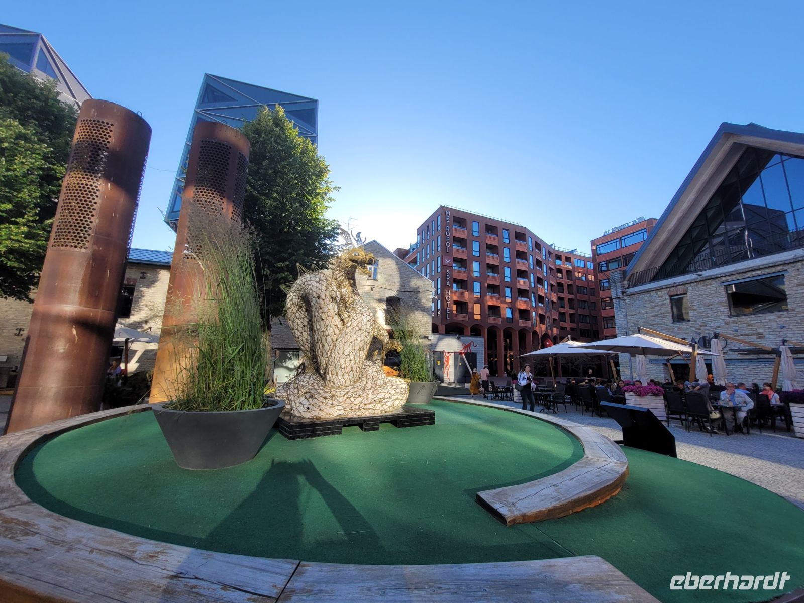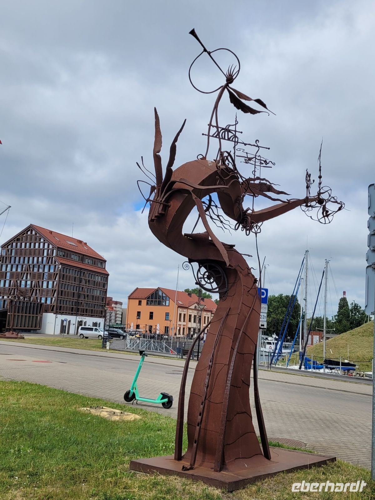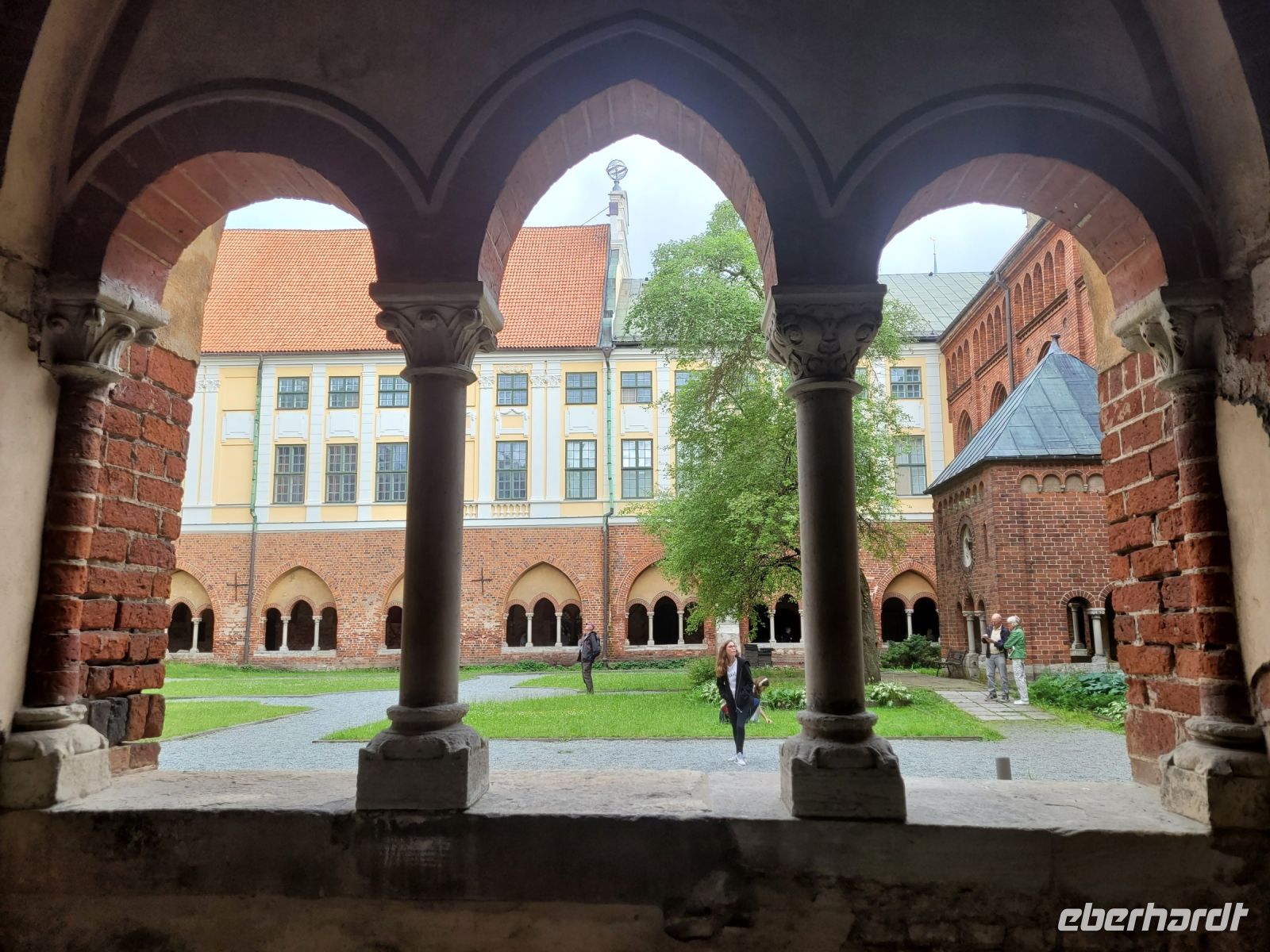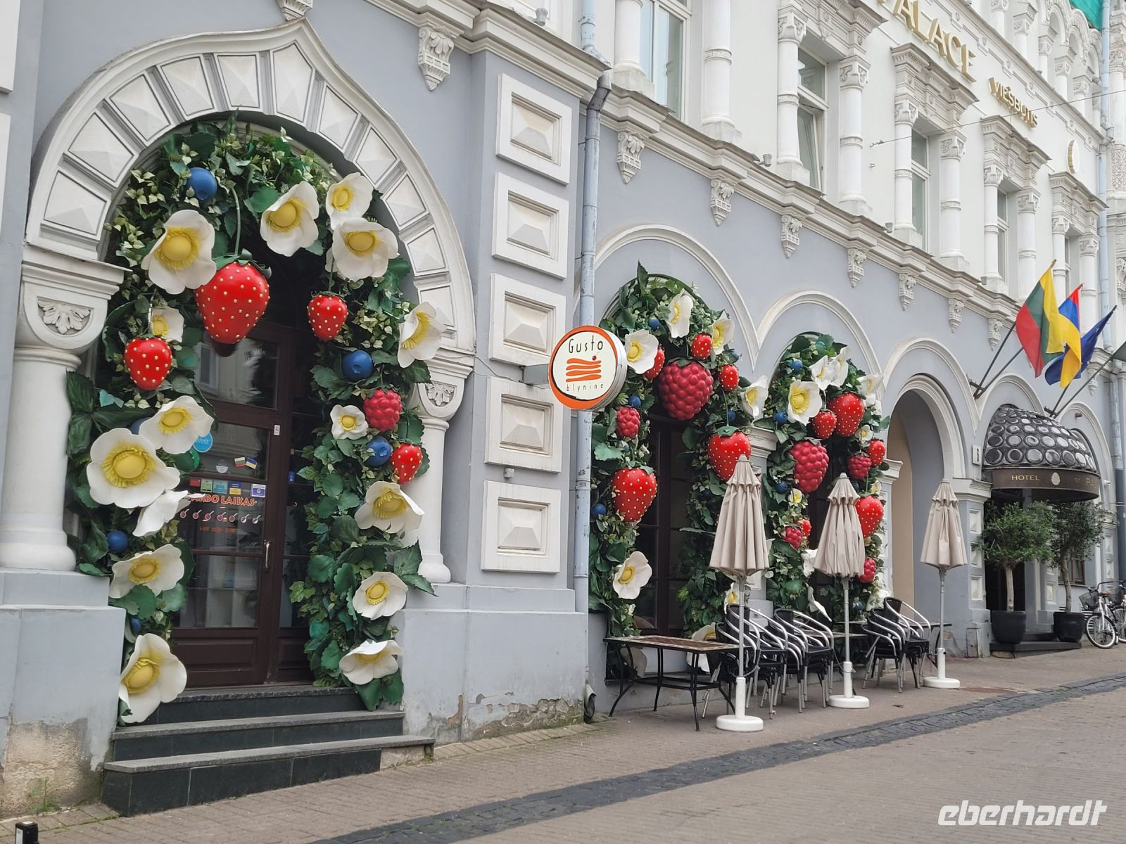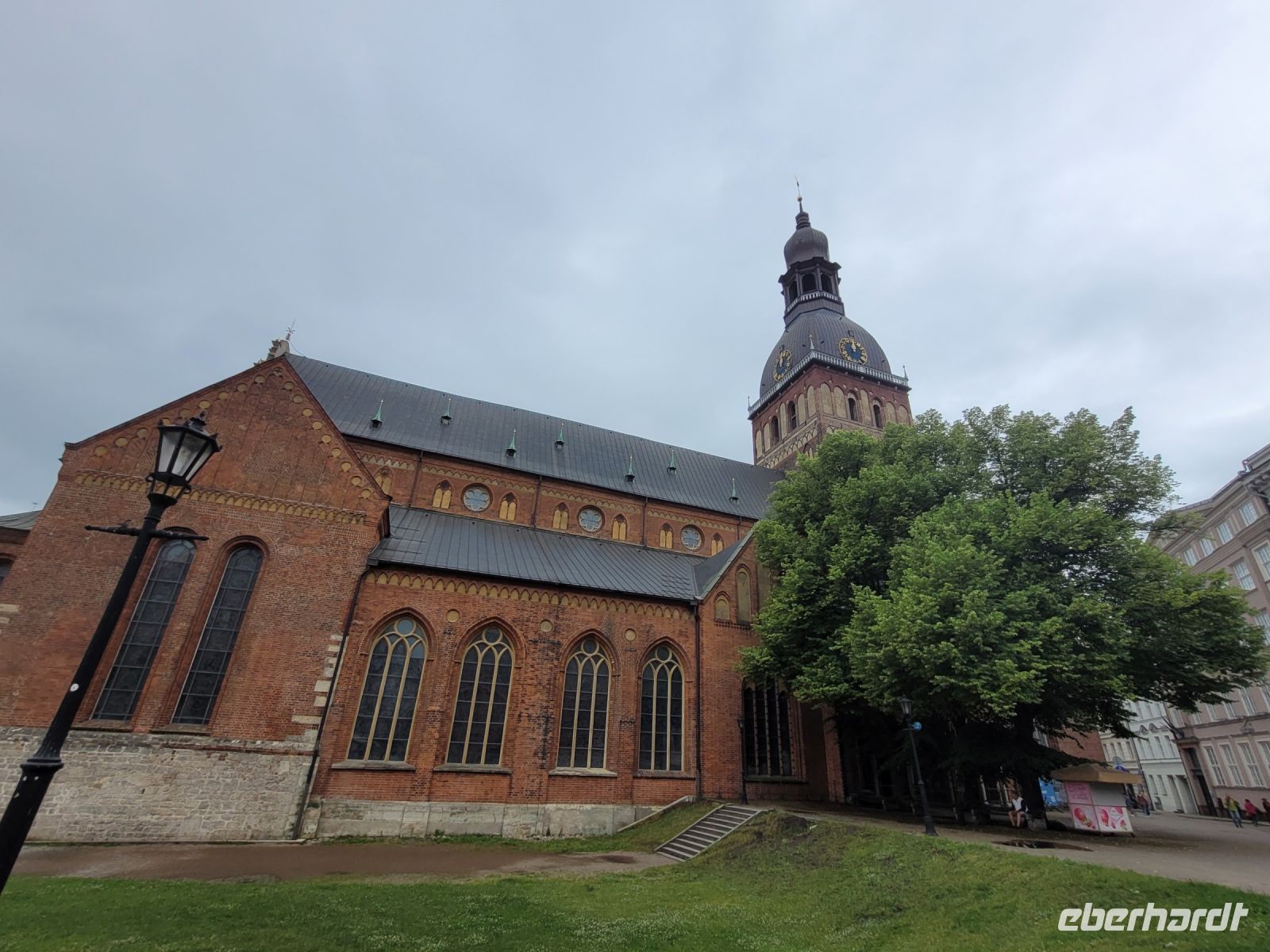 Bei unserem Spaziergang durch „Paris des Nordens" an der Okawa gelegen, ist der Himmel nach einem Gewitterregen bewölkt. Mit Schirmen bewaffnet machen wir uns auf, ins Viertel der prächtigen Jugendstilhäuser. Die alte Hansestadt ist berühmt für diese Bauten und ihre großzügige Anlage sowie für die gut erhaltene Innenstadt. Weitere Sehenswürdigkeiten sind die Schwarzhäupterhäuser, der Dom, das Rathaus und Marktplatz mit der Rolandstatur, wunderschöne Gässchen, Fachwerkhäuser, Markthallen, Oper, gepflegte Parkanlagen mit „Schlösserbrücken", den drei Brüdern, den Katzenhaus (Gilde), der Börse, dem Pulverturm mit der Stadtmauer und und und. In der Freizeit erkunden wir individuell die Stadt, lassen sie auf uns wirken und die Seele baumeln. Wer möchte besucht die riesigen Markthallen mit dem lustigen Treiben oder verschafft sich einen Rundblick vom Dom.
