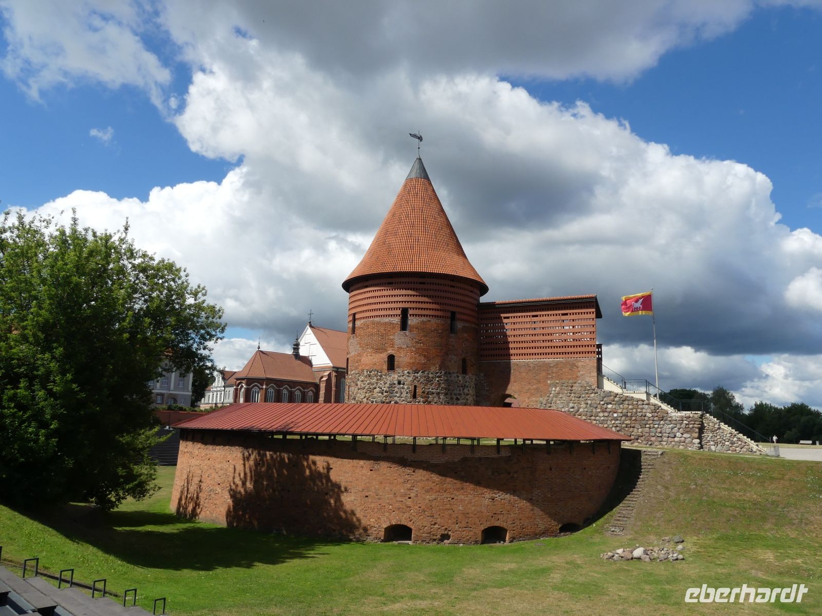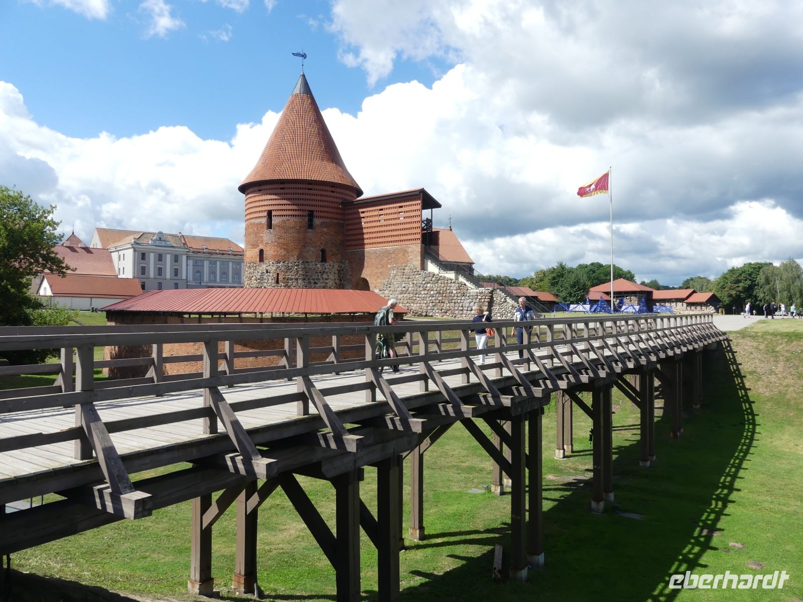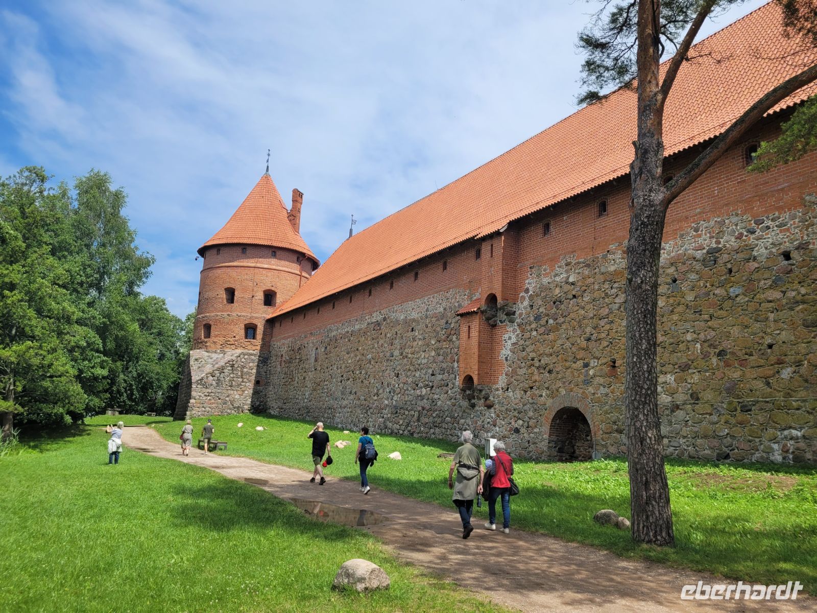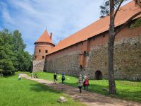Weiter ging die Fahrt zum Wasserschloss Trakai, ca. 30 km entfernt. 1414 hat der flämische Ritter Ghillbert de Lanois in seinen Reisebeschreibungen die Burg folgenderweise charakterisiert: „die Burg stehe in der Mitte vom See, einen Kanonenschuss von der alten Burg. Sie sei ein Mauerwerk, gebaut nach französischer Tradition. Die Burg stand in 220 m Entfernung vom Ufer". Auf einer Insel des Galve - Sees befindet sich die einzigartige Inselburg mit einem der meist besuchten Museen in Litauen. Nach der Zerstörung Ende des 14. Jahrhunderts war sie lange eine Ruine.