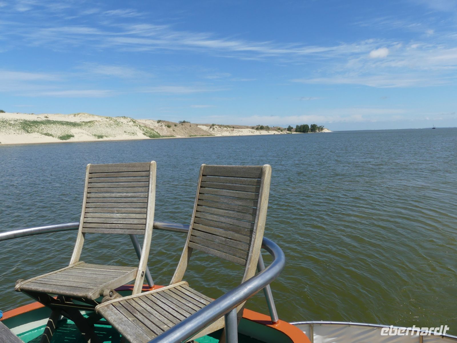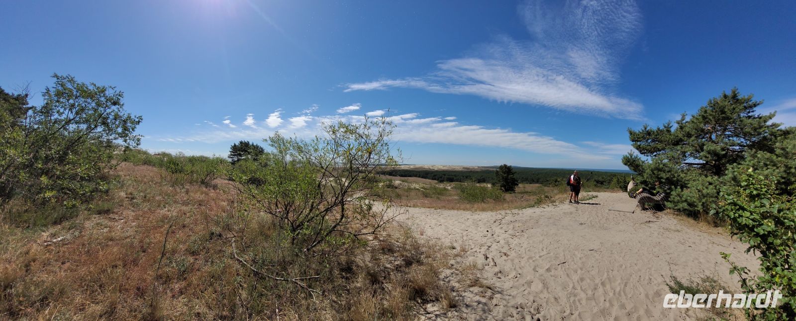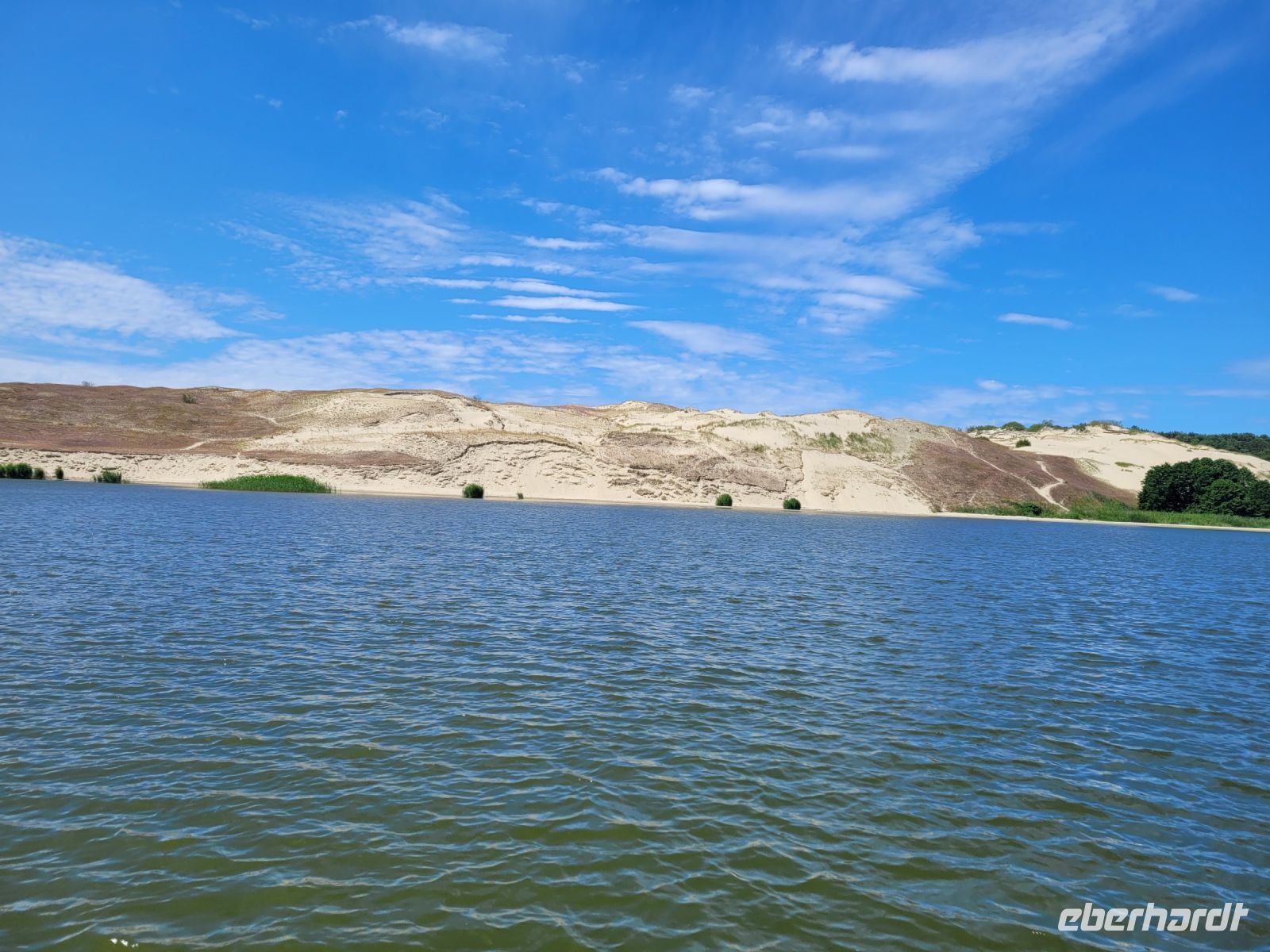 Bei leicht wolkigen Himmel setzen wir mit der Fähre über auf die Kurische Nehrung, einen 98 km langen Landstreifen (bzw. Halbinsel) zwischen Klaipeda (deutsch Memel) und Lesnoi. Erst in der zweiten Hälfte des 19. Jahrhunderts gelang es dem Düneninspektor Wilhelm Franz Epha, die Dünen zu bepflanzen und zu stabilisieren. Die Große Düne bei Nidden, eine der größten Dünen Europas, wird auch die ostpreußische Sahara genannt und wurde oft als Filmkulisse benutzt. Von hier wanderten wir bis Nidden durch die reizvolle Landschaft. Bei einer Bootsfahrt konnten wir uns einen Überblick über die Ausmaße der Wanderdüne verschaffen. Traumhaft!!