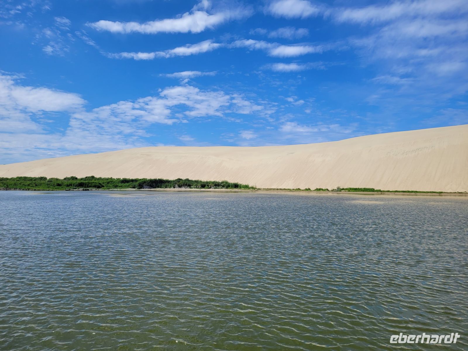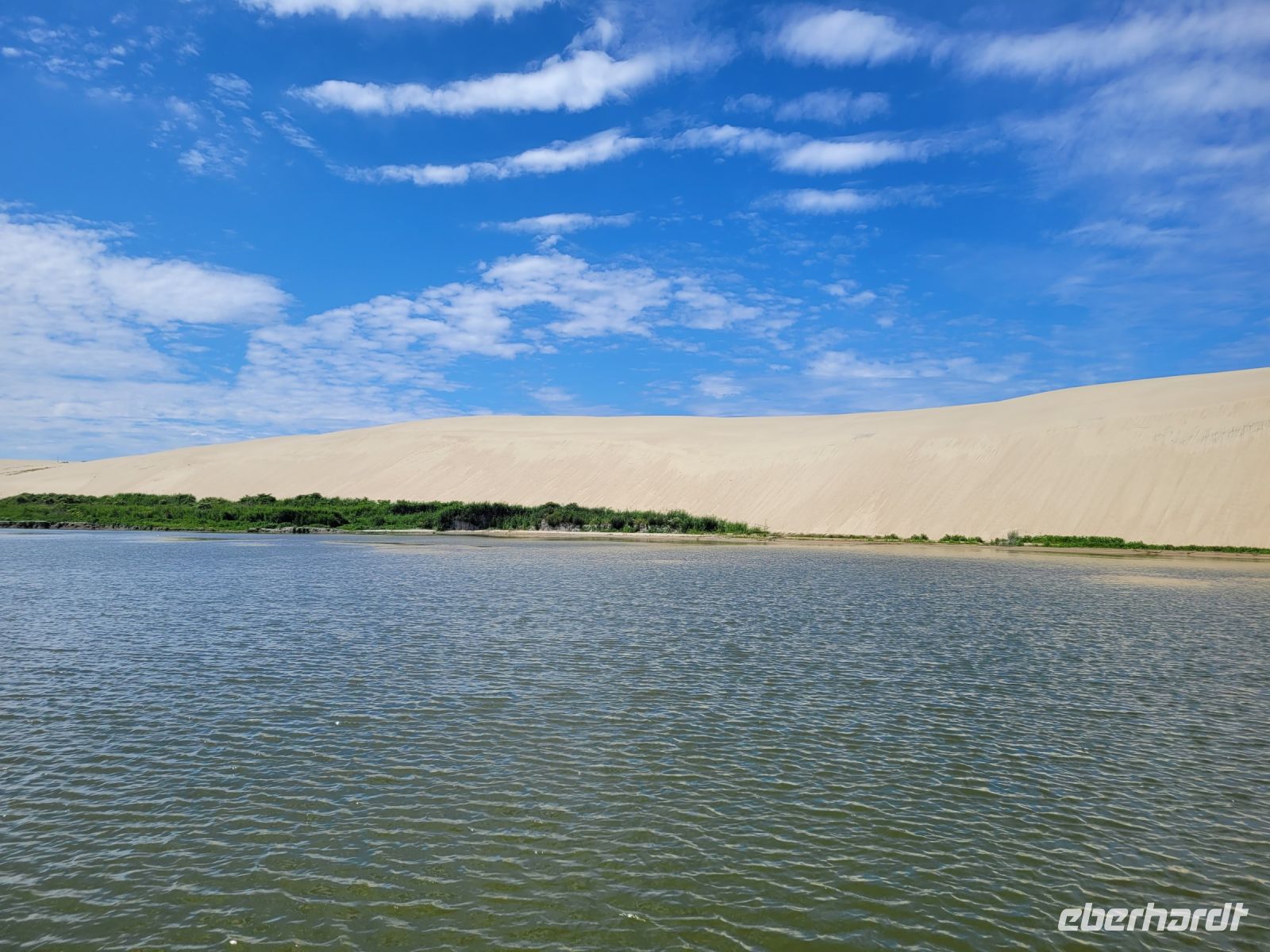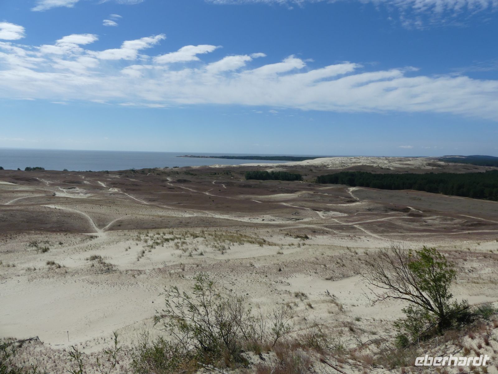 Bei leicht wolkigen Himmel setzen wir mit der Fähre über auf die Kurische Nehrung, einen 98 km langen Landstreifen (bzw. Halbinsel) zwischen Klaipeda (deutsch Memel) und Lesnoi. Erst in der zweiten Hälfte des 19. Jahrhunderts gelang es dem Düneninspektor Wilhelm Franz Epha, die Dünen zu bepflanzen und zu stabilisieren. Die Große Düne bei Nidden, eine der größten Dünen Europas, wird auch die ostpreußische Sahara genannt und wurde oft als Filmkulisse benutzt. Von hier wanderten wir bis Nidden durch die reizvolle Landschaft. Bei einer Bootsfahrt konnten wir uns einen Überblick über die Ausmaße der Wanderdüne verschaffen. Traumhaft!!