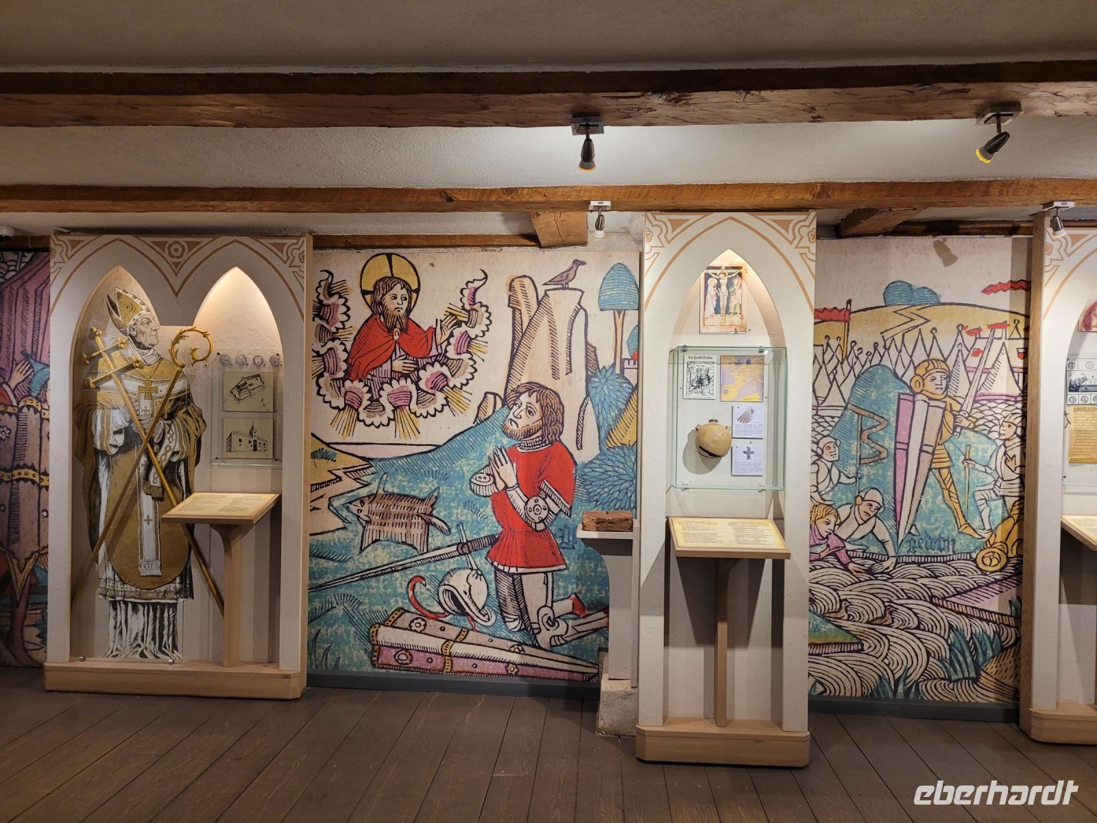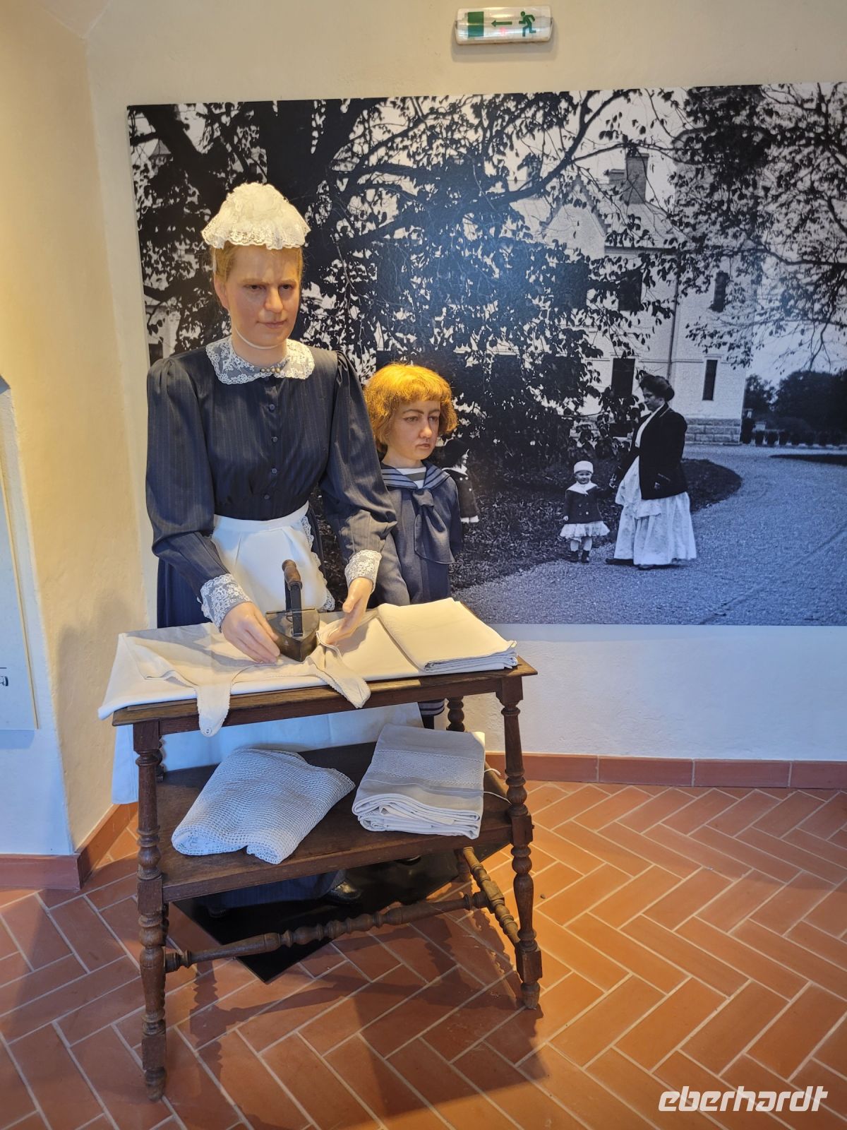 In den Kellerräumen befindet sich eine sehr anschauliche Foto- Ausstellung zum Tagesablauf der verschiedenen Personen die auf dem Gut lebten und arbeiteten. Die Personen sind als lebensgroße Wachsfiguren in entsprechender Kleidung dargestellt