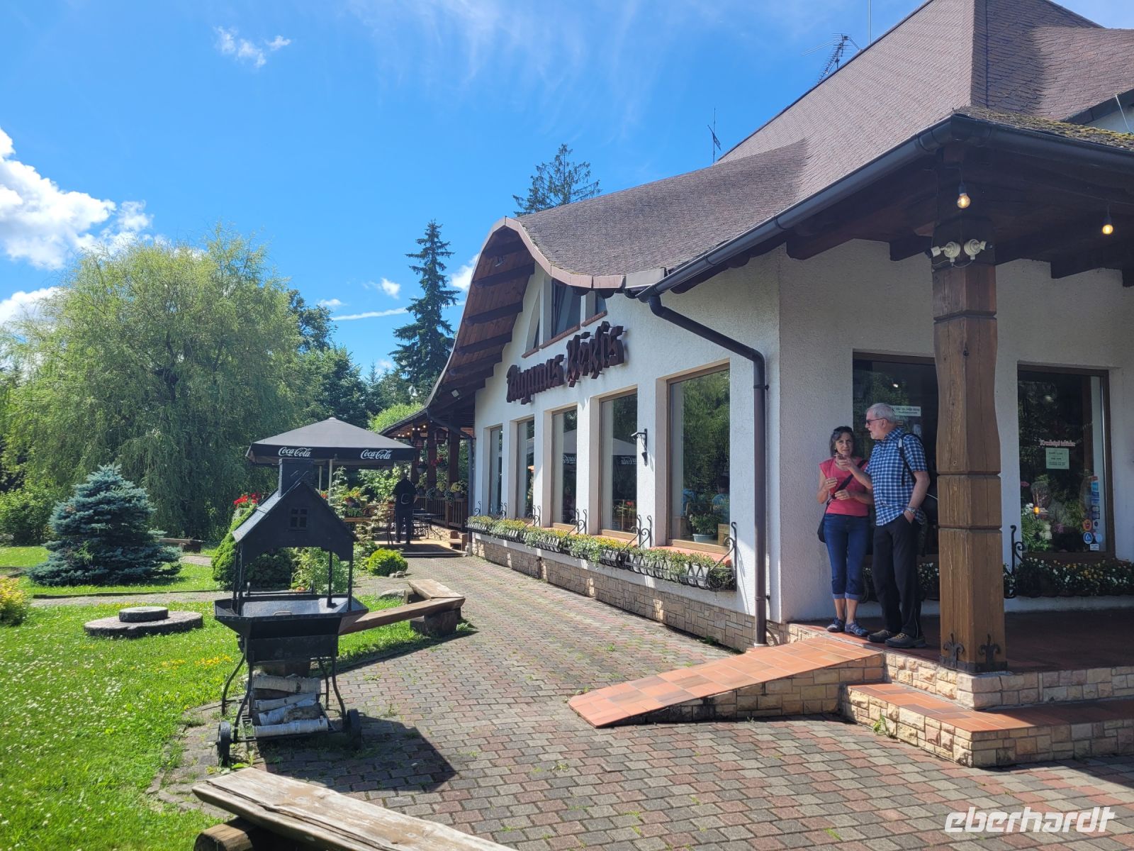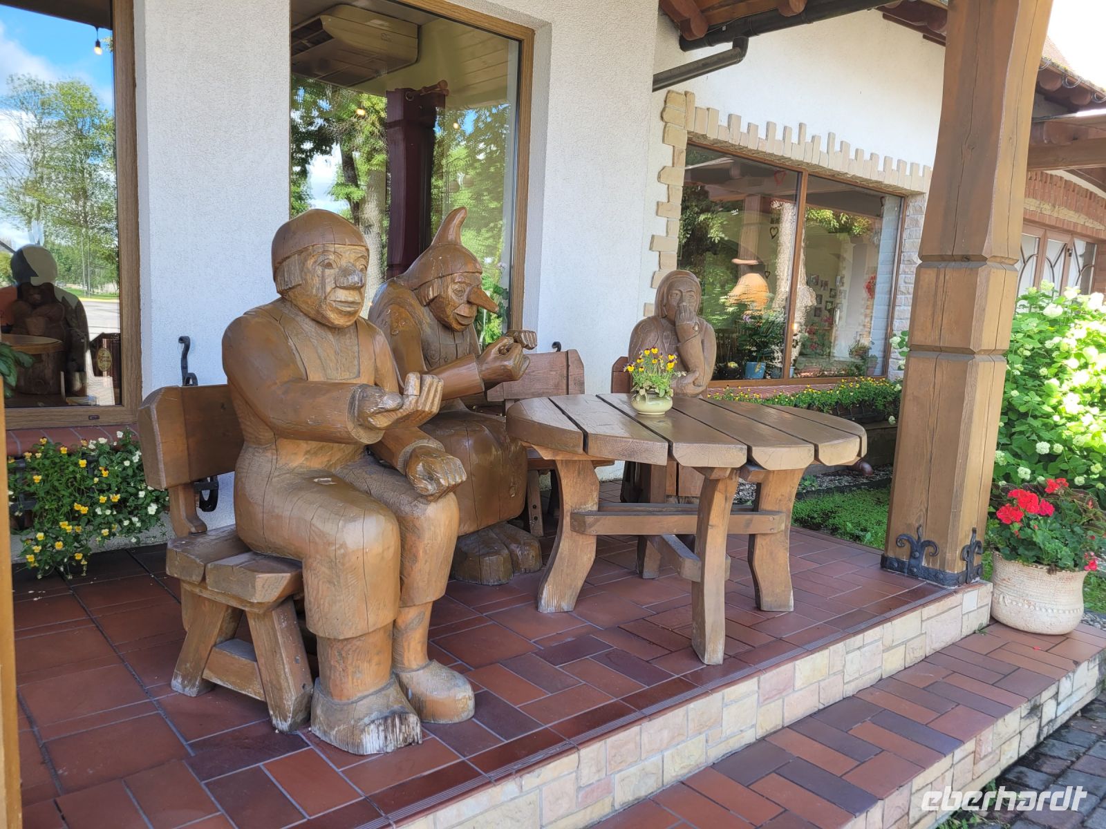 Zu Abend aßen wir Im Restaurant Berneliu Uzeiga Waldpilzsuppe im Brot, Schweinebraten und Möhrenkuchen mit Caramelsauce. Bei volkstümlichen Weisen und ließen den Tag langsam ausklingen.