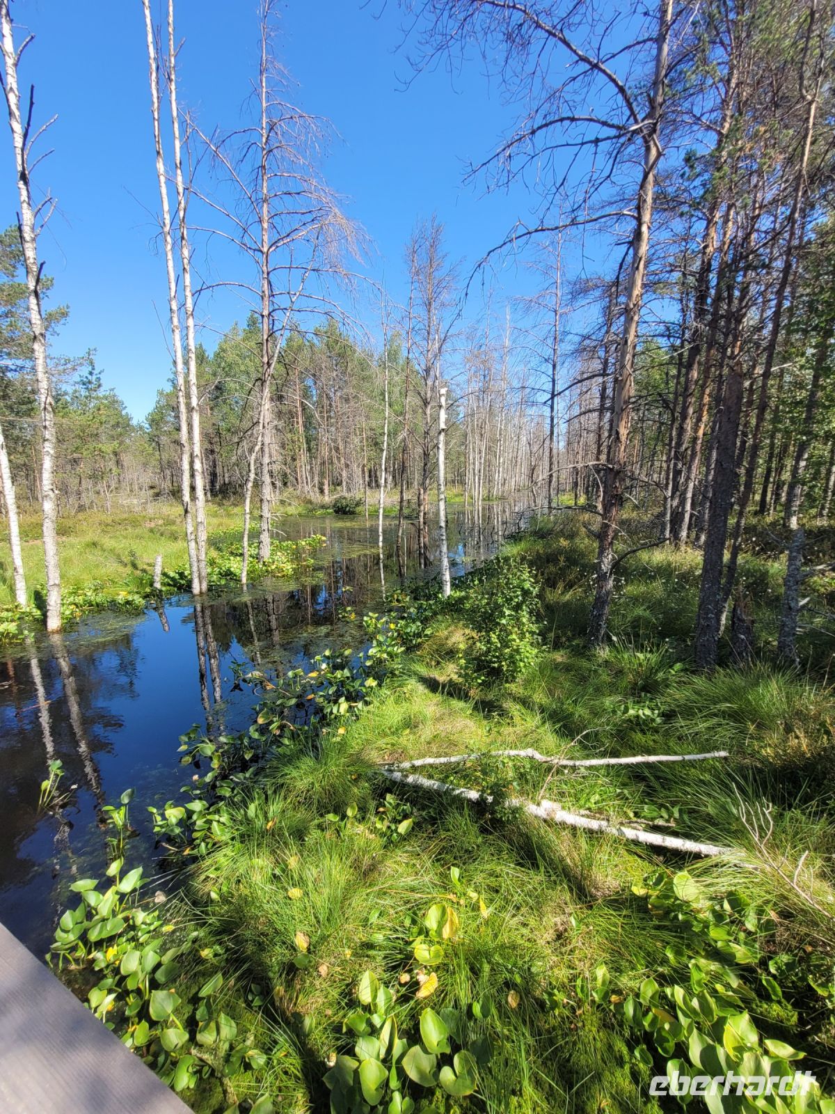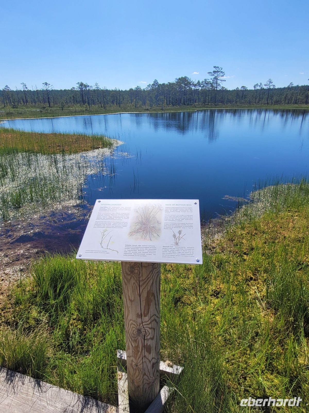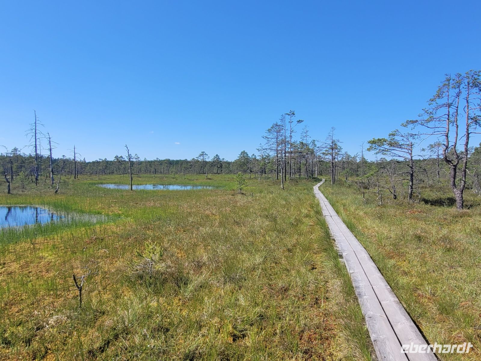 Er erstreckt sich auf einer Fläche von 72.500 Hektar (einschließlich 25.090 Hektar auf dem Meer). Der Park wurde 1971 als erster Nationalpark der Sowjetunion gegründet und ist geeignet für Wanderer, Radfahrer und Autofahrer. Hier haben einige vom Aussterben bedrohte Tierarten, wie Fischadler, Steinadler, Seeadler, Moorschneehuhn, Schwarzstorch und Nerz eine Zuflucht gefunden. Eine der letzten Populationen der Flussperlmuschel (Margaritifera margaritifera) in den baltischen Staaten befindet sich hier ebenfalls. Anzutreffen sind unter anderem auch (ca. 150) Elche, (10 -15) Luchse und Biber, die an den zahlreichen Bachläufen und kleinen Seen ein ideales Revier finden. Unsere örtliche Reiseführerin Davia erklärte uns während der Fahrt sehr viel über Land und Leute, Bodenschätze, Historisches und vieles mehr. Der Ausflug ins Moor Viru Rabu führt uns über schmale Stege. Auf halber Strecke können wir die eindrucksstarke Moorlandschaft vom Aussichtsturm bewundern. Beliebte Fotomotive: Gewässer, Windröschen, Silberblatt, Sonnentau, Heidekiefern, Wacholder, Beeren.