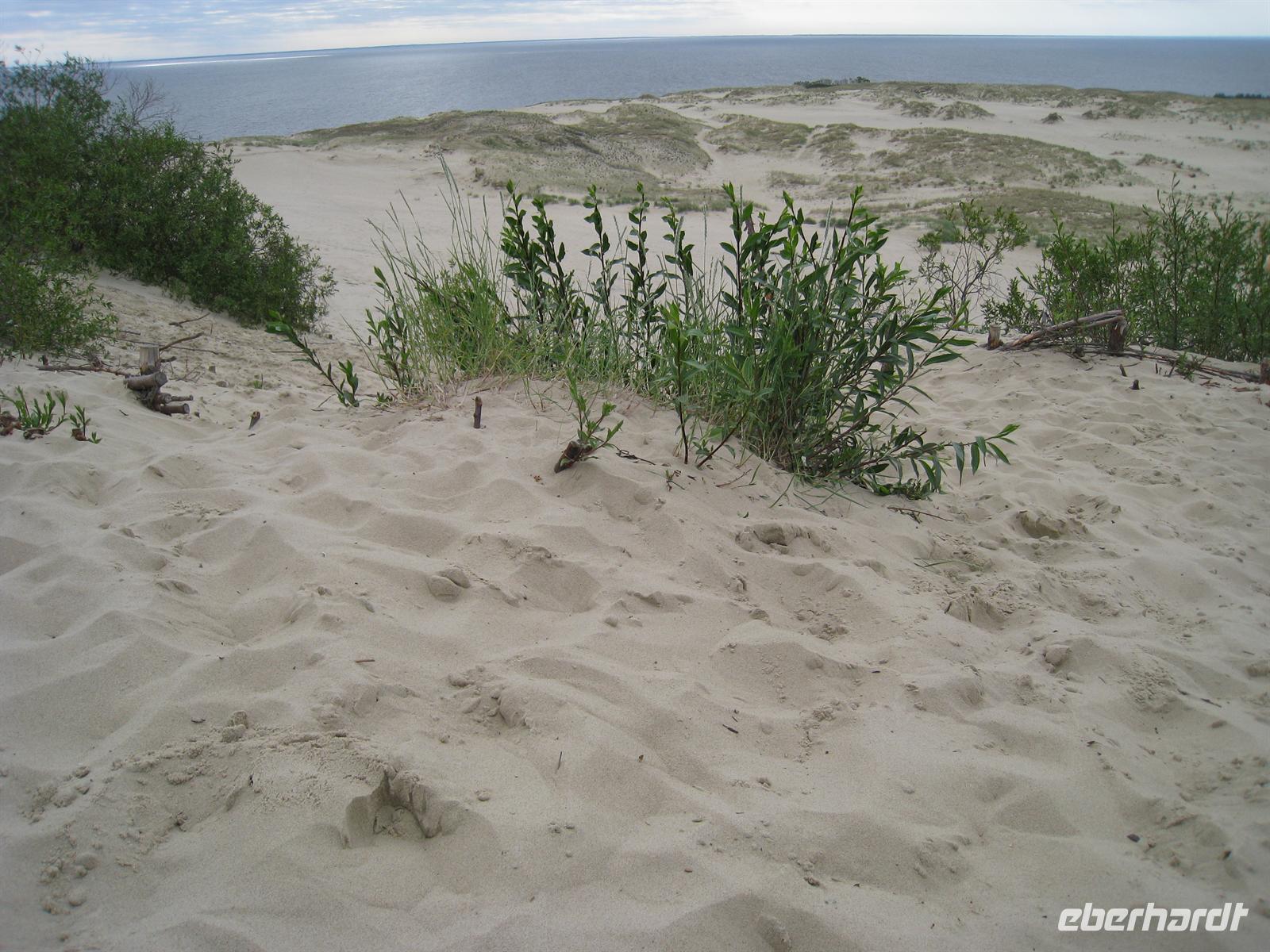 Hohe Düne: Blicke von der zweithöchsten Düne Europas nach Russland, auf das alte Kur- und Fischerdorf Nidden und nun doch, dies- und jenseits auf die offene See und das Haff. In Nidden ließen wir uns die Flaggenzeichen an den Häusern erklären, bevor uns ein Hauch des Nobelpreisträgers Th. Mann in seinem ehemaligen Sommerhaus umgab.