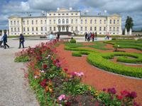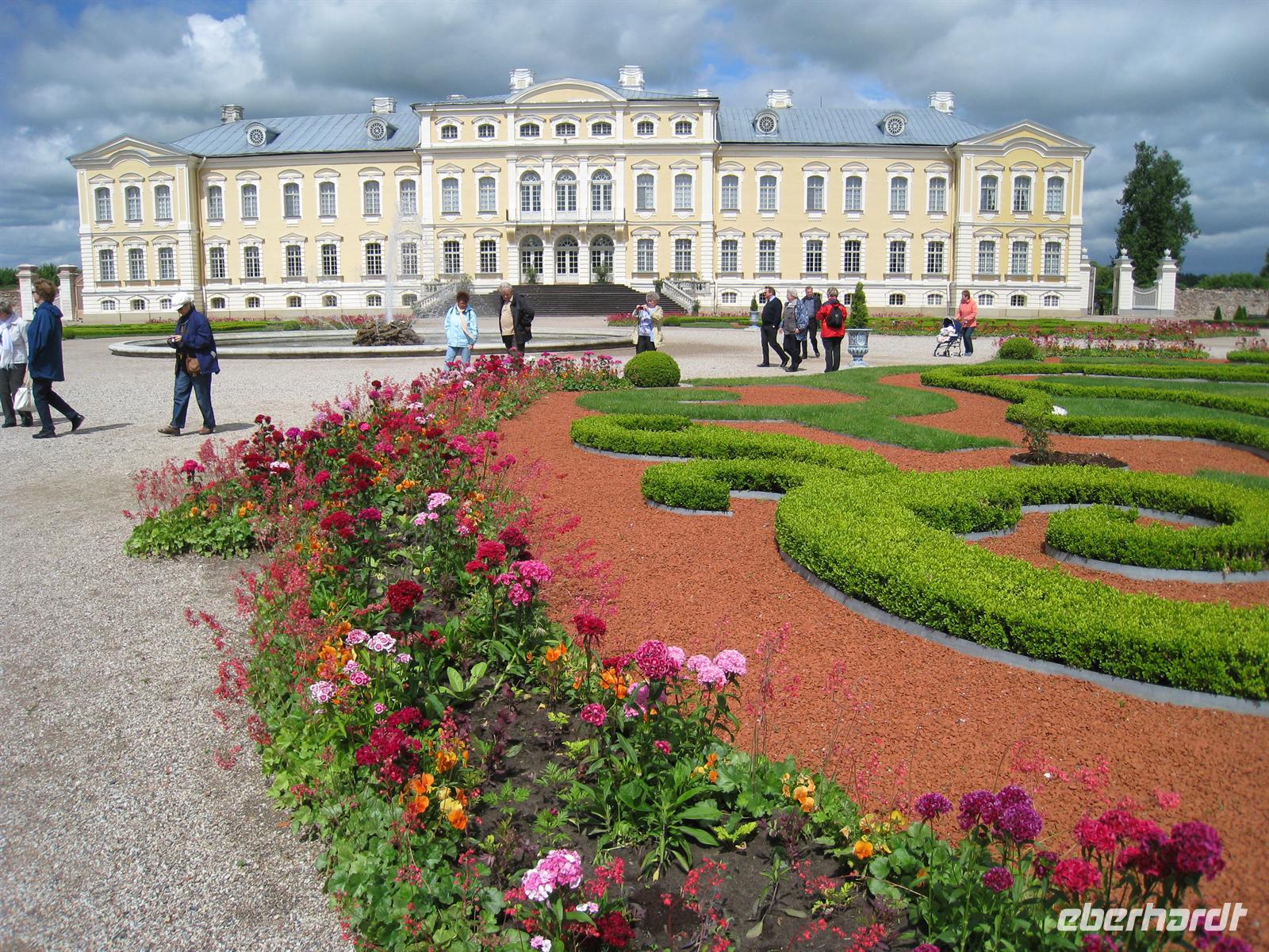 In Lettland zog es uns zunächst nach Schloss Rundale, Schloss des Herzogs von Kurland im 17. Jahrhundert. Bis wir die herrlich rekonstruierten Säle des Schlosses betreten konnten, genossen wir bei sommerlichem Wetter die Parkanlagen mit ihren beschnitten Gehölzen, Rosen und Pfingstrosen.