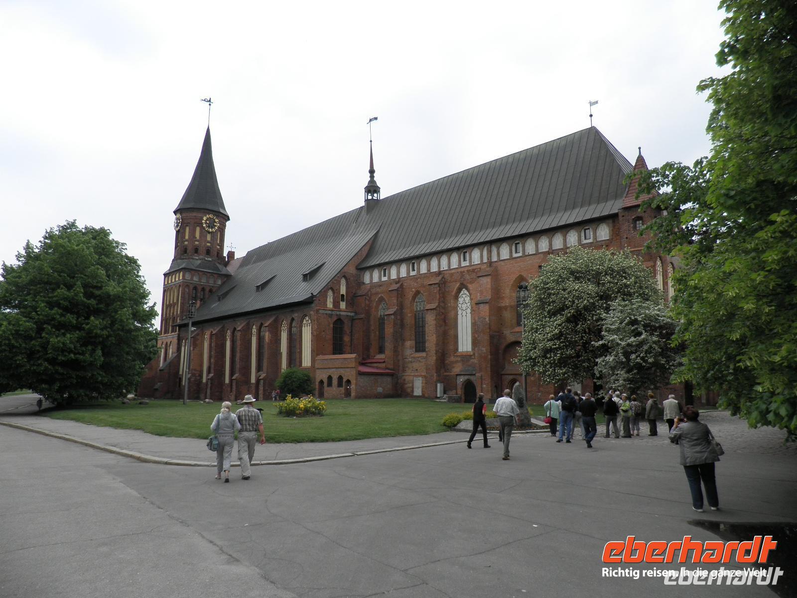 Von Danzig fuhren wir durch die Werderlandschaft der Weichsel an Elblag vorbei zur polnisch-russischen Grenze. Hier erwartete uns bereits unsere russische Reiseleiterin Maja. Mit ihrer Hilfe waren die Grenzformularitäten relativ schnell erledigt. Nach ca. 50 km erreichten wir Königsberg, das heutige Kaliningrad. Nach einer Stadtrundfahrt mit der Besichtigung des Doms, des Grabmals von E. Kant und der