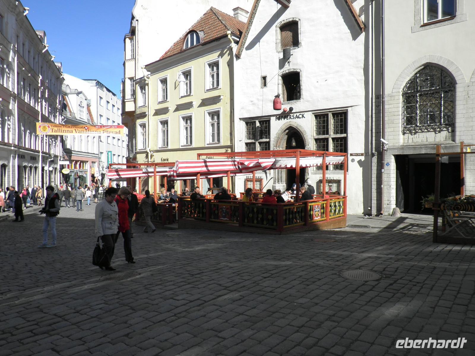Am nächsten Morgen verließen wir Riga um in Pärnu, hier bereits auf estnischer Seite, einen kurzen Strandbummel zu machen. Von Pärnu fuhren wir dann weiter nach Tallinn. Wieder ganz anders als Vilnius und Riga sahen wir hier eine mittelalterliche Altstadt die, sowohl mit ihrer Oberstadt (mit Dom und herrlichen Blicken über die Dächer von Tallinn) als auch mit der Unterstadt (mit Rathaus, Stadtmauer, Wehrtürmen und vielen kleinen Restaurationen) manchen Gast zu einem längeren Aufenthalt animieren könnte. Der Tag fand dann ein schönen Ausklang in der historischen Gaststätte "Peppersack".