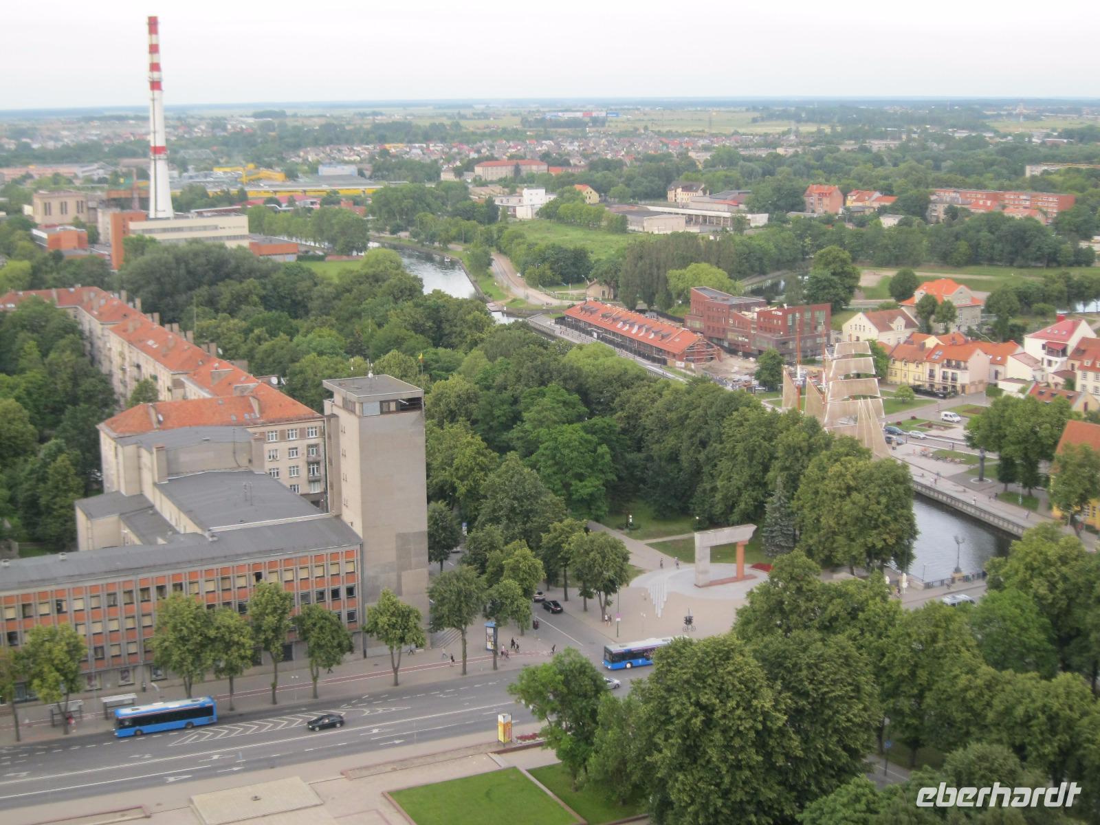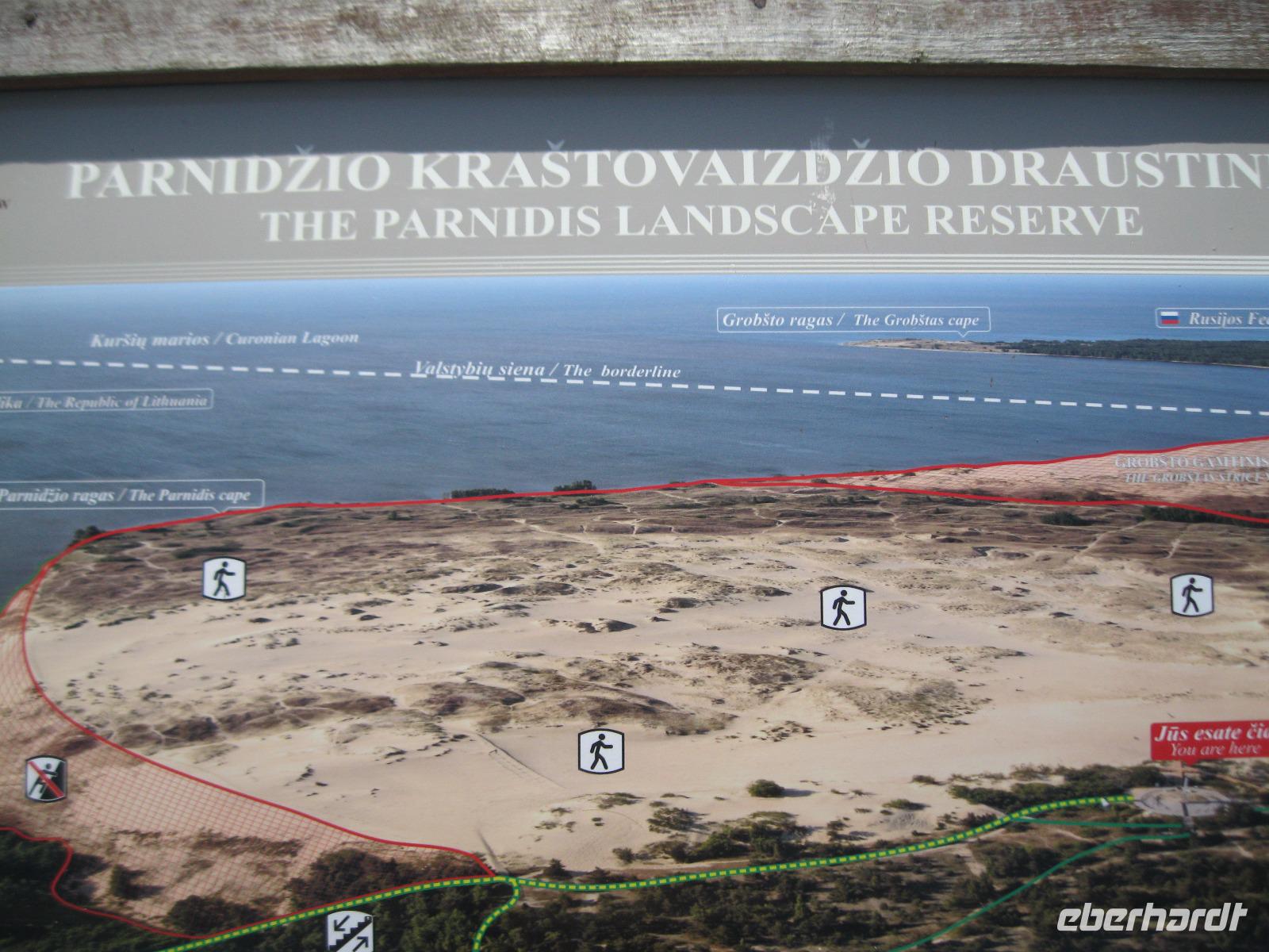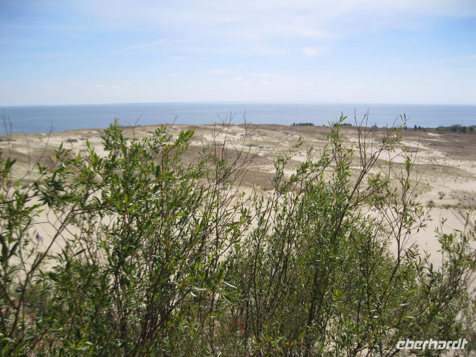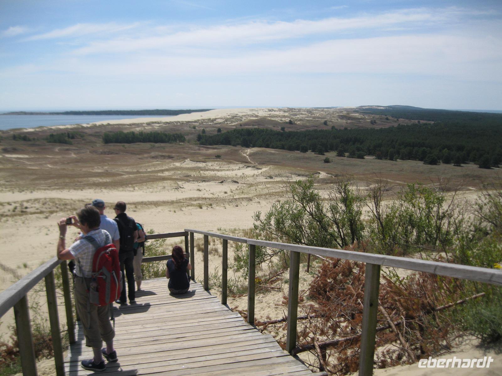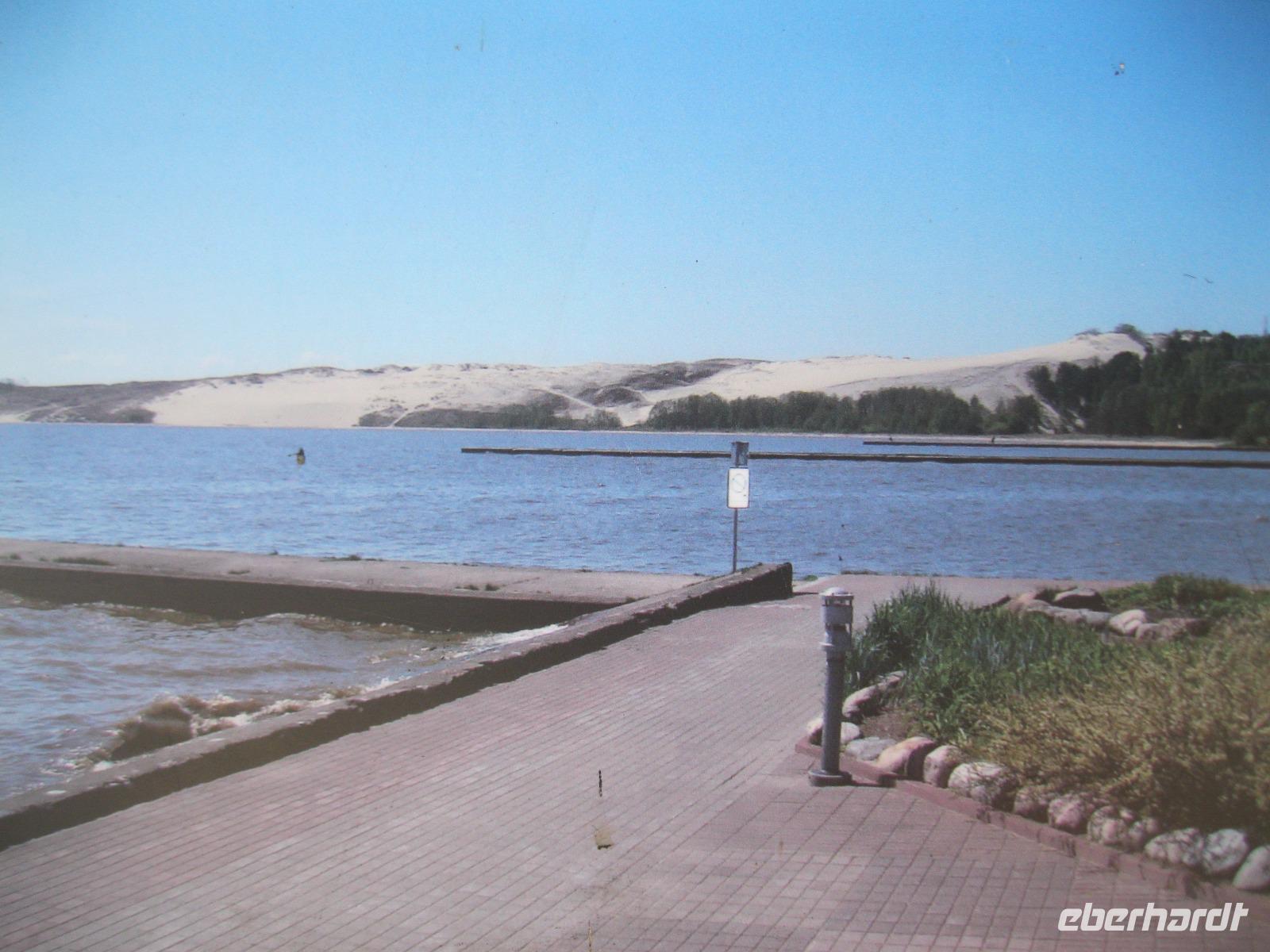Unser erster Ausflug führte uns ,zur einzigen Wasserburg Osteuropas, nach Trakai. Vorbei an den malerischen Holzhäusern der Karäer erreichten wir die mittelalterliche Inselburg.Im Burghof wurden Ritterspiele zelebriert und wir besichtigten die Residenz der Litauischen Großfürsten.Im Anschluss wanderten wir ,ein kleines Stück, um den Galves - See ,der die Burg umschließt.Das gesamte Gebiet nennt sich „Historischer National Park Trakai". Der Bus brachte uns über die Autobahn,rechts und links nur flaches Land, weiter . Am" Meer" (Stausee) von Kaunas vorbei überquerten wir die Neris und machten einen Stopp am Mega Einkaufspark.Wir hatten Zeit zum Imbiss und probierten die bekannte rote Beete Suppe oder gefüllte Kartoffel Klöße mit Sauerrahm. Nach weiteren 200 km erreichten wir Klaipeda ,das frühere Memel,und bezogen unser neues Hotel „Amberton".Das Abendessen war für uns im Restaurant-12.Etage-reserviert.Blick über die Dächer gratis.Im 22.Stockwerk befand sich eine Bar. Von da oben bot sich ein toller Ausblick auf Stadt und Nehrung- unser morgiges Ziel.