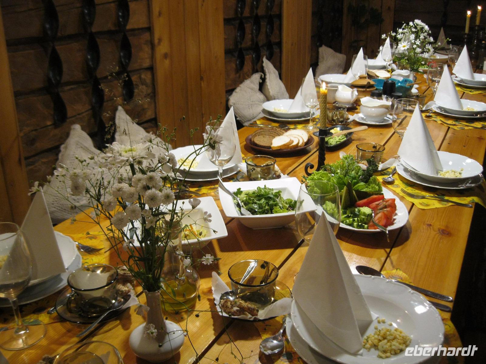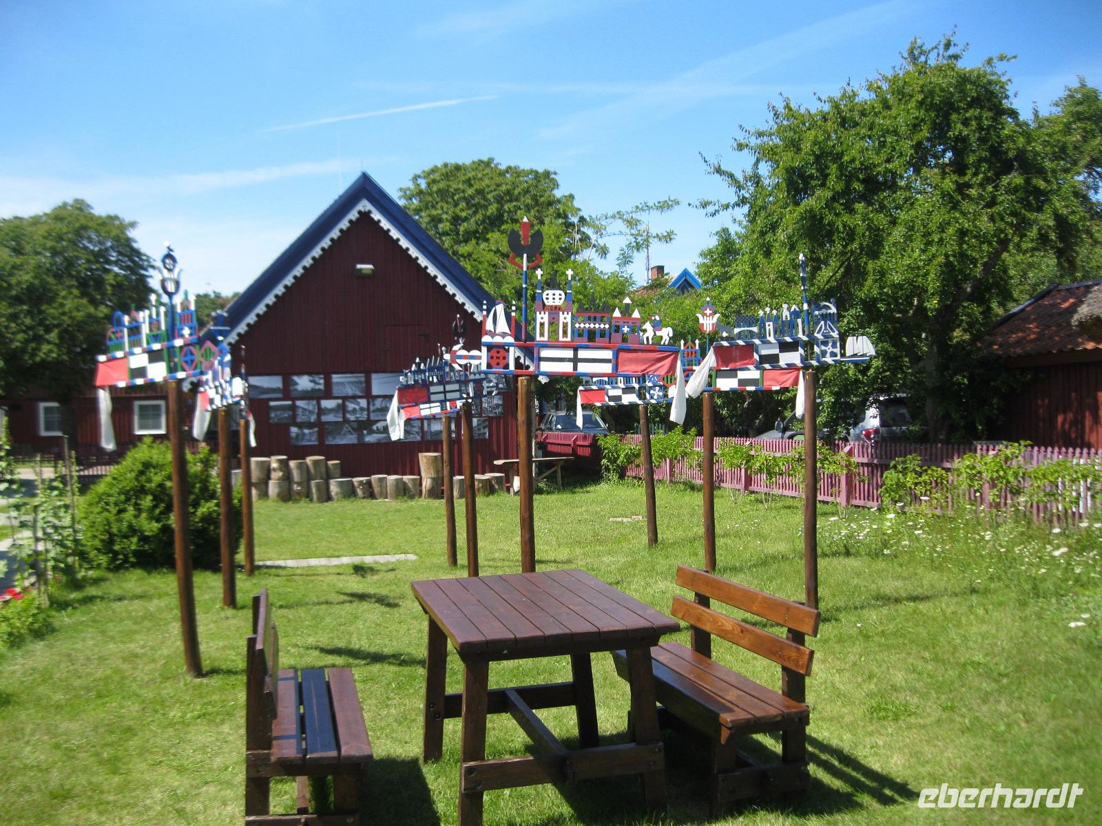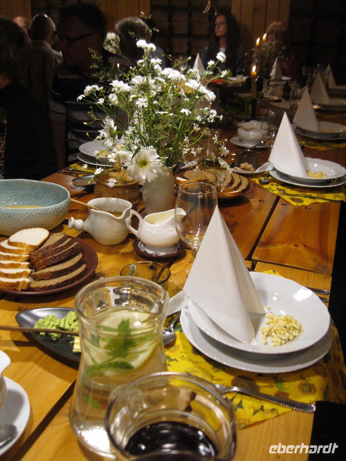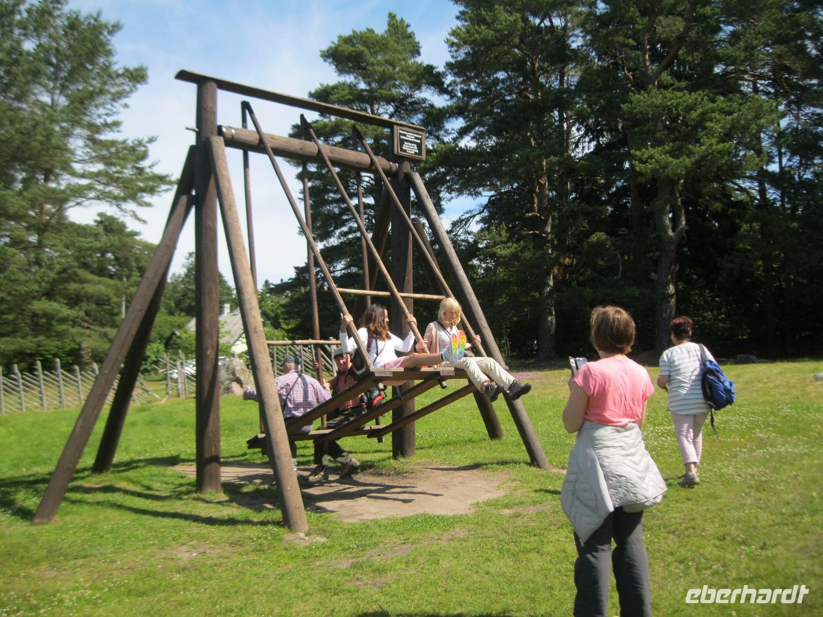 Endlich mal keinen Koffer packen , nur los fahren und genießen. Der Tag stand ganz im Zeichen der Natur.Die Balten sind ein sing - und tanzfreudiges Volk und somit ist der Besuch des Sängerhügels für uns ein Muss.Wir wollten ja nicht nur schauen sondern wandern.So fuhren wir in den ältesten National Park des Baltikums. Es erwarteten uns dichte Wälder und ein geheimnisvolles,abgelegenes Moor.Wir kamen uns vor wie im Märchenwald.Im Anschluss fuhren wir zum schönsten Gutshof Estlands, ins Fischerdorf Altja. In einer alten Fischerkate wurden wir zu ganz traditionellen Speisen erwartet.Wir waren überrascht, wie gut diese einfachen Gerichte schmecken können." Kugelrund „gegessen unternahmen wir noch einen Spaziergang zum Strand mit den vielen Findlingen.Die Gegend ist auch bekannt für die schön restaurierten alten Herrenhäuser.Eines davon ist das Anwesen in Palmse. Nach einem Film über den NationalparkLahemaa ,besichtigten wir das zu einem Museum eingerichtete Haus und den dazu gehörenden Garten. Im Weinkeller gab es für alle einen kühlen Schluck Rhabarber Wein. Nun mussten wir uns sputen der Abend sollte im Mittelalter ausklingen.Wir trafen uns in der „Olde Hanse" und tranken Bier aus Steingut Krügen.Das Licht spendeten Kerzen und das Essen wurde von Kellnern in alten Trachten serviert.Umrahmt wurde dies alles von Klängen gespielt auf historischen Instrumenten.Es war ein schöner Urlaubsanschluss.