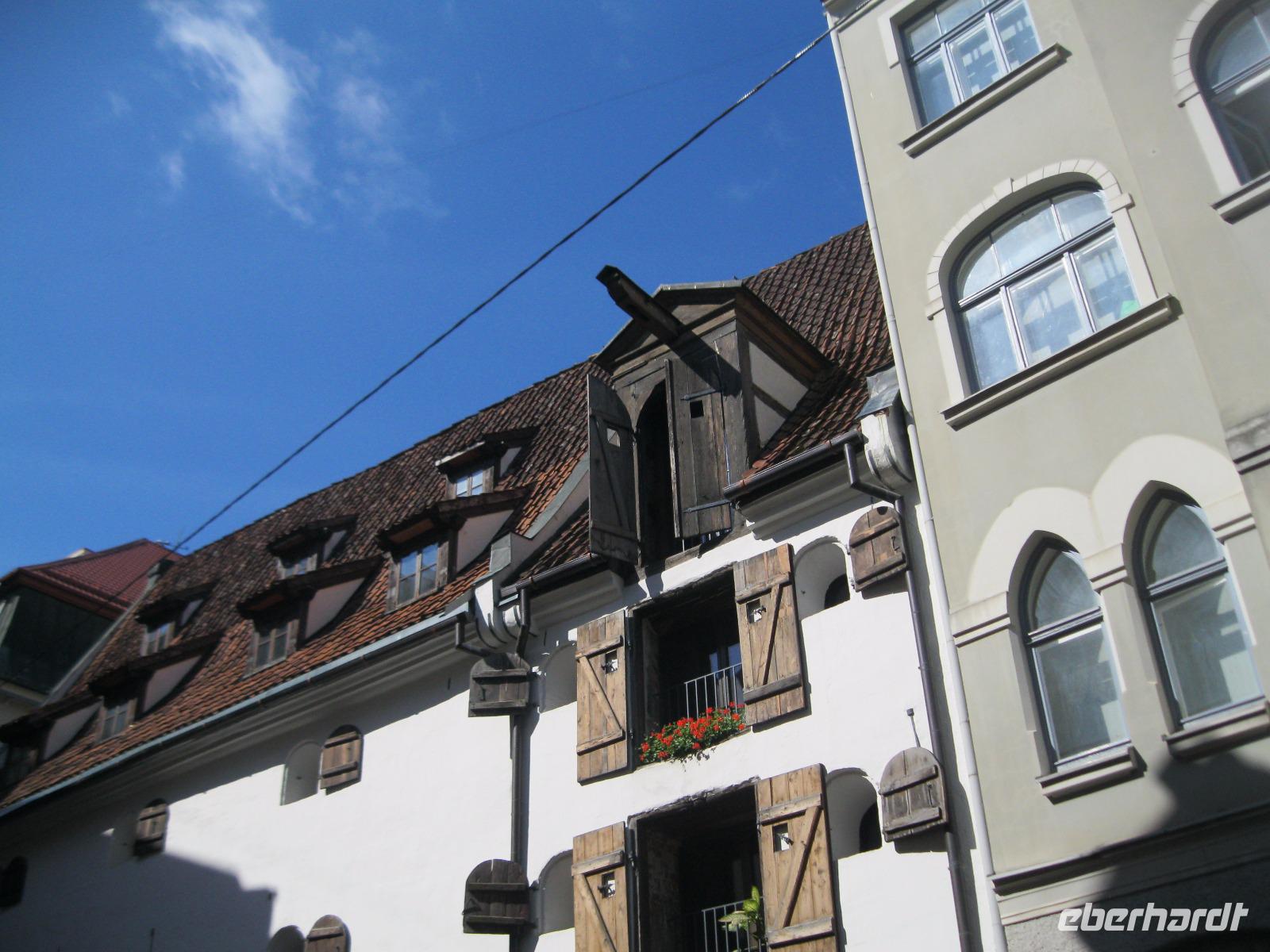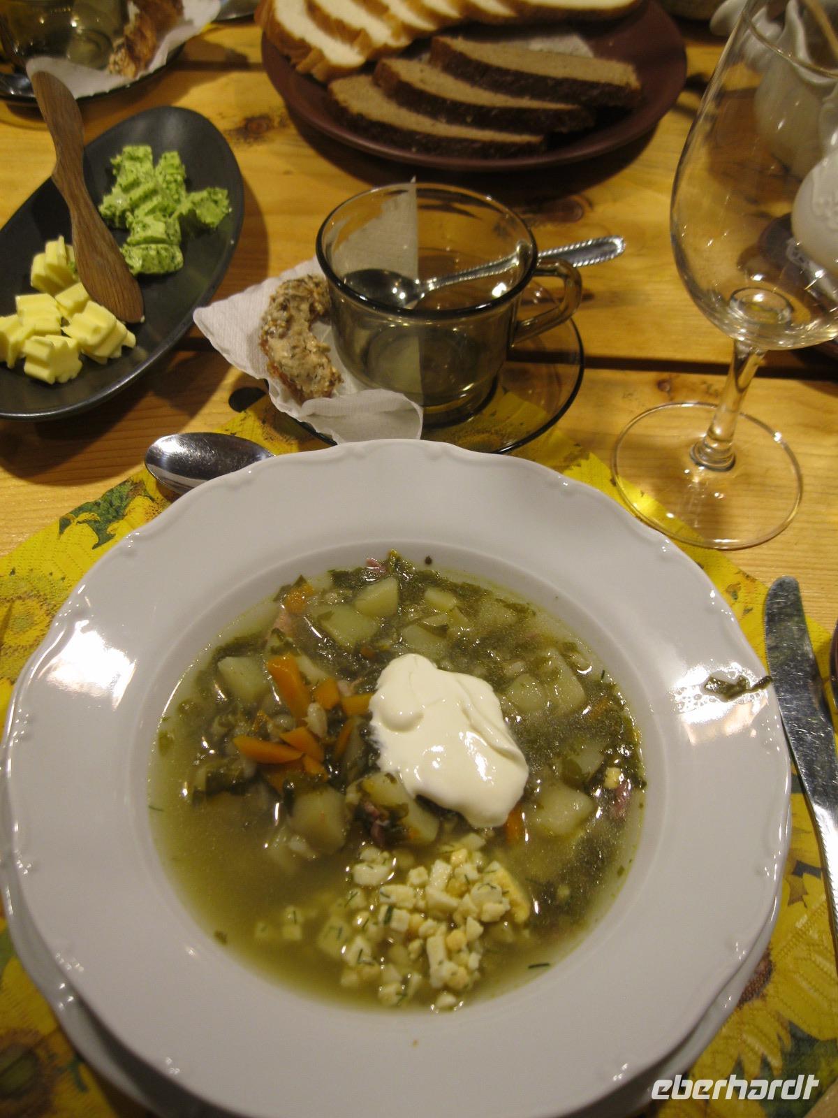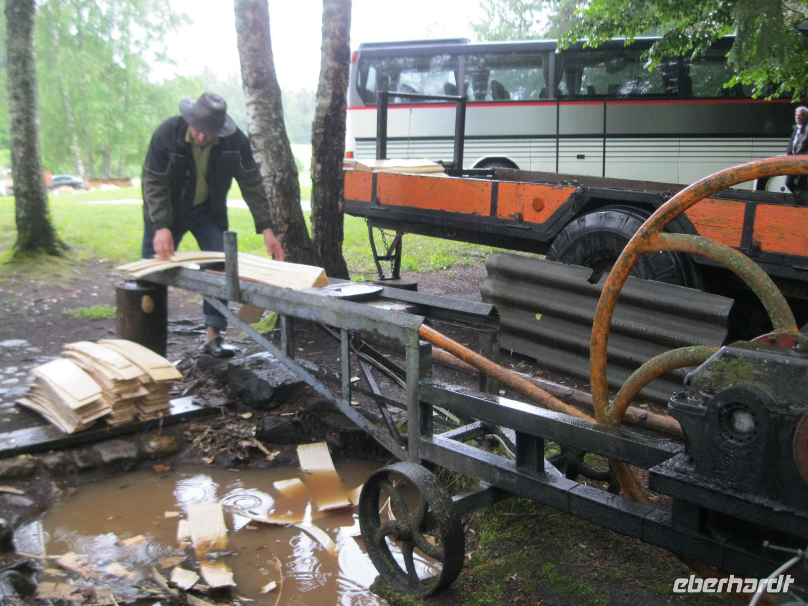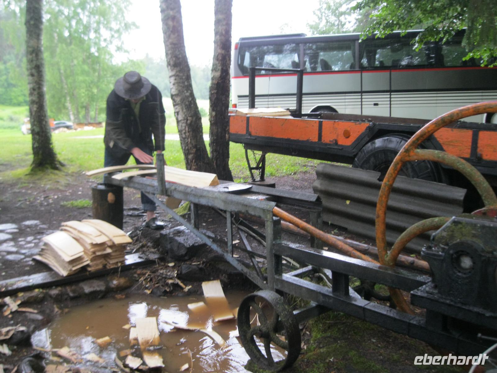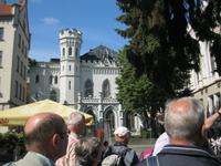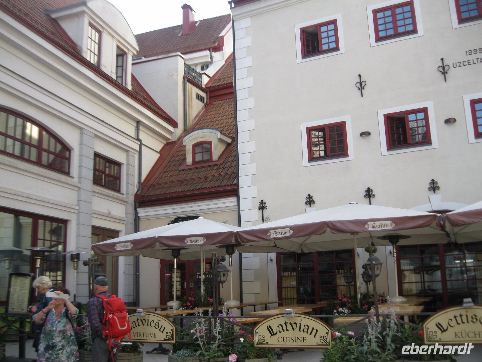 Bevor wir Riga verließen schauten wir neugierig das Gelände der Markthallen an.Hier würden wir uns auch gern mit Obst und Gemüse eindecken wollen aber wir reisen ja weiter. Über die Straße am Juglas See (die Trinkwasserversorgung Rigas) fuhren wir Richtung Landesinnere. Diese hügelige Landschaft wird Lettische Schweiz genannt. An der Rodelbahn von Sigulda vorbei ,führte unser Weg zu einer Aussicht über das Gauja Tal..Der größte Teil der Gruppe nimmt die Seilbahn und gibt sich den Kick über das Tal hinüber zu schweben. Wir „Bescheidenen "überqueren die Gauja per Brücke mit Bus.Mit Landung der Schwebebahn öffnet der Himmel seine Schleusen.Wir flüchten vor dem Wolkenbruch, verschieben die Besichtigung der Burg Turaida und fahren erst einmal zur Hexe.Die bescherte uns leckere einheimische Kost. Leider hat Petrus kein Verständnis für unseren Ausflug.Roland erzählte uns die Legende von der Gutmannshöhle und das dort eine wundersame Quelle fließt. Wir huschten durch den Regen und verwandelten die Quelle in "Rigaer Balsam".Nicht selbstgebackenen aber trotzdem gut schmeckenden Baumkuchen gab es dazu.Im Bus trockneten unsre Kleider etwas ab und wir erreichten unser heutiges Hotel "Kolonna" in Cesis.Es soll angeblich die lettischste Stadt der Letten sein. Die Fahne,Symbol des Freiheitskampfes,-blutrot und weiß-soll der Sage nach von hier stammen. Die ganz Unerschrockenen starteten noch zu einem Regenspaziergang und sahen sich die Stadt ,mit der ehemals größten Festung Livlands,an.Am Abend fuhren wir hinaus zum Bauernhof „Zipare". Der Chef des Hauses zeigte uns die Holz Schindel Herstellung.Wir wurden mit typischen Gerichten aus der Gegend bewirtet.Zum Schluss entlockten wir der Chefin das Rezept für ihre süße Brotsuppe. Es war nach dem verregneten Tag, ein schöner Abschluss auf dem Lande.