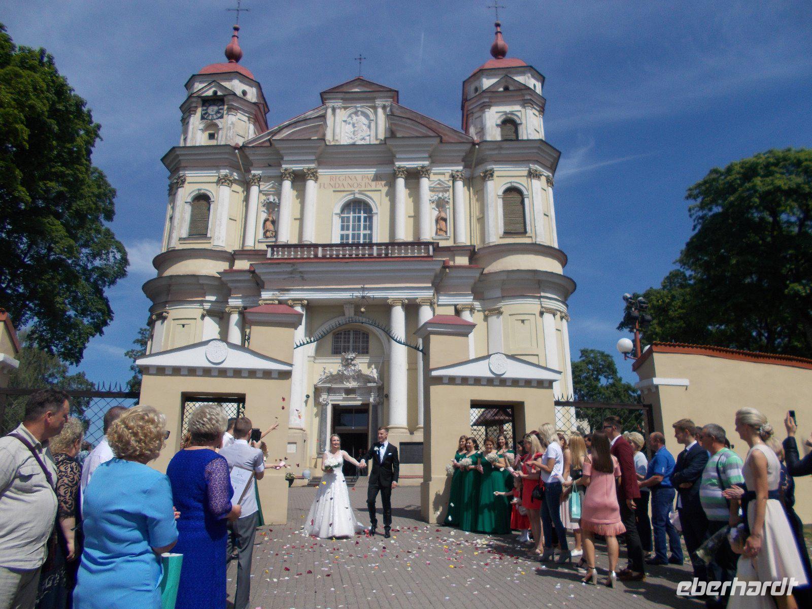 Am Flughafenin Frankfurt,traf unsere kleine Wandergruppe zueinander, um gemeinsam ins Balticum zu fliegen.Nach einem ruhigen Flug nach Litauen, erwartete uns Birute (örtl.Reiseleiterin)um uns Ihre Heimatstadt Vilnius zu zeigen.An der Peter und Paul Kirche wurden wir von einer Hochzeitsgesellschaft überrascht und eine Kindstaufe wurde in deutscher Sprache abgehalten.Vom Berg, mit den drei weißen Kreuzen,hatten wir einen tollen Blick über die UNESCO geschützte Altstadt.Auf einen Eiskaffee kehrten wir in der Burgstraße ein.Danach ging es zum restaurierten Residenzschloss und zur Casimir Kapelle.Auf dem Präsidentenpalast- Gelände fand ein Frühlingsmarkt mit Folklore und Handwerkermarkt statt.Über die kleine Künstlergasse gelangten wir zur Bernardiner Kirche.(Napoleon wollte sie gern mitnehmen,bloß gut dass er es nicht geschafft hat)Den Abschluss unseres Bummels bildete der Gang durch das letzte, erhaltene Stadttor,der" Morgenröte" mit dem Bildnis der schwarzen Madonna.Jetzt endlich geht es zum Hotel ,wo wir schon erwartet werden und lassen uns das Abendessen schmecken.