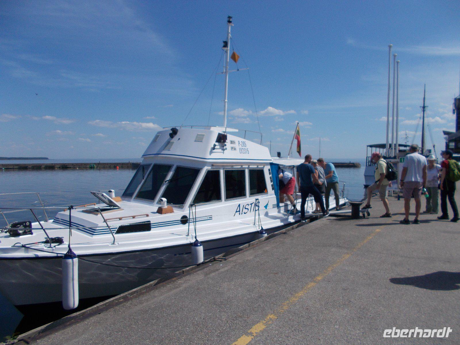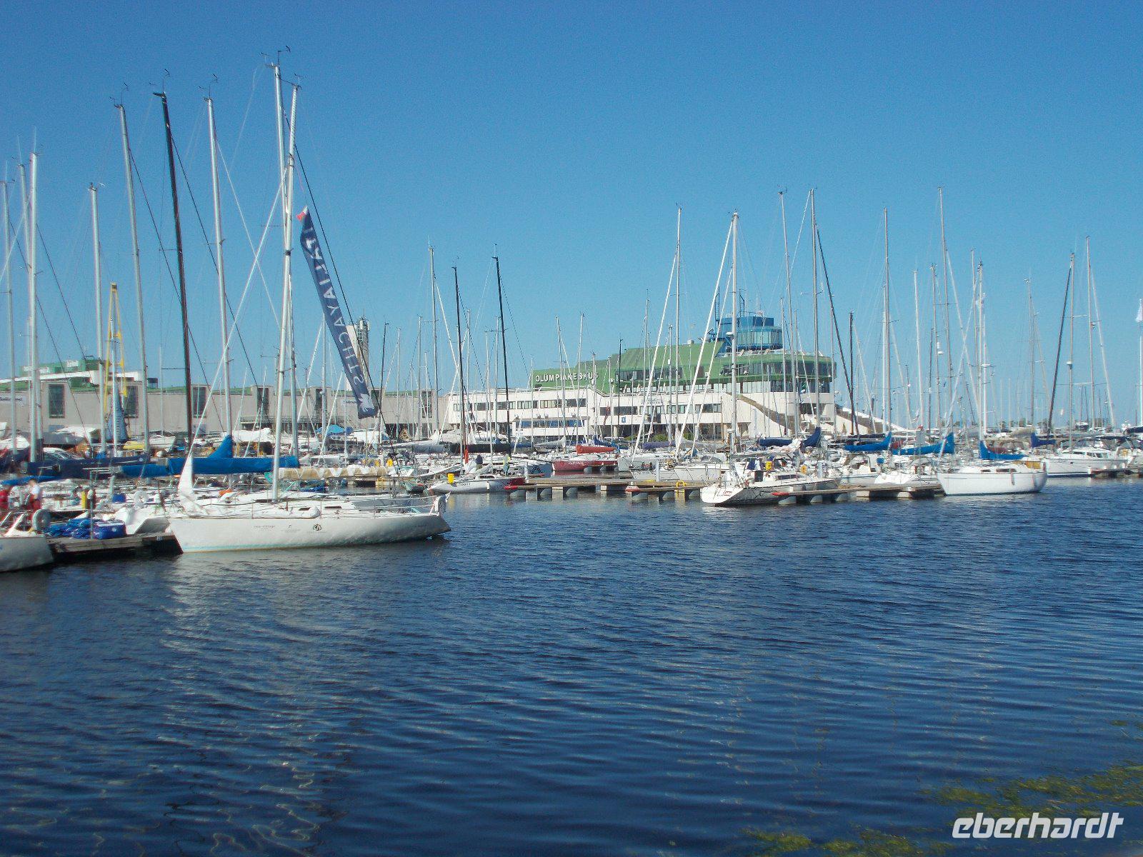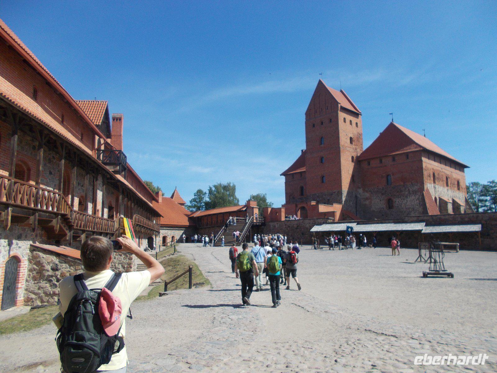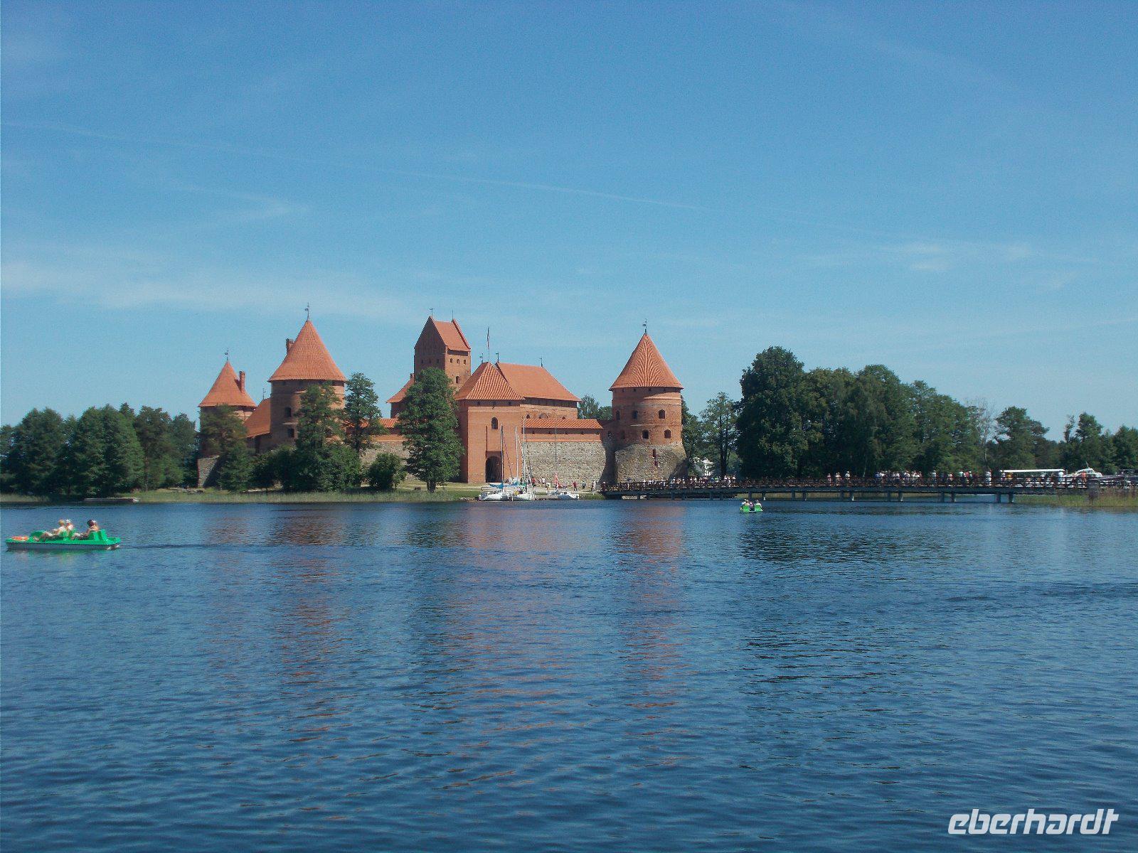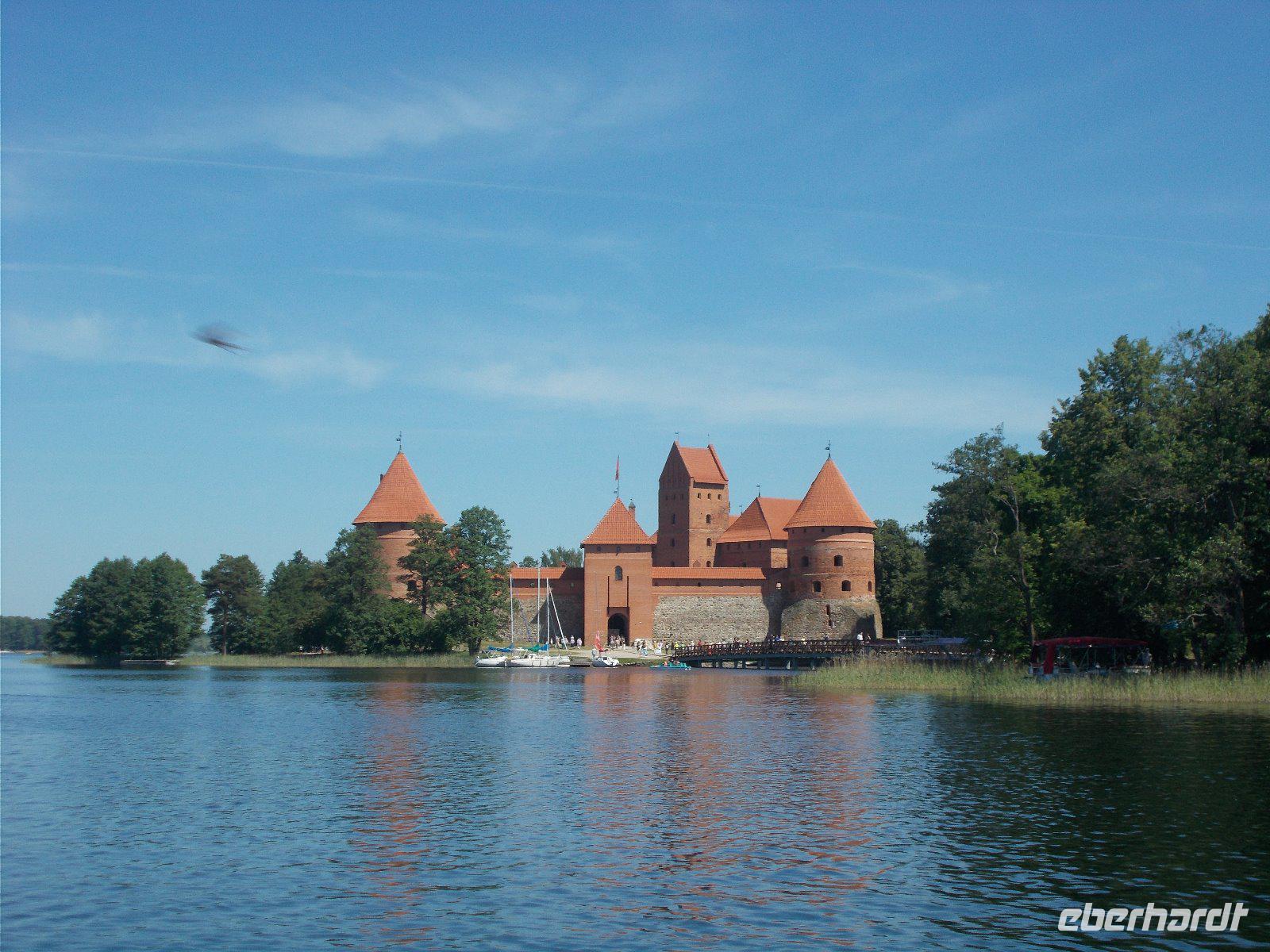 Wenn man Vilnius besucht ,ist Trakai ein Muß ! (so Birute)Wir verlassen die Stadt an der Neris und fahren ins Siedlungsgebiet der Karäer.Es liegt im historischen Nationalpark,der auch fünf Seen umschließt.Darunter auch der Galve See mit der einzigen Wasserburg Osteuropas.Trakai - war einst sogar die Sommerresidenz der Litauer Großfürsten.Wir stromerten durch die altehrwürdige Burganlage und wählten eine abenteuerliche Stiege um wieder in den Burghof zu gelangen.Über einen Holzsteg gelangten wir zurück in die ehemalige Hauptstadt und bewunderten die Stände mit den Bernsteinauslagen.Wir liefen entlang der Karaimu wo die Hozhäuschen der Karäer und das Gebetshaus stehen.Typisch die drei Fenster (eins für den Hausherrn,Fürsten und Gott) zur Staßenseite hin.Der Bus brachte uns weiter ,vorbei am Kaunasser Meer gelangten wir zum Mega Park ,um dort unsere Mittagsmahlzeit einzunehmen.Vor uns lagen noch rund 200 km.Wir fuhren flott über die Autobahn und wurden im Hotel „Alberton"- Klaipeda leider noch nicht erwartet.Wir vertrieben uns die Zeit mit einer kleinen Vorstellungsrunde und Honig-Likör.Gut gelaunt entschlossen wir uns für einen Stadtrundgang.In der Altstadt verlaufen alle Straßen quadratisch,man kann sich also nicht verlaufen.Am Brunnen vor dem Theater stimmten wir das bekannte Lied „Ännchen von Tharau"an und der Chor konnte sich hören lassen.Im Hotel angekommen,waren unsere Zimmer endlich bezugsfertig und das Abendessen angerichtet.An diesem lauen Abend zog es uns noch einmal hinaus zum Hafen.Im Anschluss schmeckte ein Bier im „Boot" ,an der Dane gelegen,in gemütlicher Runde getrunken,besonders gut.