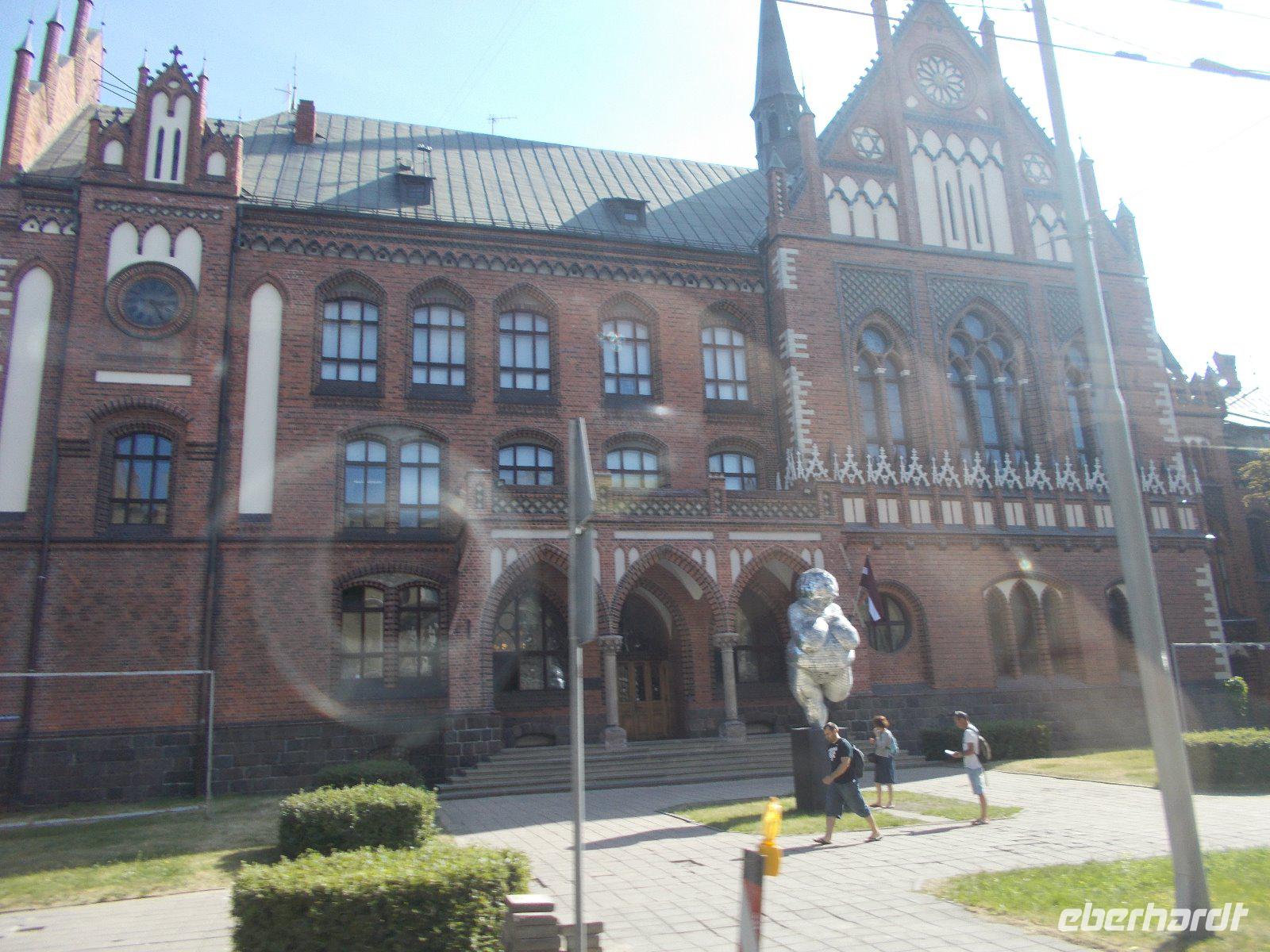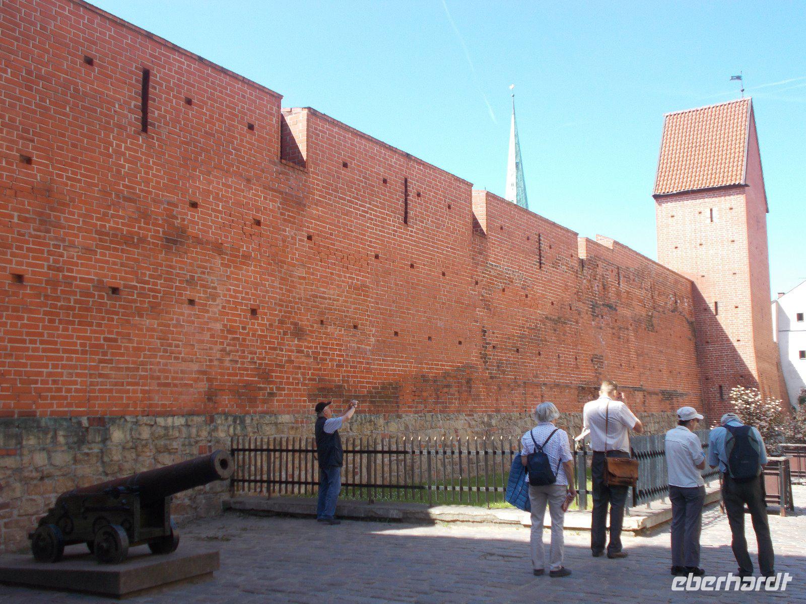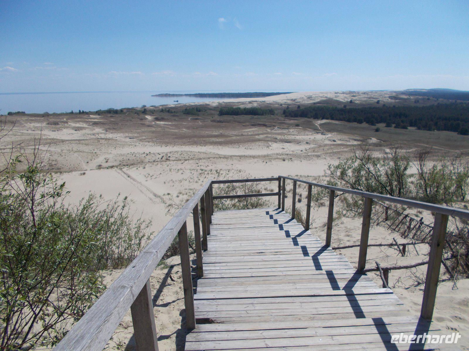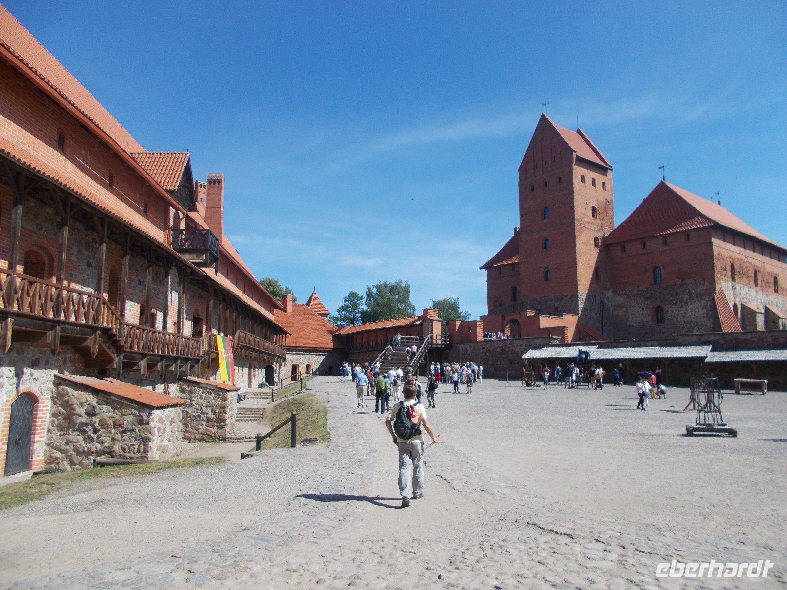 Wenn man Vilnius besucht ,ist Trakai ein Muß ! (so Birute)Wir verlassen die Stadt an der Neris und fahren ins Siedlungsgebiet der Karäer.Es liegt im historischen Nationalpark,der auch fünf Seen umschließt.Darunter auch der Galve See mit der einzigen Wasserburg Osteuropas.Trakai - war einst sogar die Sommerresidenz der Litauer Großfürsten.Wir stromerten durch die altehrwürdige Burganlage und wählten eine abenteuerliche Stiege um wieder in den Burghof zu gelangen.Über einen Holzsteg gelangten wir zurück in die ehemalige Hauptstadt und bewunderten die Stände mit den Bernsteinauslagen.Wir liefen entlang der Karaimu wo die Hozhäuschen der Karäer und das Gebetshaus stehen.Typisch die drei Fenster (eins für den Hausherrn,Fürsten und Gott) zur Staßenseite hin.Der Bus brachte uns weiter ,vorbei am Kaunasser Meer gelangten wir zum Mega Park ,um dort unsere Mittagsmahlzeit einzunehmen.Vor uns lagen noch rund 200 km.Wir fuhren flott über die Autobahn und wurden im Hotel „Alberton"- Klaipeda leider noch nicht erwartet.Wir vertrieben uns die Zeit mit einer kleinen Vorstellungsrunde und Honig-Likör.Gut gelaunt entschlossen wir uns für einen Stadtrundgang.In der Altstadt verlaufen alle Straßen quadratisch,man kann sich also nicht verlaufen.Am Brunnen vor dem Theater stimmten wir das bekannte Lied „Ännchen von Tharau"an und der Chor konnte sich hören lassen.Im Hotel angekommen,waren unsere Zimmer endlich bezugsfertig und das Abendessen angerichtet.An diesem lauen Abend zog es uns noch einmal hinaus zum Hafen.Im Anschluss schmeckte ein Bier im „Boot" ,an der Dane gelegen,in gemütlicher Runde getrunken,besonders gut.