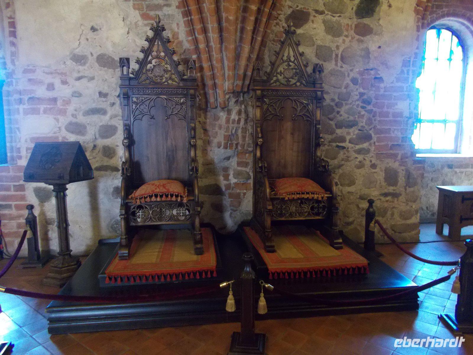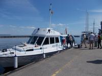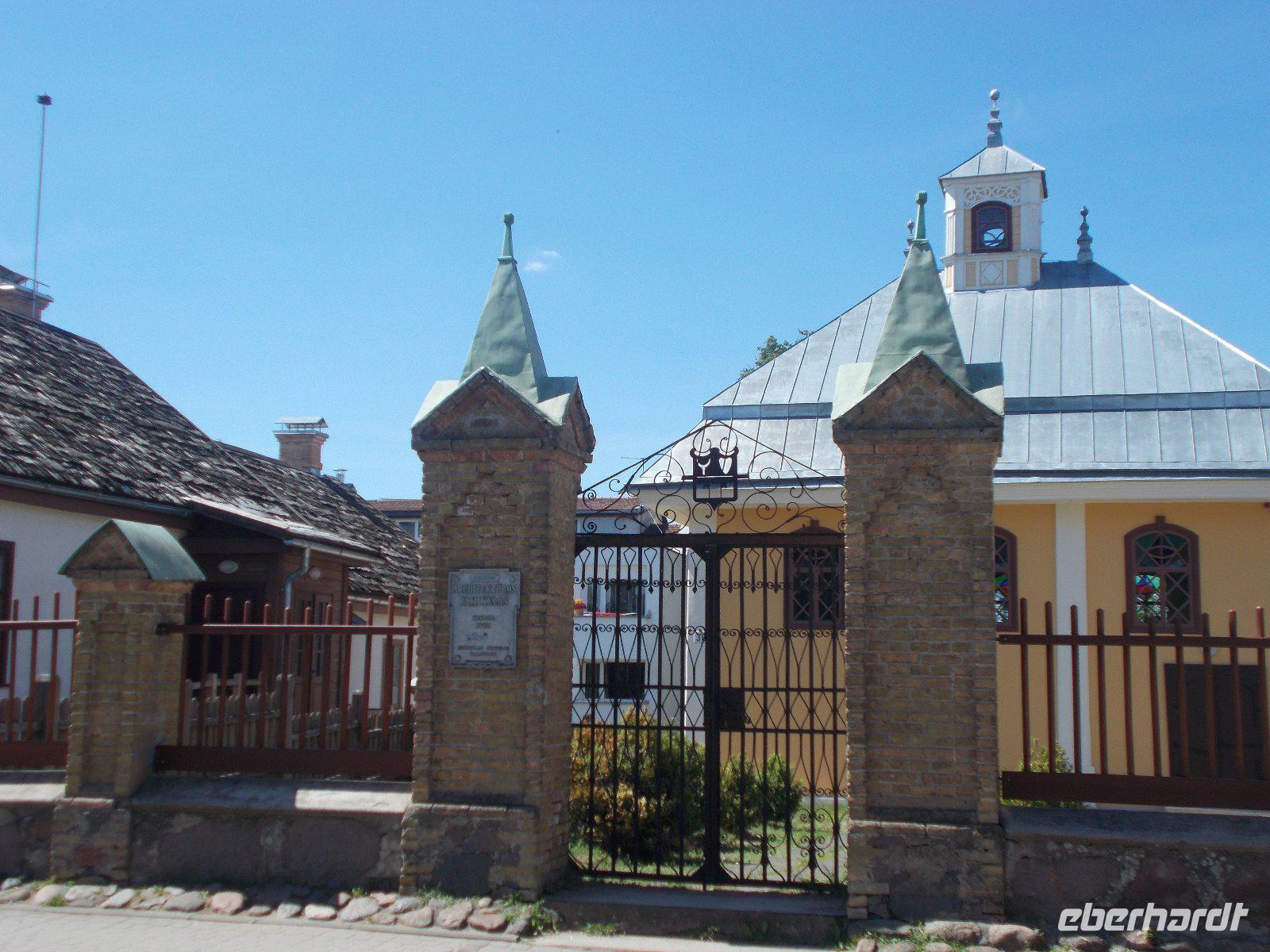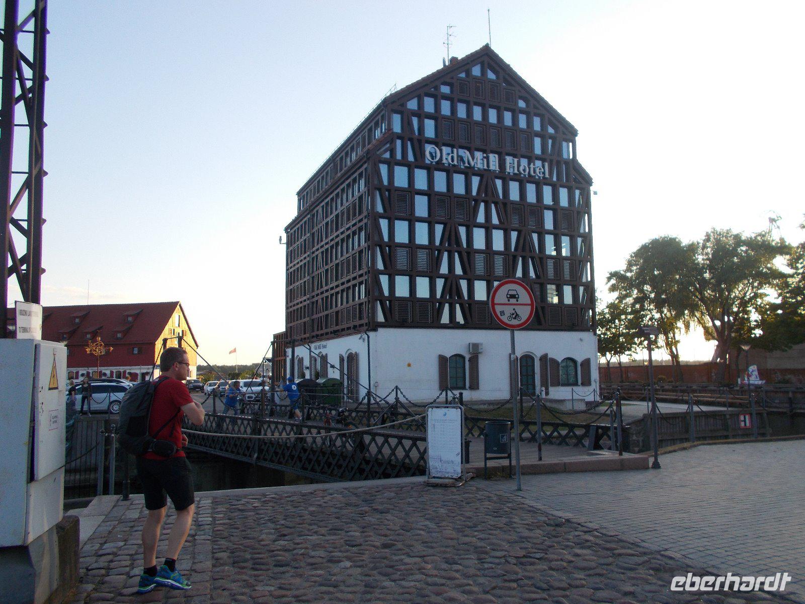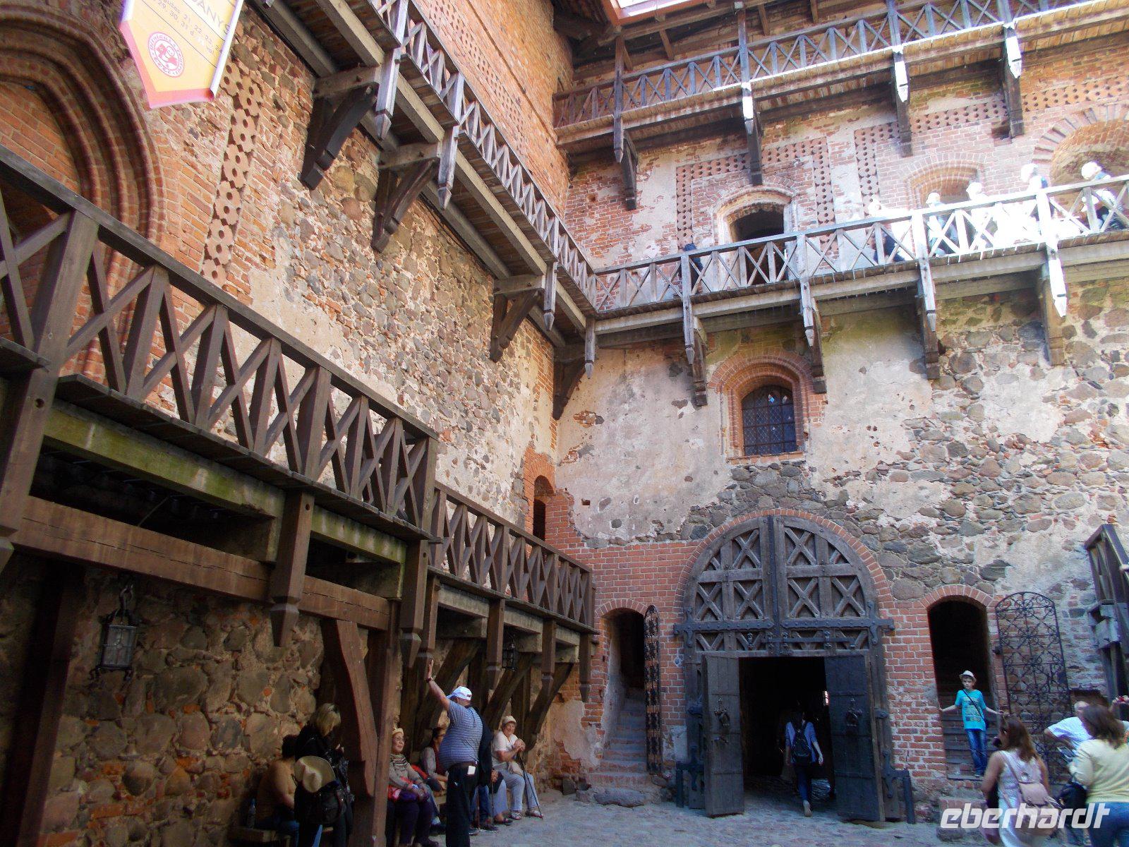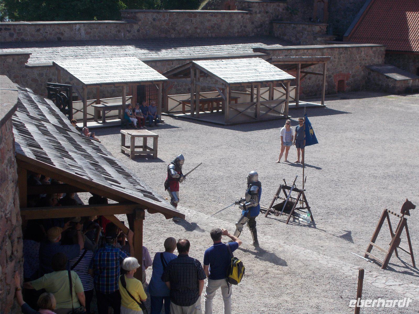 Wenn man Vilnius besucht ,ist Trakai ein Muß ! (so Birute)Wir verlassen die Stadt an der Neris und fahren ins Siedlungsgebiet der Karäer.Es liegt im historischen Nationalpark,der auch fünf Seen umschließt.Darunter auch der Galve See mit der einzigen Wasserburg Osteuropas.Trakai - war einst sogar die Sommerresidenz der Litauer Großfürsten.Wir stromerten durch die altehrwürdige Burganlage und wählten eine abenteuerliche Stiege um wieder in den Burghof zu gelangen.Über einen Holzsteg gelangten wir zurück in die ehemalige Hauptstadt und bewunderten die Stände mit den Bernsteinauslagen.Wir liefen entlang der Karaimu wo die Hozhäuschen der Karäer und das Gebetshaus stehen.Typisch die drei Fenster (eins für den Hausherrn,Fürsten und Gott) zur Staßenseite hin.Der Bus brachte uns weiter ,vorbei am Kaunasser Meer gelangten wir zum Mega Park ,um dort unsere Mittagsmahlzeit einzunehmen.Vor uns lagen noch rund 200 km.Wir fuhren flott über die Autobahn und wurden im Hotel „Alberton"- Klaipeda leider noch nicht erwartet.Wir vertrieben uns die Zeit mit einer kleinen Vorstellungsrunde und Honig-Likör.Gut gelaunt entschlossen wir uns für einen Stadtrundgang.In der Altstadt verlaufen alle Straßen quadratisch,man kann sich also nicht verlaufen.Am Brunnen vor dem Theater stimmten wir das bekannte Lied „Ännchen von Tharau"an und der Chor konnte sich hören lassen.Im Hotel angekommen,waren unsere Zimmer endlich bezugsfertig und das Abendessen angerichtet.An diesem lauen Abend zog es uns noch einmal hinaus zum Hafen.Im Anschluss schmeckte ein Bier im „Boot" ,an der Dane gelegen,in gemütlicher Runde getrunken,besonders gut.