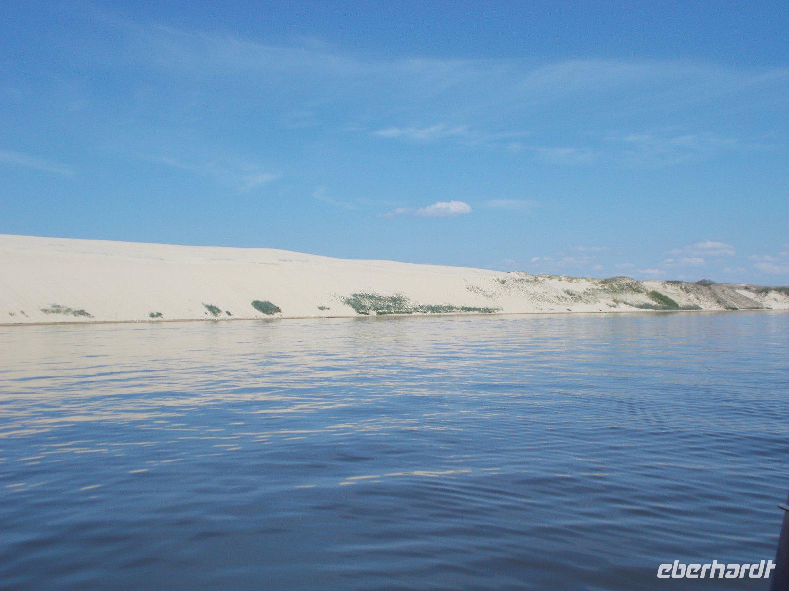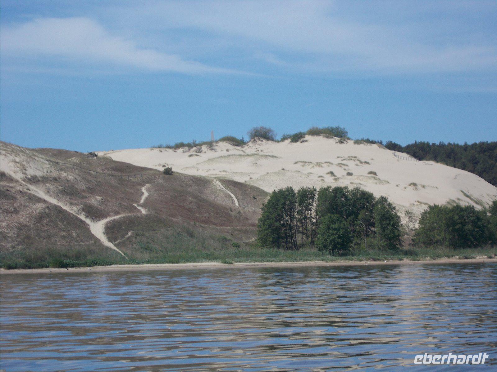 „ Auf der Kurischen Nehrung sich zu beeilen,ist gesetzlich verboten ! " Diesen Sprachgebrauch be- folgten wir.Doch leider stellten wir am Ende dieses Tages fest,die Zeit ist viel zu schnell vergangen.Mit der Fähre fuhren wir hinüber auf die,seit 2000, UNESCO geschützte Landzunge zwischen Haff und Ostsee.Eine Hexe lockte unsere Reisegruppe in ihr Reich und wir folgten gebannt den Geschichten die Birute uns dazu erzählte.Wir stellten sofort die Ähnlichkeiten zu unserer heimischen Märchenwelt fest.So schrecklich fanden wir die Skulpturen von Teufel ,Hexen ,Waldgeistern und schönen Prinzen nicht.Die Mücken waren dafür fürchterlich.Am Ende des Berges krähte der Hahn,die Hexe nahm ihren Besen ,flog davon und der „Spuk" war vorbei. Der Bus brachte uns zum Schwiegermutter Berg und wir begannen mit der kleinen Wanderung. Diese führte uns vorbei am Thomas Mann Haus ,dem Künstler Hotel Blode,über den kurischen Friedhof-mit den eigenwilligen Kreuzen-gelangten wir zur Bernstein Manufaktur.Dort erhielten wir fachkundiges Wissen ,rund um die „Tränen aus der Ostsee",wie dieses versteinerte Harz auch genannt wird.Danach bestiegen wir ein Boot (nur unsere Gruppe)um uns die zweit höchsten Wanderdünen anzuschauen. Vom Haff aus ,hat man einen besonders eindrucksvollen Blick auf die gesamte Erhebung.Die Grenzposten zu Russland fuhren Patrouillie , wir machten Winke - Winke und fuhren zurück in den Hafen von Nida.Jetzt gönnten wir uns erst einmal einen Imbiss.Wir wollten natürlich die Dünen noch von oben sehen und so unternahmen wir einen Abstecher zur Sonnenuhr ,mit den alten Runen.Von dort breitete sich ein toller Blick über Haff,Düne und Meer.Genug gestaunt ,bei den sommerlichen Temperaturen zog es uns ans Wasser.Der feine,weiße Sand war angenehm warm ,aber die Wassertemperatur hatte es gerade mal auf ganze 11°C gebracht.Die Füße mussten trotzdem ins Nass gehalten werden.Einige waren,für kurze Zeit ,auch mutiger.Die Fähre wartete und dies hieß für uns Abschied nehmen.Ein wunderschöner Tag,auf der Kurischen Nehrung,nahm sein Ende.