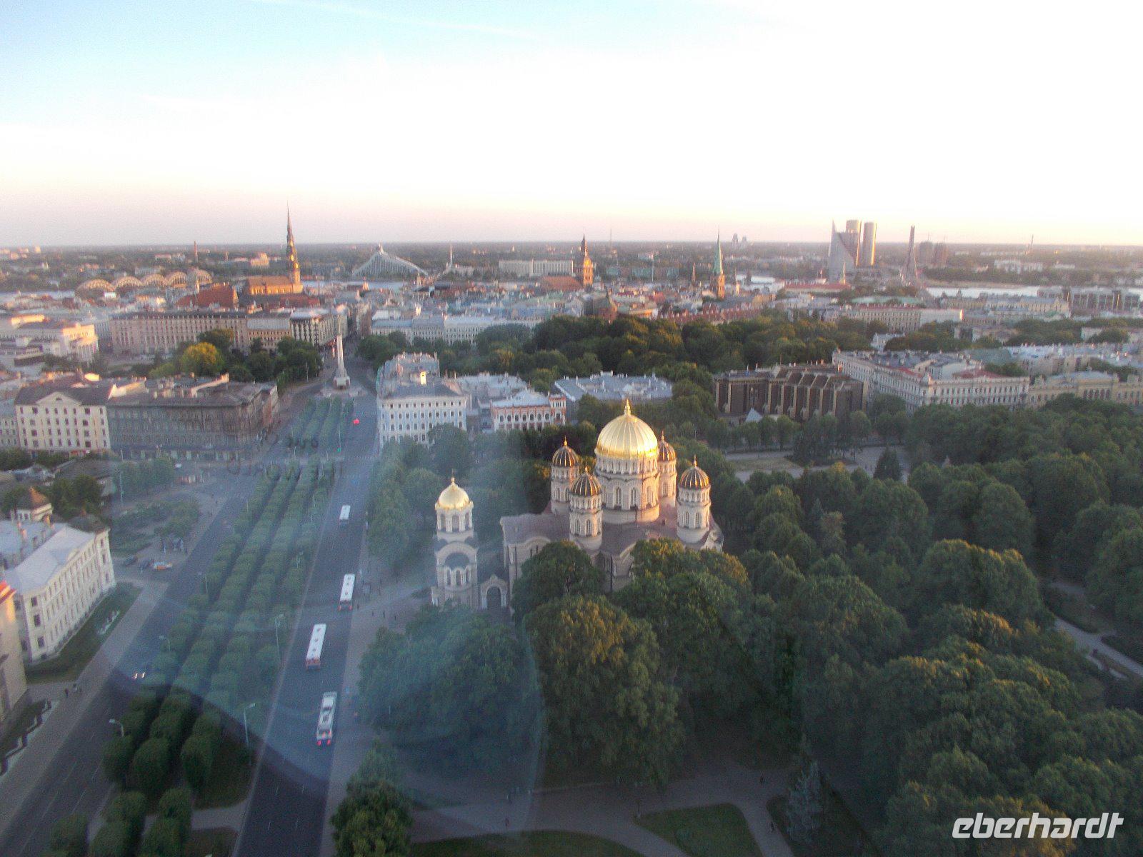 Riga wird als die Hauptstadt des Jugendstils bezeichnet. Die Handschrift des Architekten Michael Eisensteins war unverkennbar auszumachen. Wir spazierten durch das Viertel und „besetzten"sogar eines dieser schönen Häuser (aber nur weil das Museum noch geschlossen war).Den Rundgang durch die Altstadt begannen wir am Rathaus.Die Route führte uns zur Kirche St.Peter,zum Konvent,an der Börse vorbei,am Katzen Haus vorüber bis hin zum Pulverturm und den Schweden Kasernen.Durch das Schweden Tor betraten wir wieder den alten Stadtkern und liefen auf die „drei Brüder Häuser" zu.Am Parlament erklärte uns Birute etwas zu den Partisanenkämpfen.Wir erreichten pünktlich den Platz am Dom ,wo wir einem Orgelkonzert lauschten . Plastermüde und hungrig suchten wir uns ein Plätzchen zur Stärkung.Bei so viel gutem Angebot keine leichte Entscheidung.Am Schwazhäupterhaus traf sich unsere Gruppe wieder, um zusammen nach Jurmala,der Badewanne Rigas.,zu fahren.Über die Hängebrücke mit 28 Stahlseilen und dem Fluß.Lielupe fuhren wir Stadtauswärts.Der Nachmittag war nur pure Erholung.Nachdem wir „schöne Villen schauen"waren, ging es ans Meer.Egal ob Wanderung am Strand oder baden im,angenehm warmen und flachen,Salzwasser - es tat einfach nur gut.Nach dem Abendessen machten wir uns noch einmal auf den Weg ,zum Hotel Radisson.In der 26.Etage befand sich die Sky Bar mit atemberaubenden Blick über Stadt und Bucht.Wir sahen,bei einem Drink in geselliger Runde, die Sonne unter und den Vollmond aufgehen.