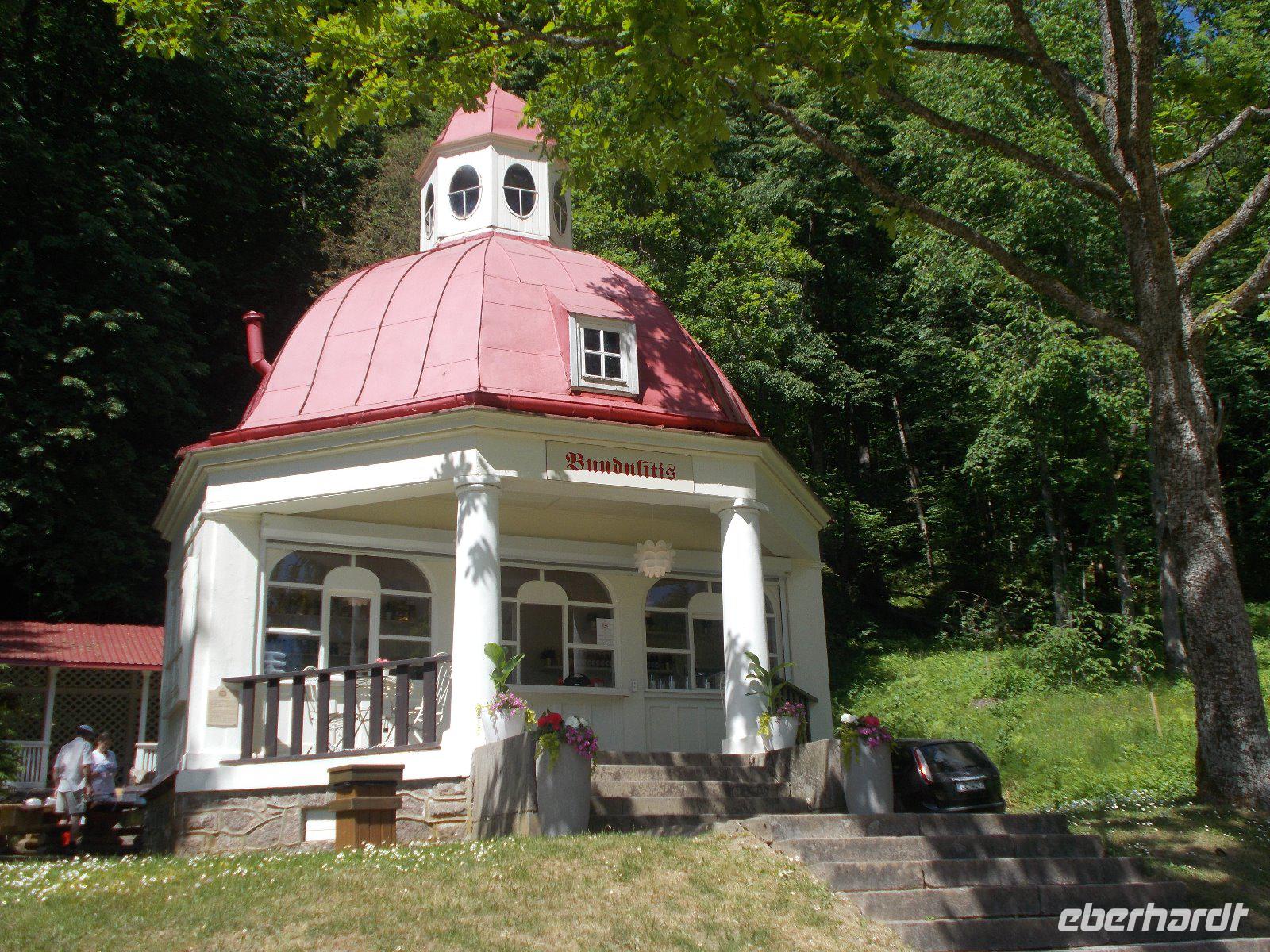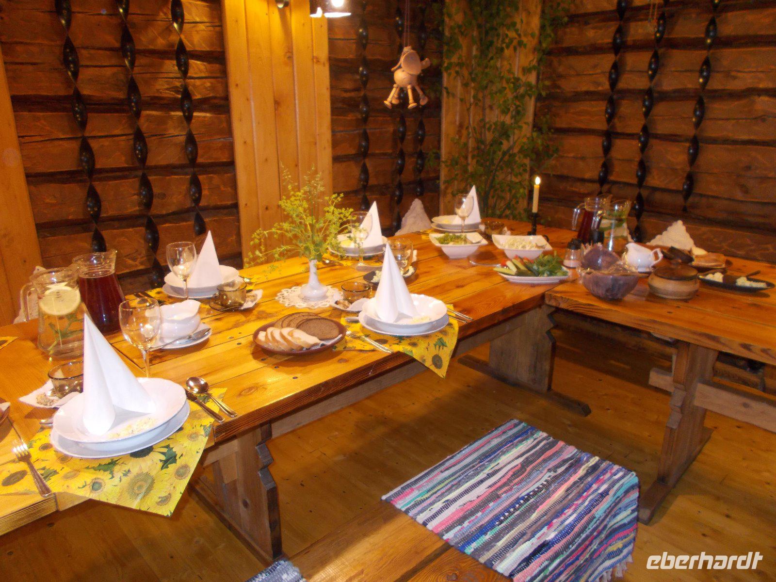 Auch heute hieß es wieder Koffer packen .Wir nahmen Abschied von der Stadt an der Daugava wo Altstadt und Jugendstil so eng miteinander verbunden sind.Doch zuvor machten wir einen Abstecher zu den Markthallen, wo die Einheinischen sich zum Kauf und Schwatz treffen.Im Bus schauten wir einen Abschiedsfilm über den Rigaer Jugendstil an.In Sigulda angekommen, zog es uns zur Bob und Rodelbahn. Sie wurde von einem Leipziger Team anspruchsvoll geplant und die deutschen Sportler fuhren dort zu Siegen.Im Anschluss besuchten wir die „Kochtopf - Ritter" vor dem Siguldaer Schloss und schauten hinab in das Tal der Gauja ,.Weiter ging es nach Krimulda .Von da aus starteten wir zu unserer Wanderung zur Gutmannshöhle.Dort gibt es nicht nur Jungbrunnen Wasser ,nein - wenn man Glück, hat verwandelt es sich in „Rigaer Balsam". In Raganas lockte uns eine Hexe von der Straße fort, um in ihrem Restaurant einzukehren.Bis zu unserem heutigen Hotel war es noch ein Stück zu fahren und so machten wir uns auf den Weg.Im historischen Städtchen Cesis angekommen ,spazierten wir zur großen Burganlage und die beschaulichen Gassen.Am Abend ging es in den Wald .Dort wurden wir auf einem ländlichen Anwesen erwartet. Der Hausherr zeigte uns die Holzschindel Herstellung .Die Tochter des Hauses spielte zur Begrüßung auf der Knieharfe.Es gab einfaches,bäuerliches Essen,welches an einer sehr liebevoll eingedeckten Tafel,von der Mama, serviert wurde .