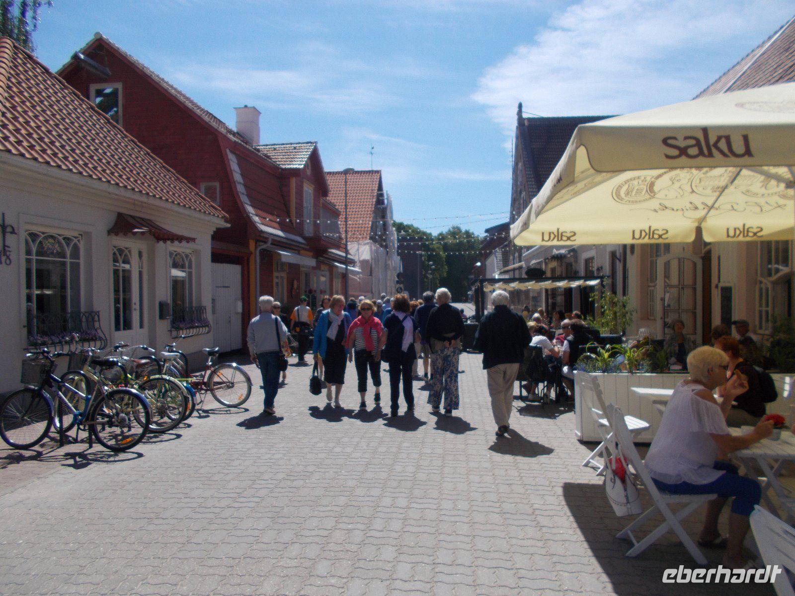 Über die via Baltika gelangten wir nach Estland.Das Land der Seen und Inseln,wo alles noch ein bisschen langsamer zu geht.Wir tauchten noch einmal die Füße in Pärnu ,dem anerkannten Kurort im Zarenreich,in die kalte Ostsee und fuhren in die Hauptstadt.Die Altstadt ,1997 zum UNESCO Weltkulturerbe erklärt,war unser erstes Ziel.Unser Rundgang begann an der Alexander -Newski -Kathedrale und dem langen Hermann- Wahrzeichen Tallinns .Wir schauten von der Oberstadt über die Dächer und Türme bis hinüber zum Hafen.Jetzt hatten wir die Wahl :über das kurze oder lange Bein in die Unterstadt zu gehen.Wir entschlossen uns für die Gärten des dänischen Königs und der Stadtmauer, um an der Börse vorbei ,einen Blick in die alte Apotheke zu werfen.Am Rathaus ,mit der eigenwillige Wetterfahne,gingen wir durch ein Elchrestaurant. Am Platz mit den alten Handelshäusern,die jetzt Gastronomie beherbergen wie „Olde Hanse oder Pfeffersack",waren wir in der Unterstadt angekommen.Einen besonders schönen Winkel hatten wir uns noch aufgehoben.Den Katharinengang mit seinen Meisterhöfen und kleinen Lokalitäten.Durch die Viru-Pforte verließen wir das alte Tallinn und spazierten zu unserem nahe gelegenen Hotel im Rotermannviertel .Ehemalige Industriebauten werden dort zu neuen Leben erweckt.Nach und nach soll ein extravagantes Viertel entstehen ,was den Hafen noch näher mit der Altstadt verbinden soll. Am Abend wurde noch einmal zu einem Bummel ,durch diese schöne alte Stadt-am finnischen Meerbusen,gestartet.
