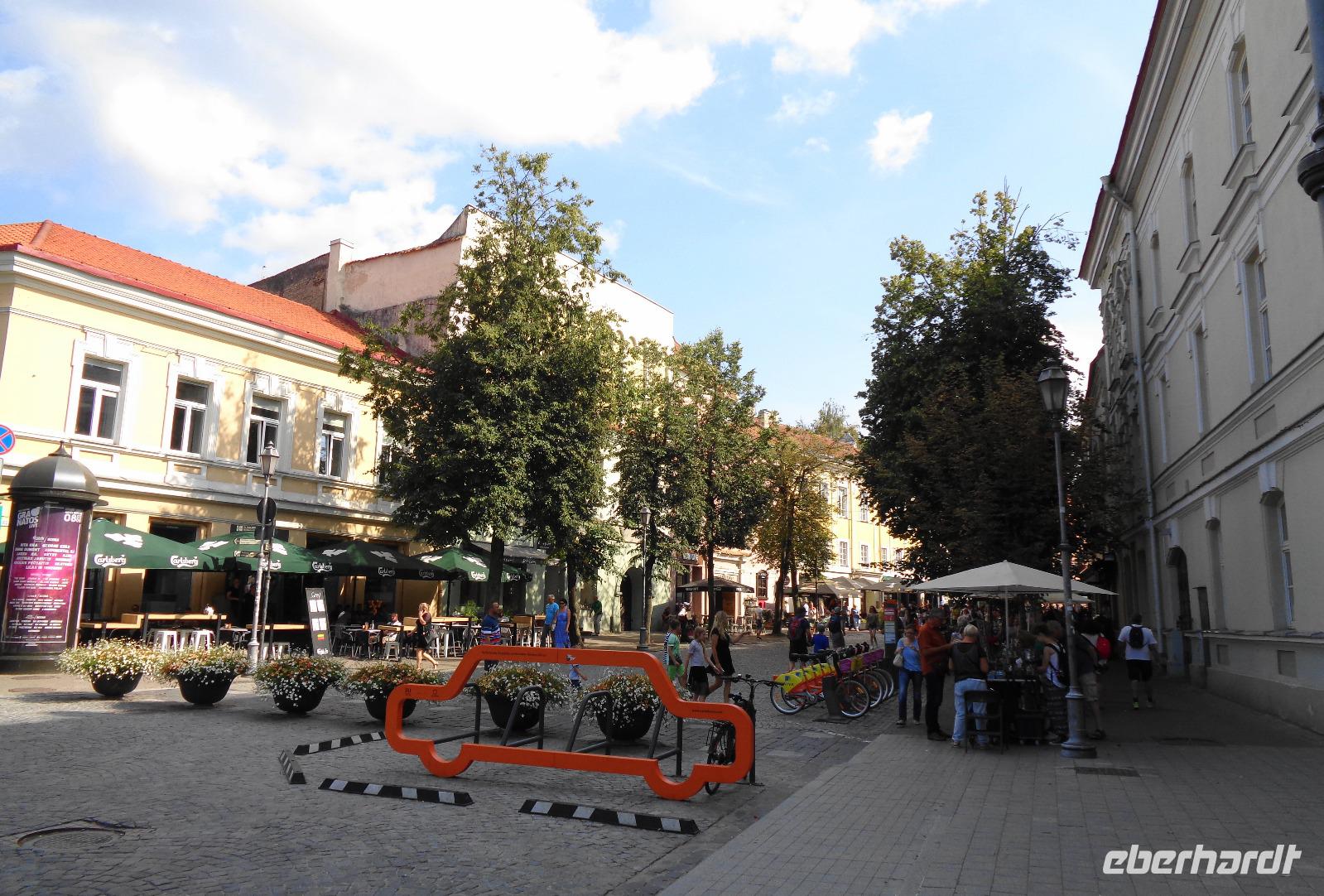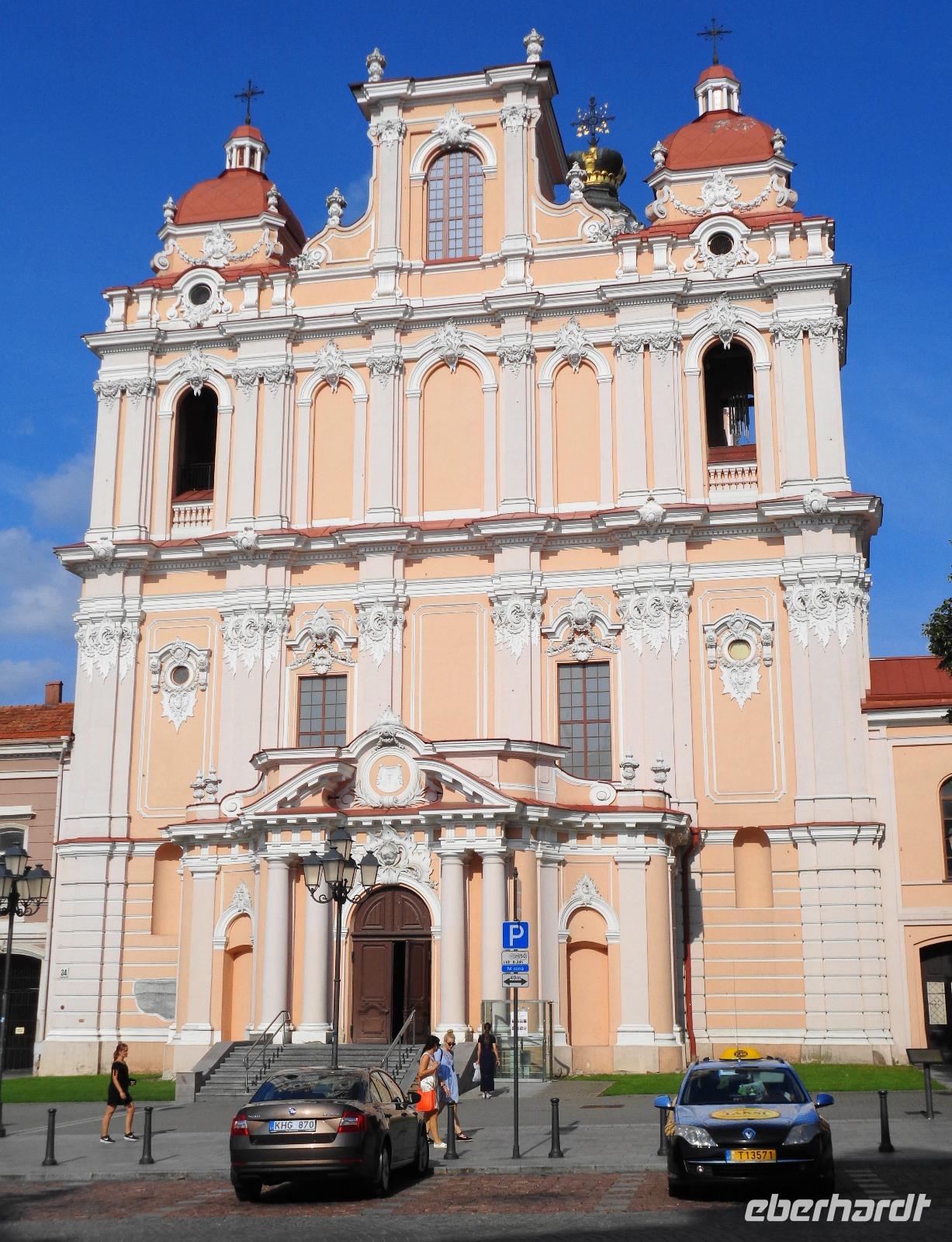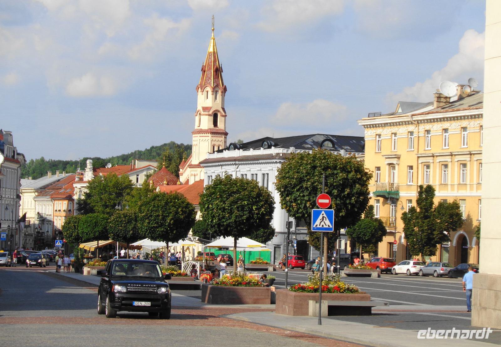 Die Peter-und-Paul-Kirche ist ein Juwel barocker Kirchenbaukunst, einzigartig sind die prachtvollen weißen Stuckarbeiten, die im 17. Jh. von italienischen Bildhauern geschaffen wurden. Auf unserem ausgedehnten Stadtrundgang konnten wir auch die gotische Annenkirche, die rosafarbene barocke Kasimirkirche und natürlich die an einen griechischen Tempel erinnernde Kathedrale mit dem freistehenden Glockenturm bewundern. Das Reiterstandbild des Stadtgründers Gediminas gab Birute Gelegenheit, viel Interessantes über die Geschichte der Stadt zu erzählen.