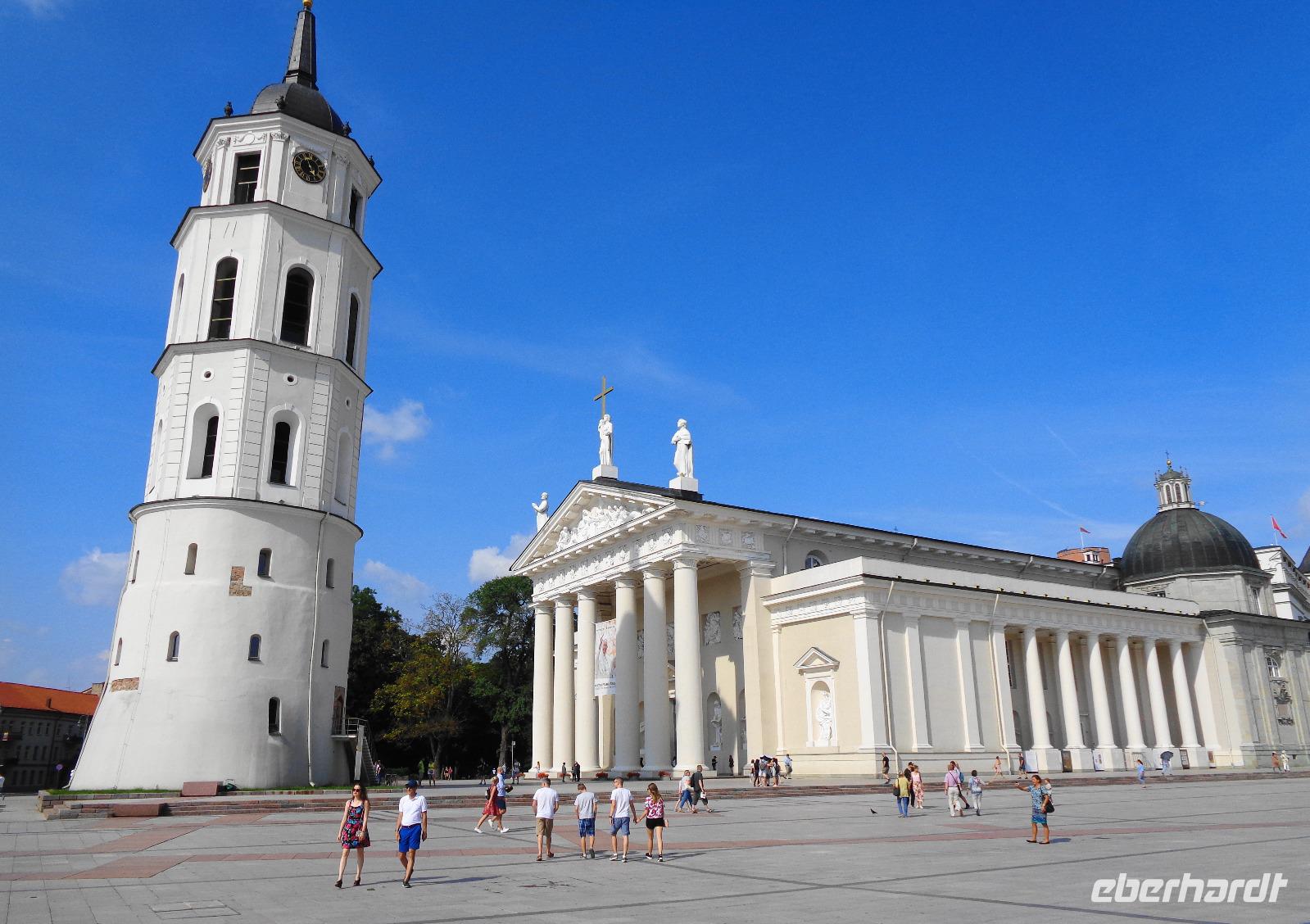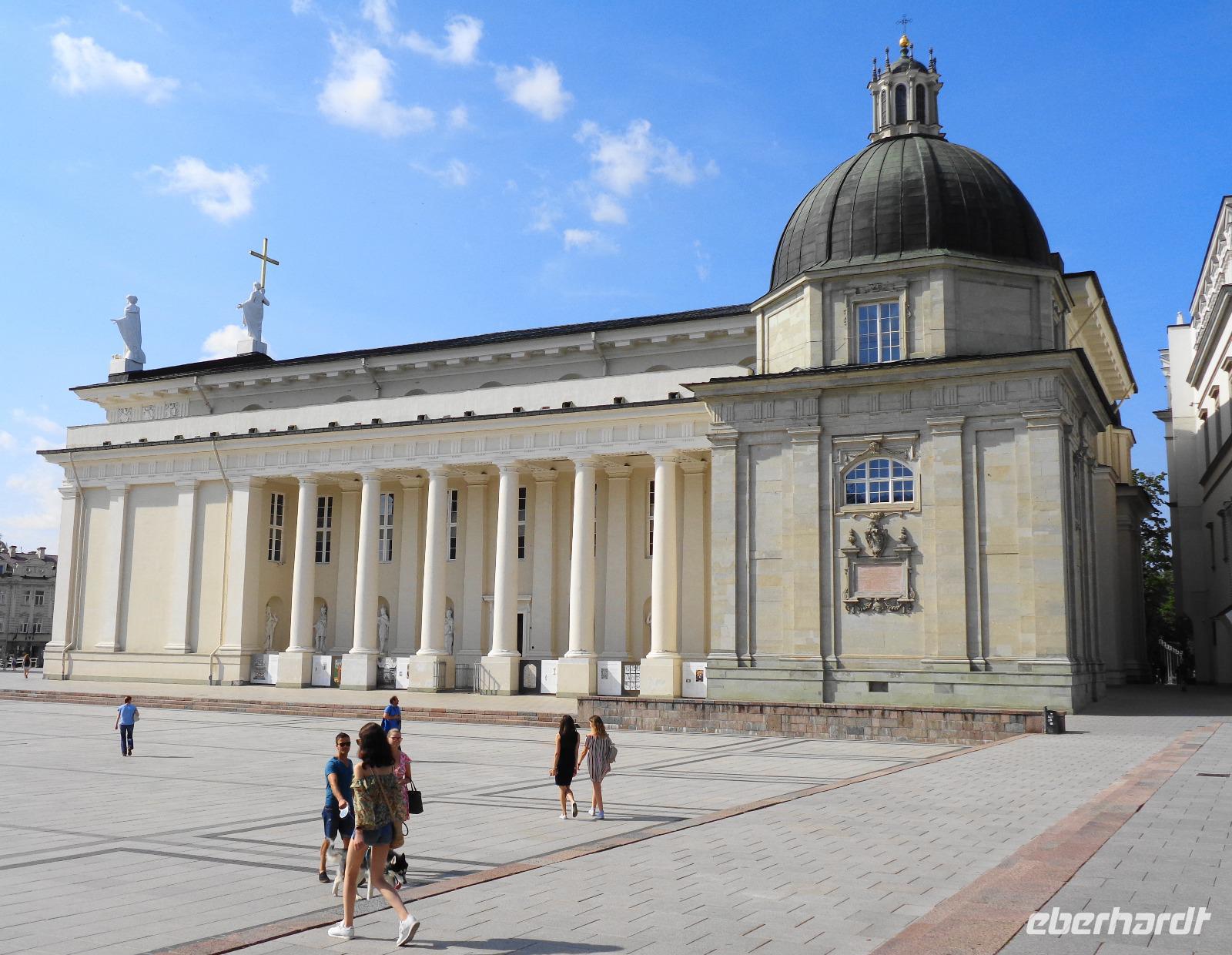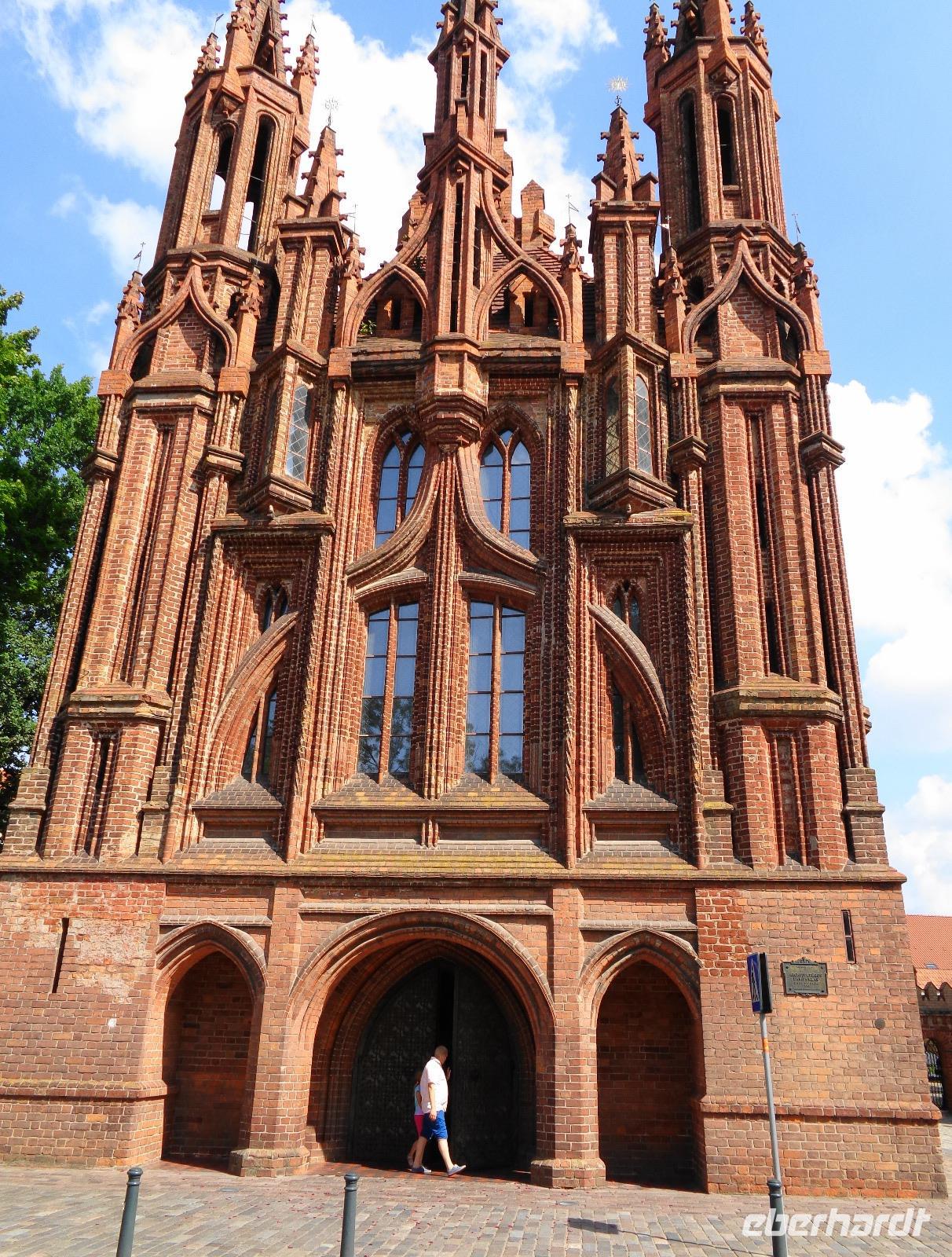 Die Peter-und-Paul-Kirche ist ein Juwel barocker Kirchenbaukunst, einzigartig sind die prachtvollen weißen Stuckarbeiten, die im 17. Jh. von italienischen Bildhauern geschaffen wurden. Auf unserem ausgedehnten Stadtrundgang konnten wir auch die gotische Annenkirche, die rosafarbene barocke Kasimirkirche und natürlich die an einen griechischen Tempel erinnernde Kathedrale mit dem freistehenden Glockenturm bewundern. Das Reiterstandbild des Stadtgründers Gediminas gab Birute Gelegenheit, viel Interessantes über die Geschichte der Stadt zu erzählen.