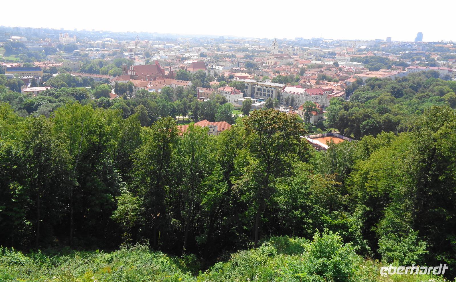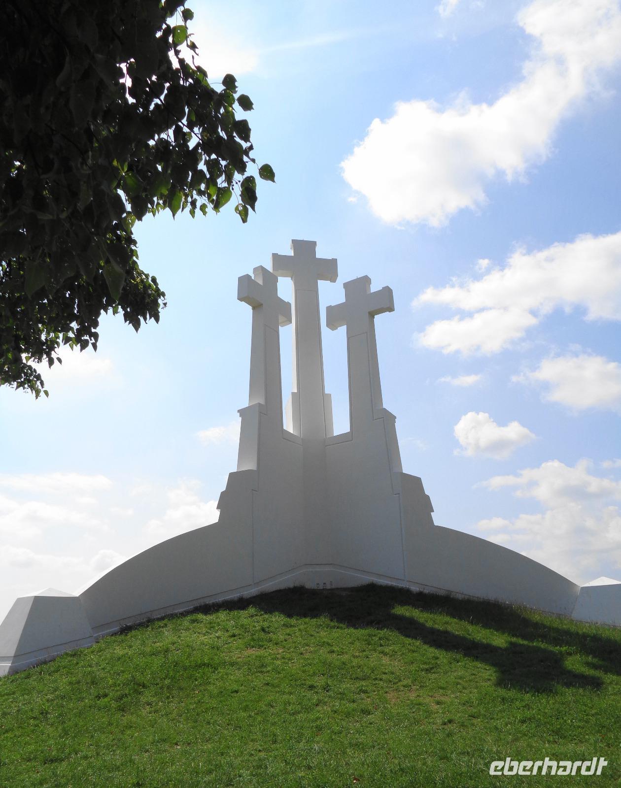Birute, unsere örtliche Reiseleiterin und Busfahrer Jurius hatten uns am Flughafen in Empfang genommen und los ging es an der Neris entlang zum Berg der drei Kreuze, den wir zu Fuß erklommen. Von dort hat man ein herrliches Panorama auf die Stadt. Die drei Kreuze sollen schon im 14. Jh. zur Erinnerung an die 7 von einer aufgebrachten heidnischen Menge getöteten Franziskanermönche aufgestellt worden sein.