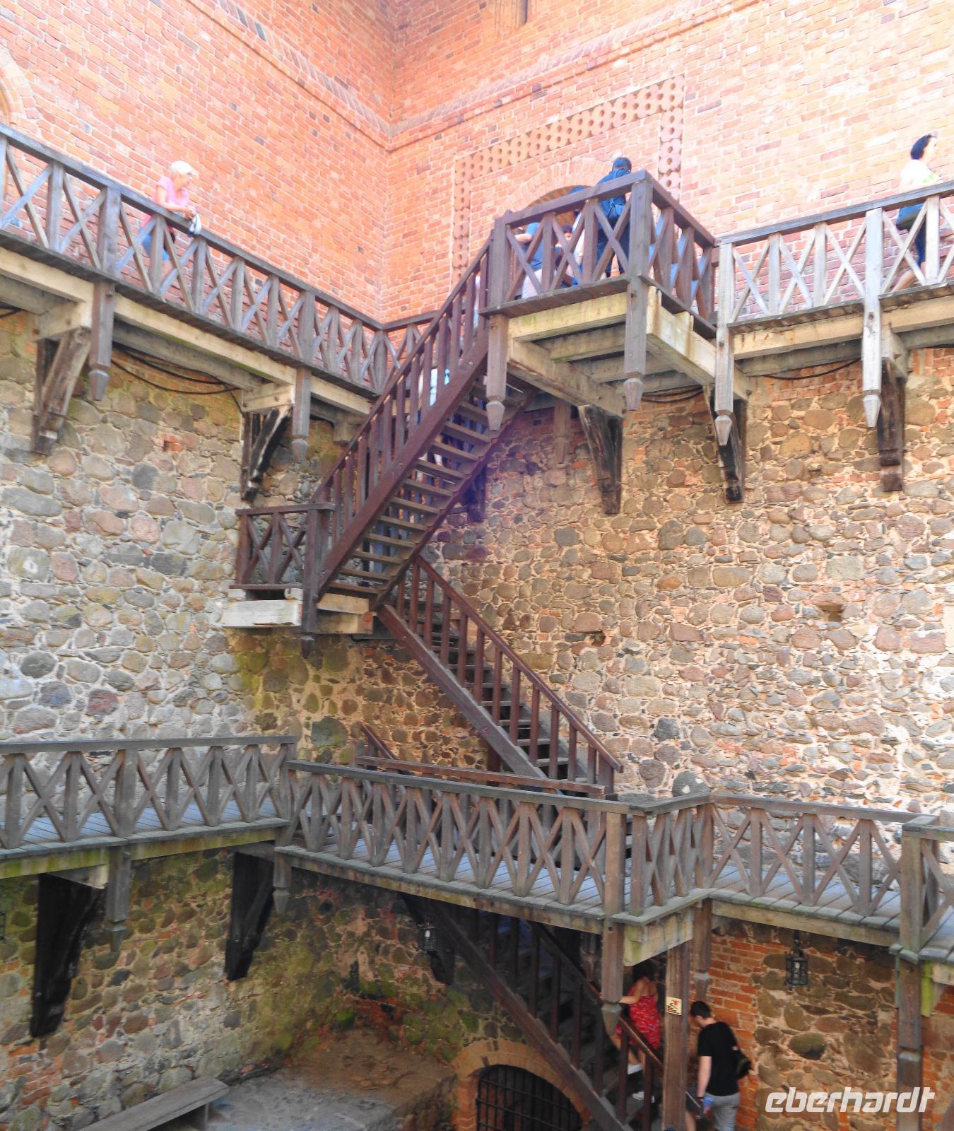 Anschließend brachte uns Birute die wohl fotogenste Burg Litauens, die aus rotem Backstein erbaute Inselburg, auf einer ausführlichen Besichtigung näher. Die von Großfürst Vytautas Ende des 14. Jh. erbaute Feste ist zwar nicht mehr im Original erhalten, die Rekonstruktion aus den 1950er Jahren begeisterte uns dennoch.