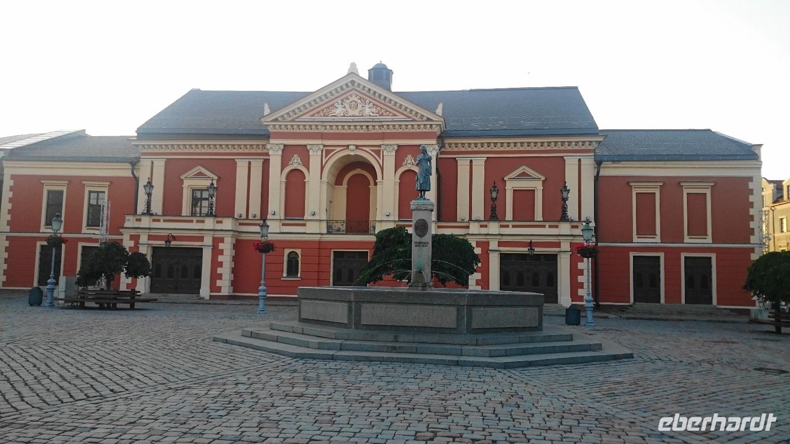 Am Wagner-Konzertsaal erinnert eine Inschrift an die zwei Jahre, die Richard Wagner als Kapellmeister in Riga verbrachte.
