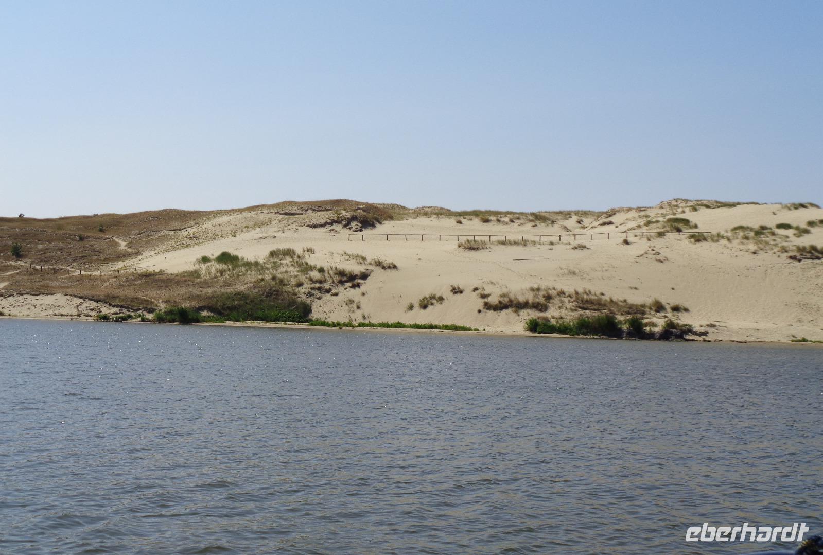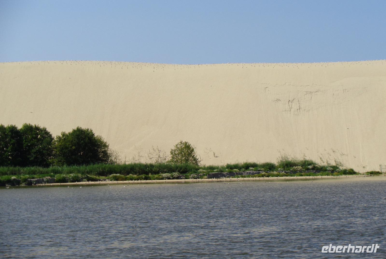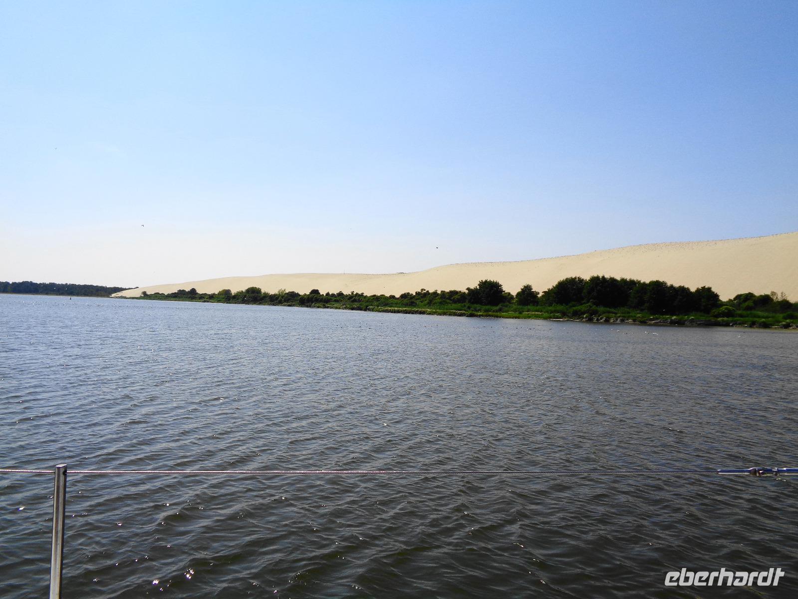Nach dem Mittagessen unternahmen einige Gäste eine Bootsfahrt, um die „Große Düne" von der Wasserseite aus zu bewundern. Die einzigartigen Wanderdünen der Kurischen Nehrung sind bis zu 60 m hoch und fallen steil zum Wasser hin ab. Im Anschluss gab es noch die Gelegenheit, die Dünen zu Fuß von oben zu bestaunen.