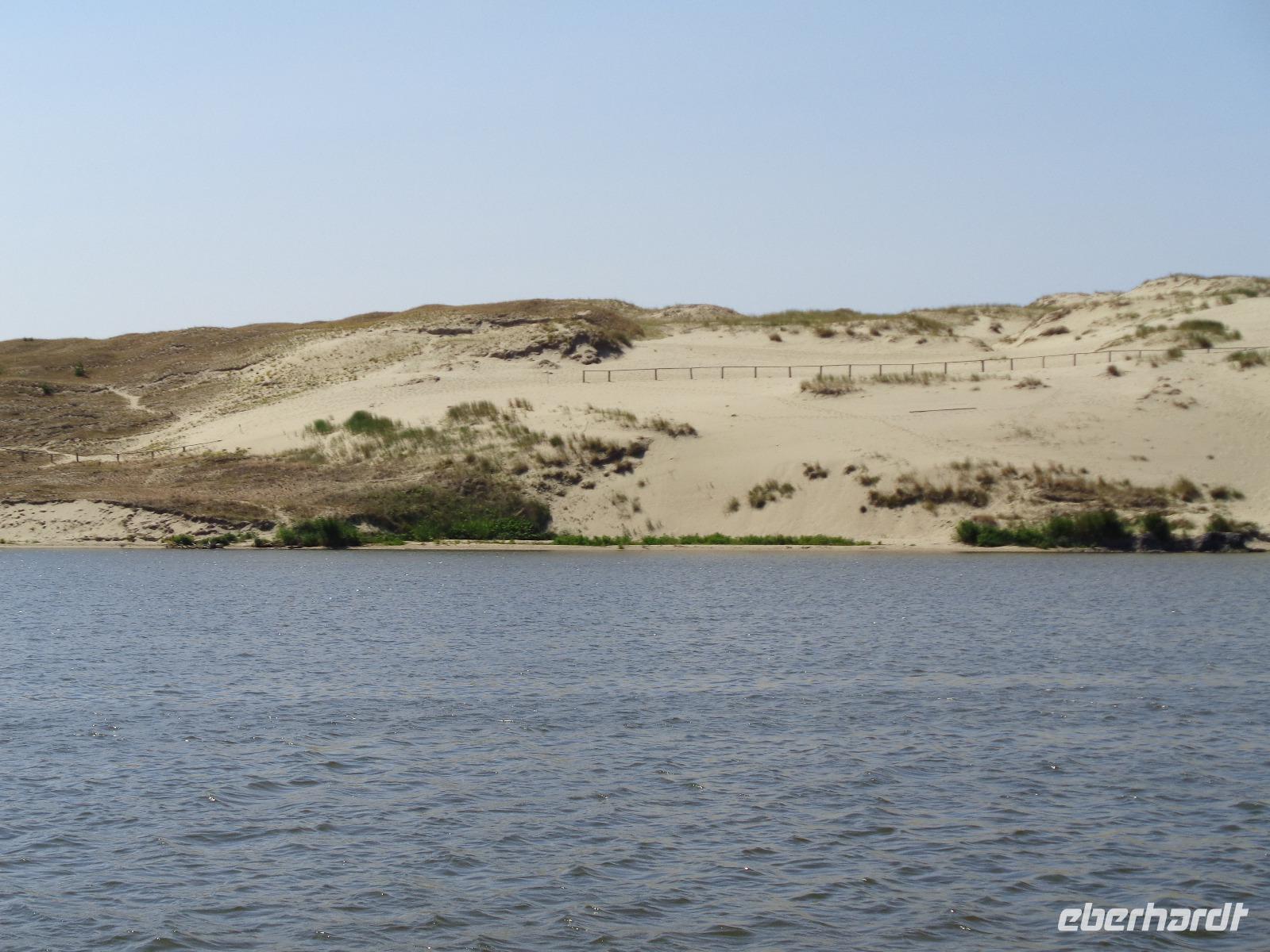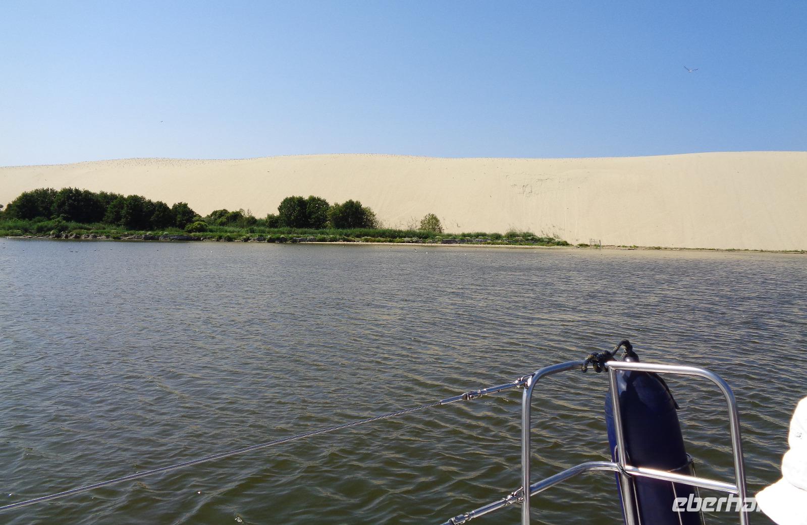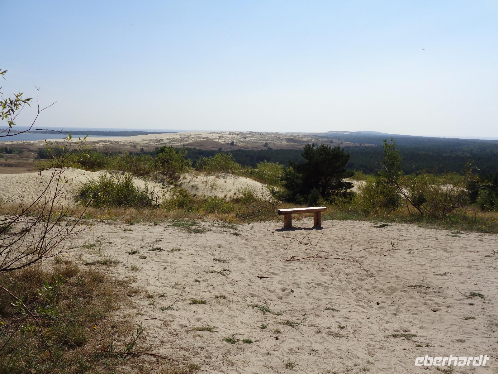 Nach dem Mittagessen unternahmen einige Gäste eine Bootsfahrt, um die „Große Düne" von der Wasserseite aus zu bewundern. Die einzigartigen Wanderdünen der Kurischen Nehrung sind bis zu 60 m hoch und fallen steil zum Wasser hin ab. Im Anschluss gab es noch die Gelegenheit, die Dünen zu Fuß von oben zu bestaunen.