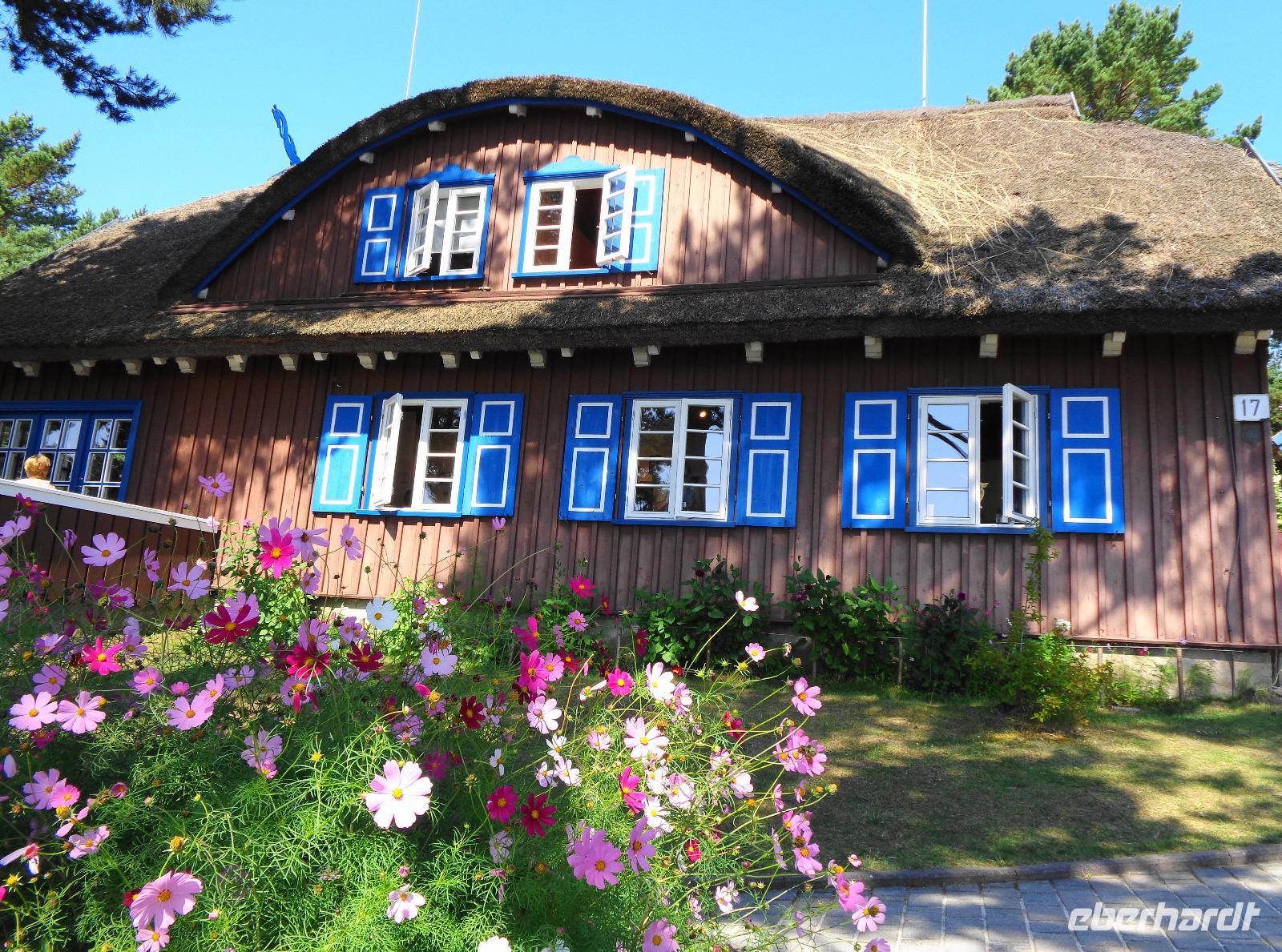 Weiter ging es nach Nida (Nidden), einst sehr beliebt bei den expressionistischen Malern der Dresdner „Brücke", die hier eine Malerkolonie gründeten. Auch Thomas Mann besaß hier sein berühmtes Sommerhaus „mit Italienblick", wo er sich mit seiner Familie drei Sommer lang bis zu seiner Emigration aufhielt. Vorbei an den alten Fischerhäusern aus Holz spazierten wir über den historischen Friedhof am Haff entlang zum Ortszentrum. Im Bernsteinmuseum erfuhren wir Interessantes über die Gewinnung und Verarbeitung des fossilen Harzes und sahen eindrucksvolle Schmuckstücke.