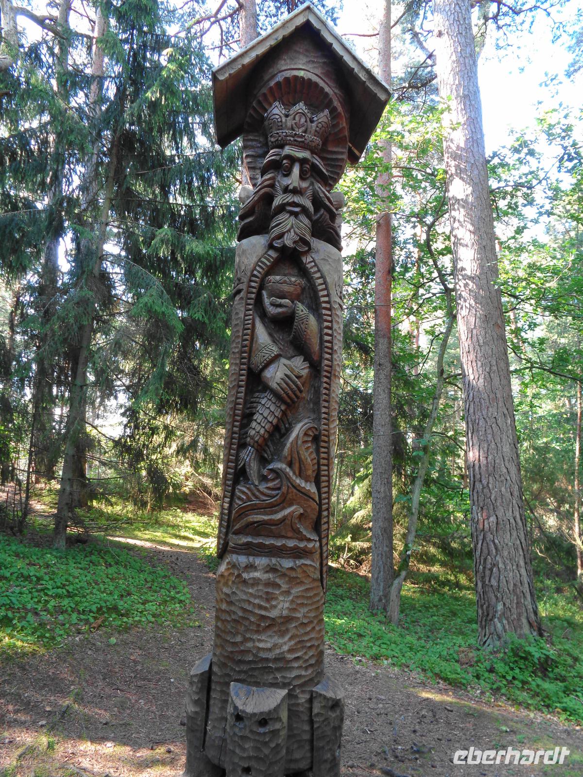 In Juodkrante (Schwarzort) führte uns ein Spaziergang über einen mit 100 Holzfiguren bestückten Wanderweg auf den Hexenberg. Die Skulpturen erzählen einheimische Märchen und wurden von regionalen Künstlern geschaffen.