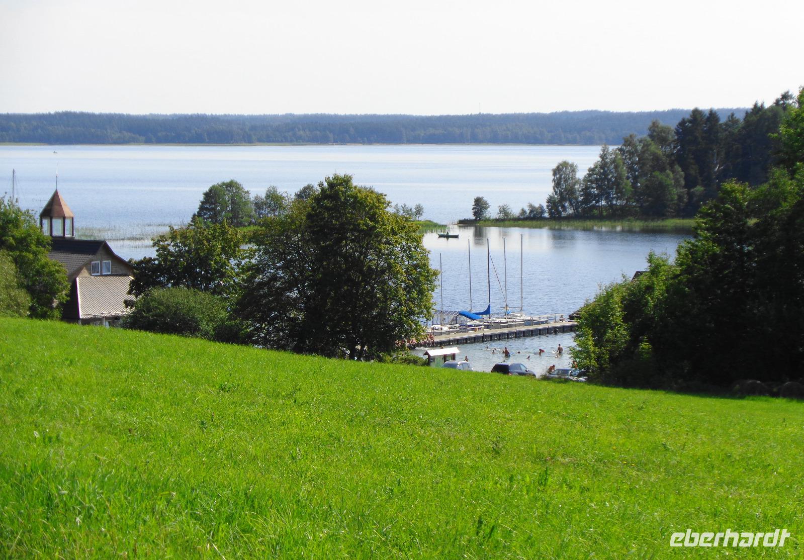 Nach einem kleinen Umweg über den Flughafen, wo wir den verloren gegangenen Koffer in Empfang nehmen konnten, starteten wir zu unserem nächsten Etappenziel, dem 27 KM westlich von Vilnius gelegenen Galve-See. Die Region ist als Nationalpark geschützt und gilt als eine der schönsten Landschaften Litauens. Wir wanderten am schattigen Ufer entlang bis nach Trakai. Von unterwegs aus boten sich immer wieder schöne Aussichten auf die berühmte Inselburg. Auf einem Rundgang durch den kleinen Ort Trakai lernten wir die kleine jüdische Glaubensgemeinschaft der Karäer kennen, deren bunte Holzhäuser noch heute das Ortsbild prägen. Auch eine der Spezialitäten der karäischen Küche, die unterschiedlich gefüllten Teigtaschen namens „Kibinai" konnten wir verkosten.