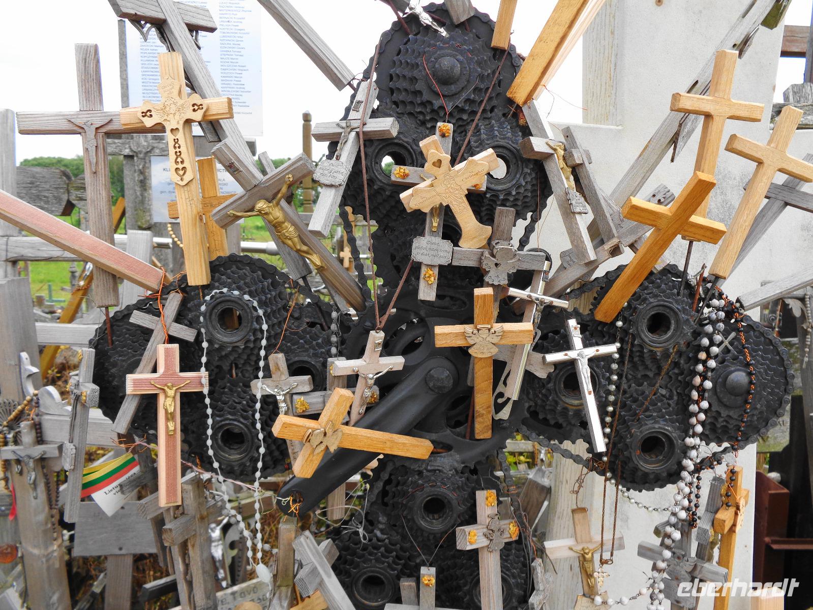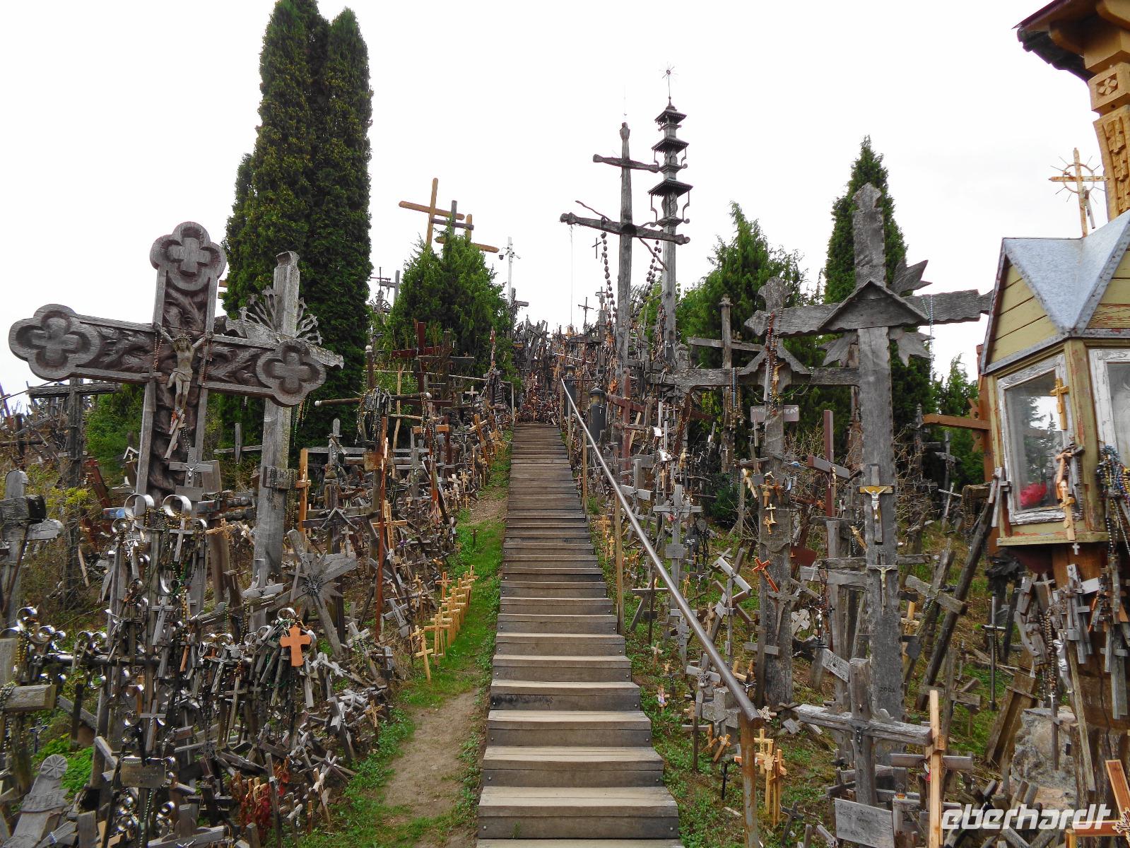 Weiter ging es zum etwas nördlich der Stadt Šiauliai (Schaulen) gelegenen Berg der Kreuze, einem Zeugnis für die tiefe Religiosität des litauischen Volkes. Hier stand einst ein heidnisches Heiligtum und nach der Christianisierung der Region im 15. Jh. wurde der Ort zur Pilgerstätte. Wallfahrer aus aller Herren Länder hinterlassen hier bis heute Kreuze um Dank zu sagen oder ihren Bitten Nachdruck zu verleihen. Auch mehrfache Zerstörungen durch die Sowjetmacht konnten dem Ort nichts anhaben, so dass sich heute hier geschätzt über 50.000 Kreuze befinden.