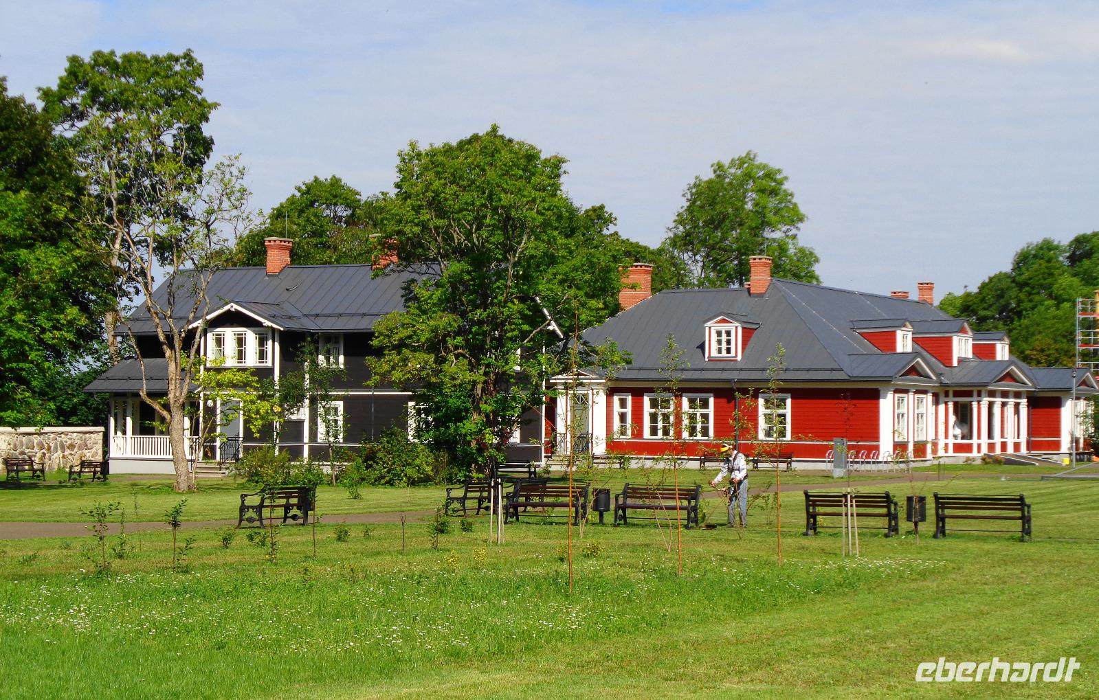 Nach der Mittagspause ging es zum Gutsschloss Palmse, einem der architektonischen Höhenpunkte des Nationalparks. Hier erfuhren wir unter fachkundiger Führung viel Interessantes über dieses lebendige Zeugnis deutsch-baltischer Geschichte. Seit dem 17. Jh. in Besitz der deutschbaltischen Familie von der Pahlen, wurde es zu einem kleinen barocken Juwel ausgebaut, bevor es nach der Enteignung am Ende des 2. Weltkriegs zunächst verwahrloste. Inzwischen wurde es prachtvoll restauriert und neben dem Herrenhaus mit seiner authentischen Einrichtung können heute die Orangerie, die Schnapsbrennerei und die Stallungen besichtigt werden. Der herrlich gepflegte Park lädt zu ausgedehnten Spaziergängen ein.
